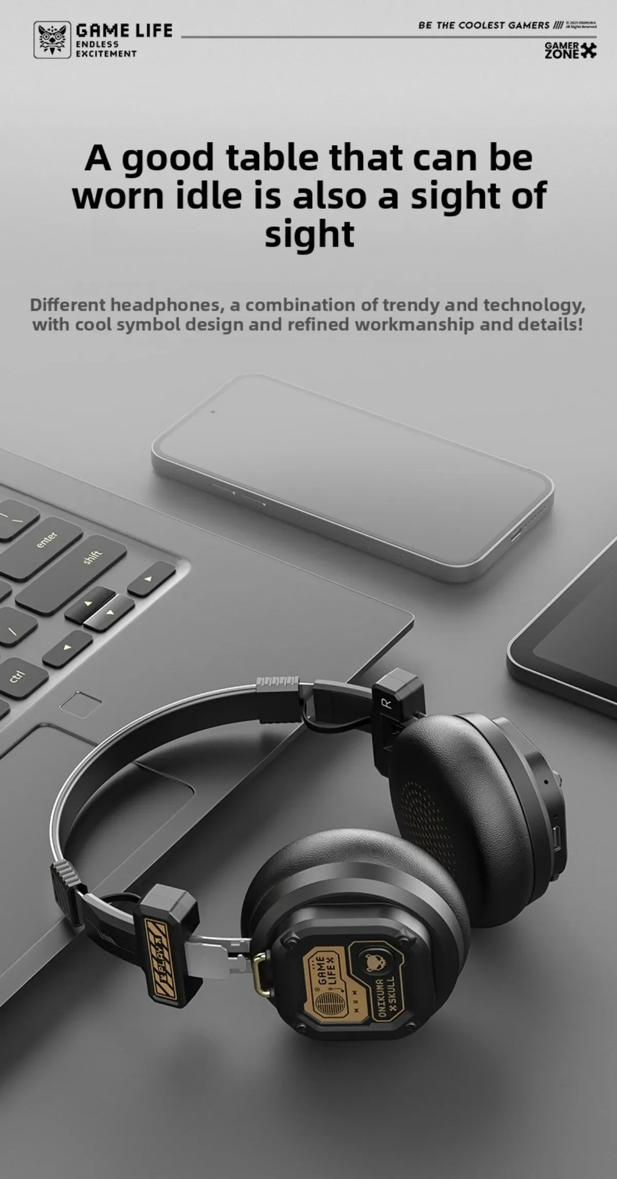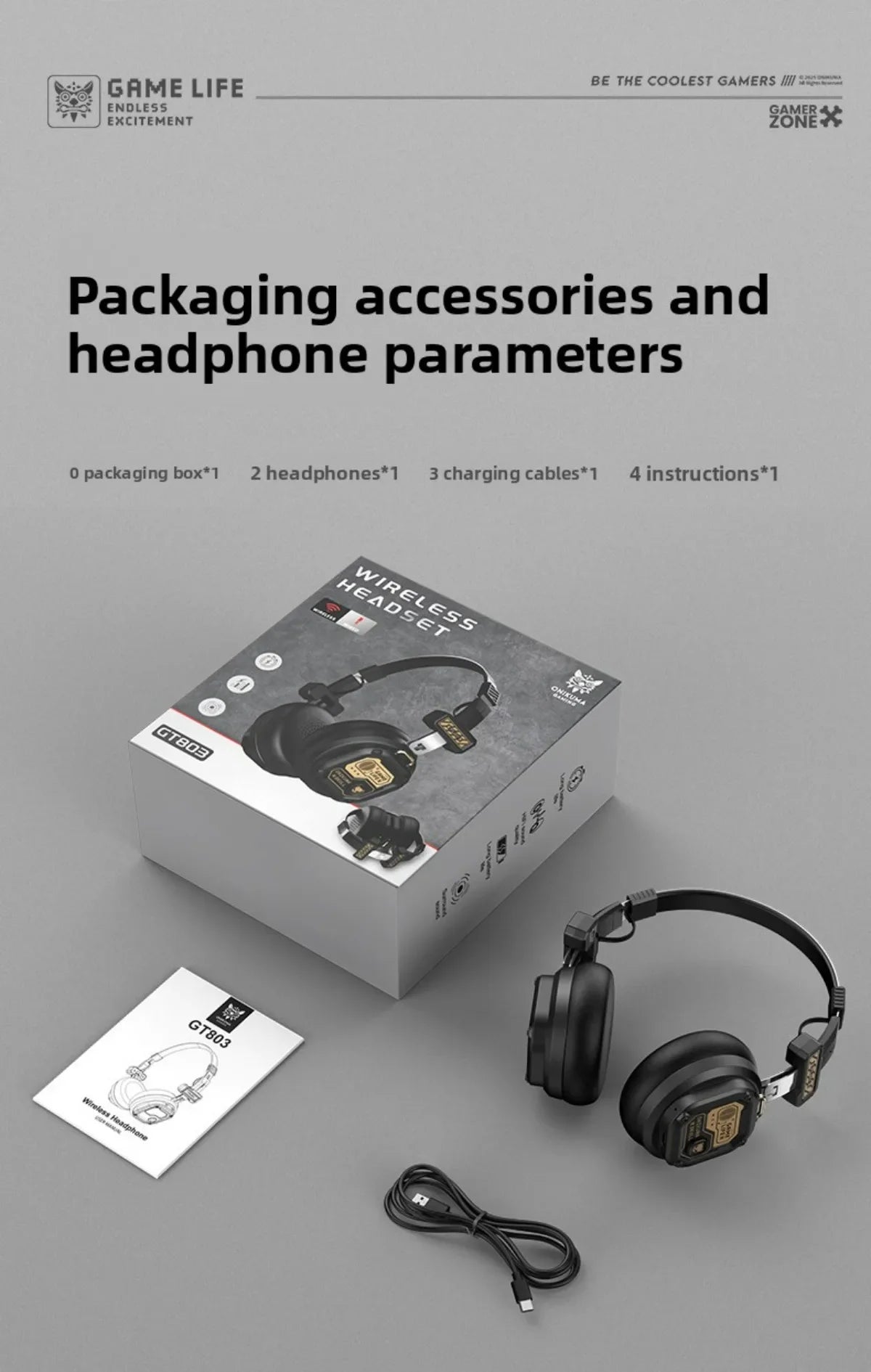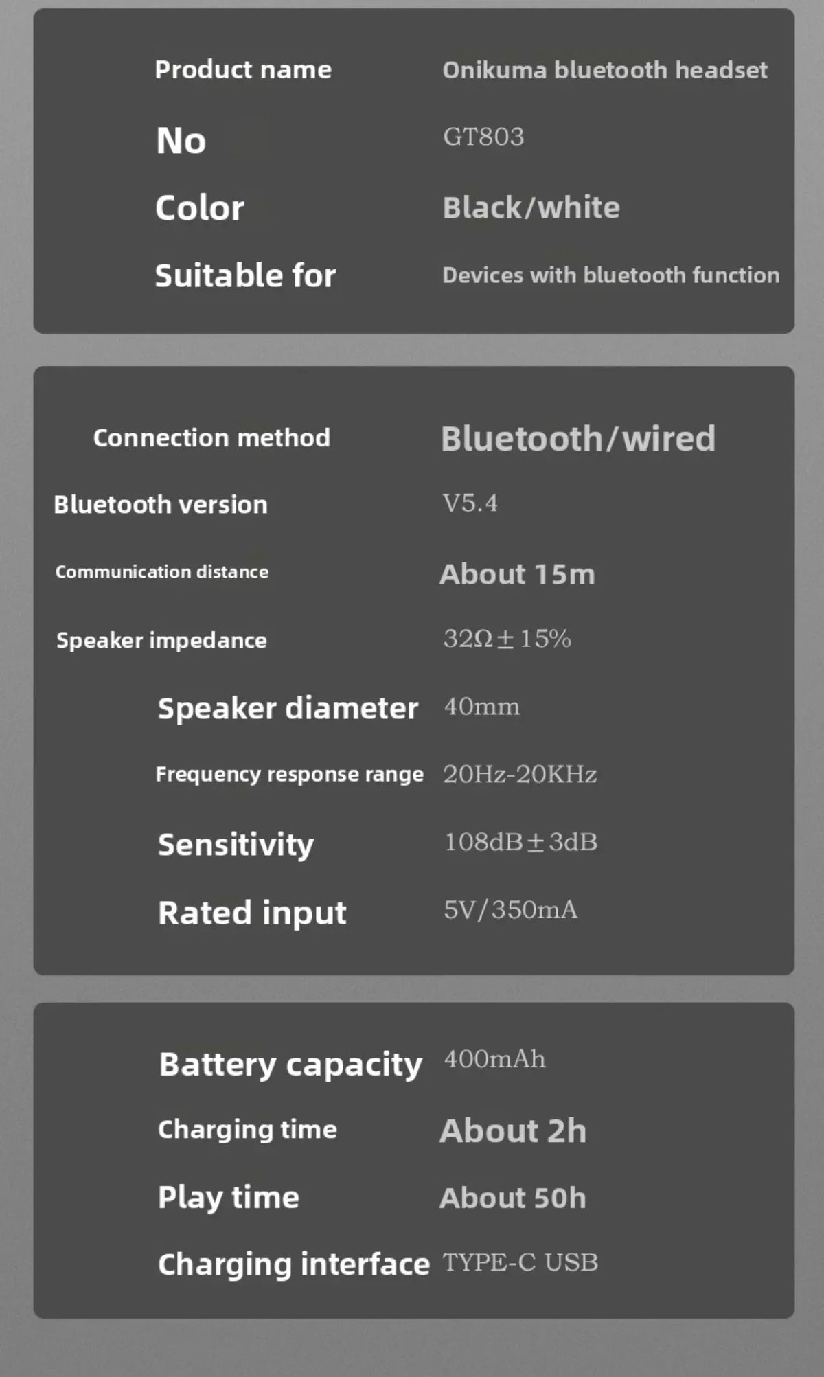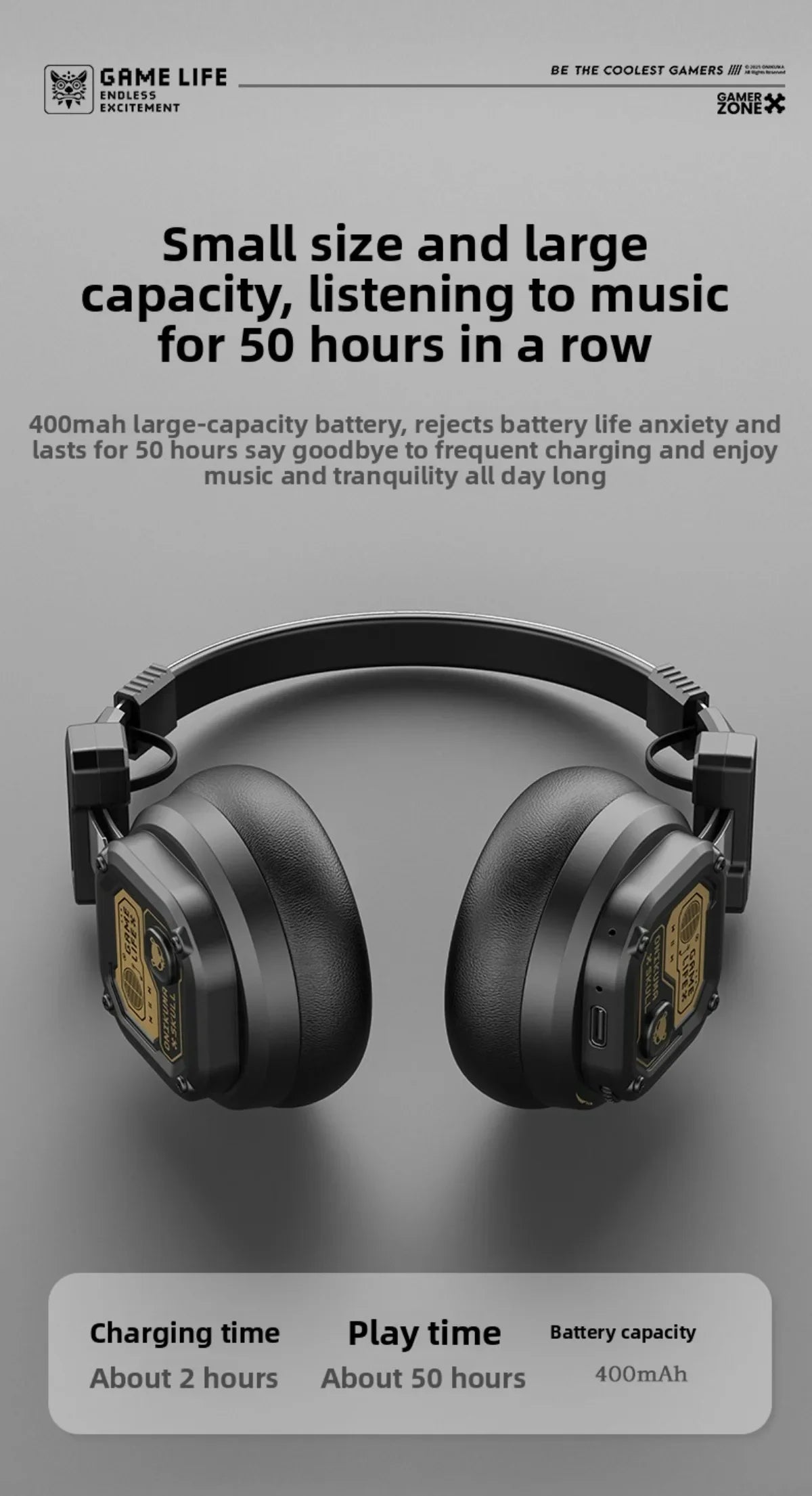 Onikuma draadloze gamingheadset met Bluetooth 5.4, batterijcapaciteit 400 mAh...