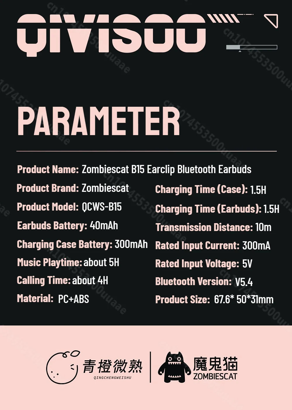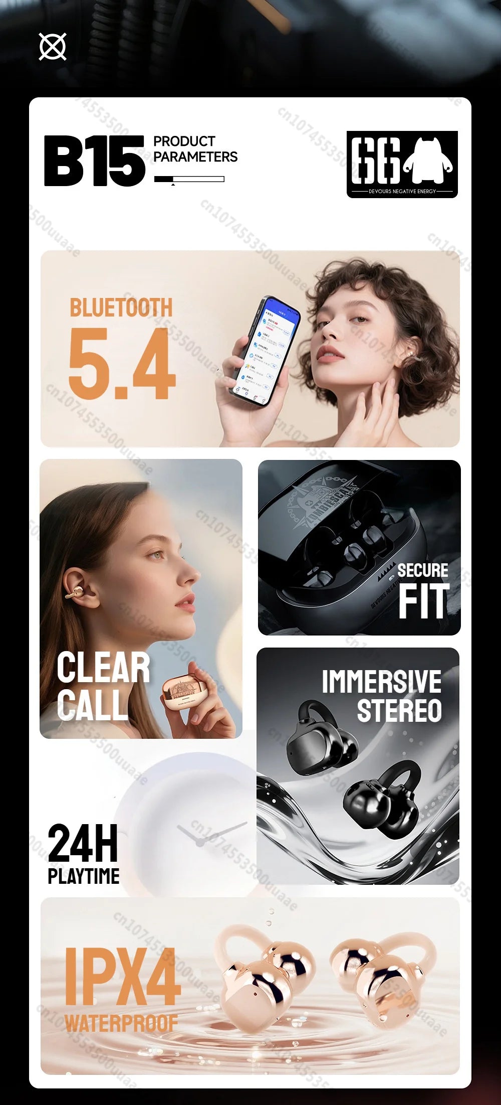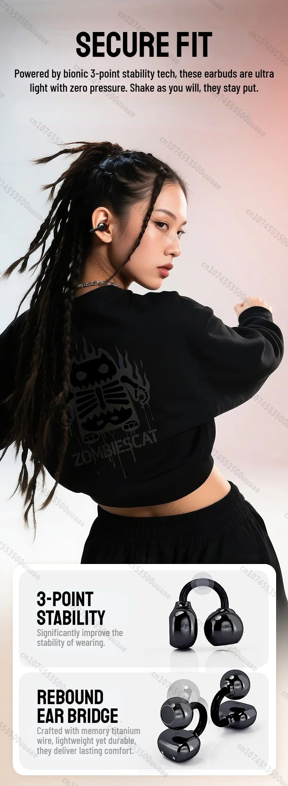 Zombiescat B15 OWS oordopjes met clip, meeslepende HiFi stereo, Bluetooth 5.4...