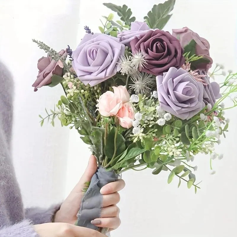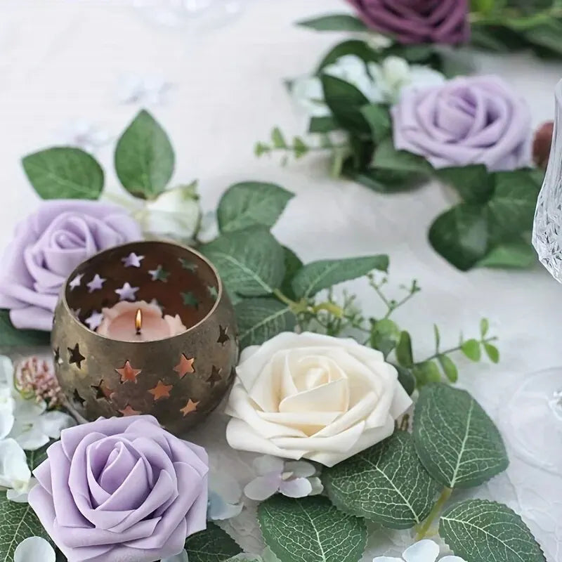 Kunstbloemen 25 stuks Echt uitziende lila schuim nep rozen met stelen voor DIY bruidsboeketten bruidsdouche middelpunten flora