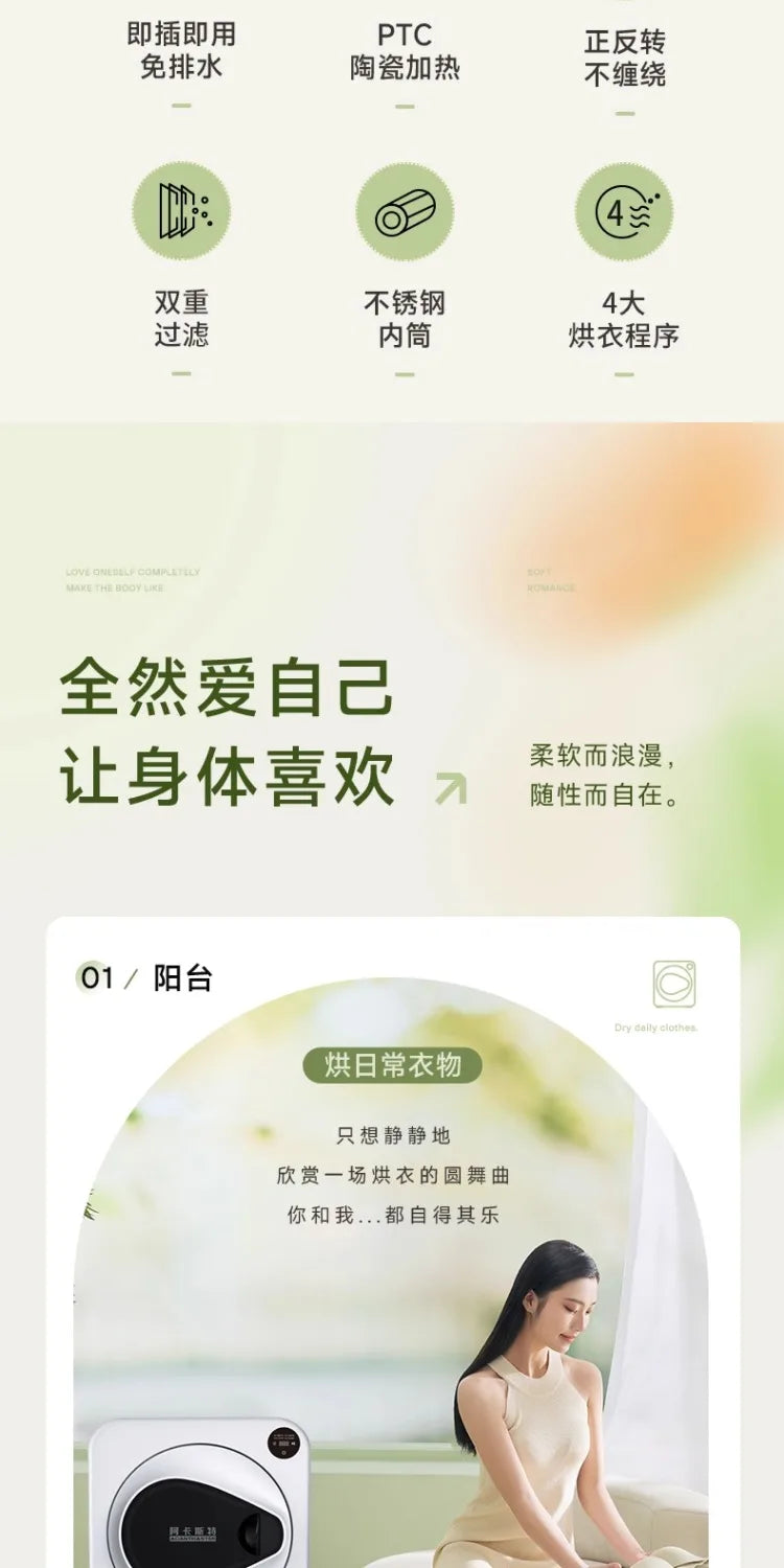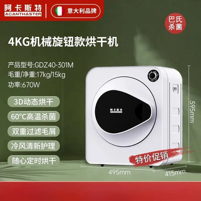 220V Italy Acaster Dryer Home UV Clothes Dryer Rotating Drum Laundry Machine BDC