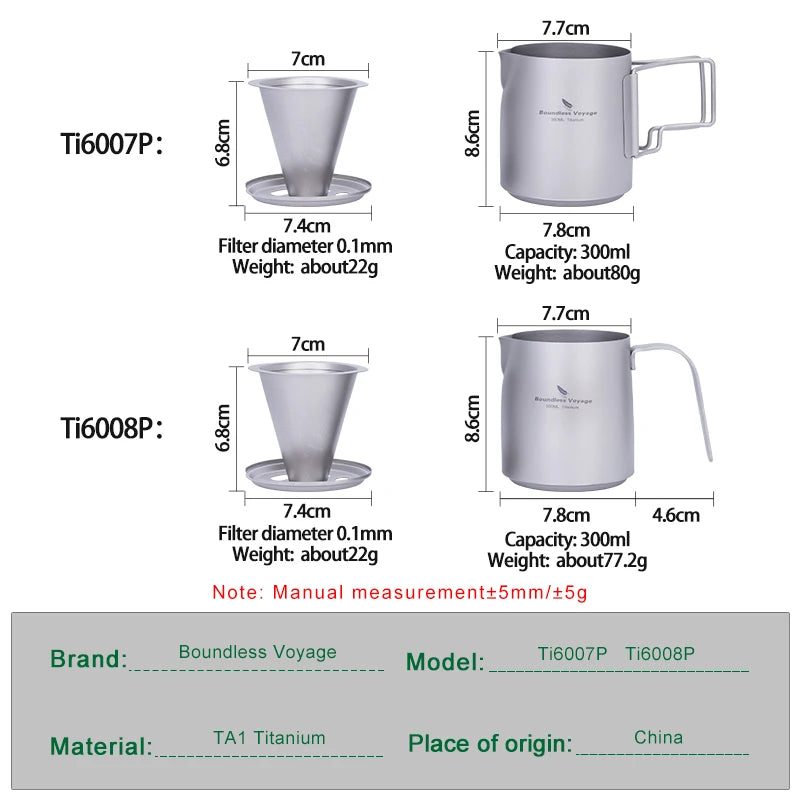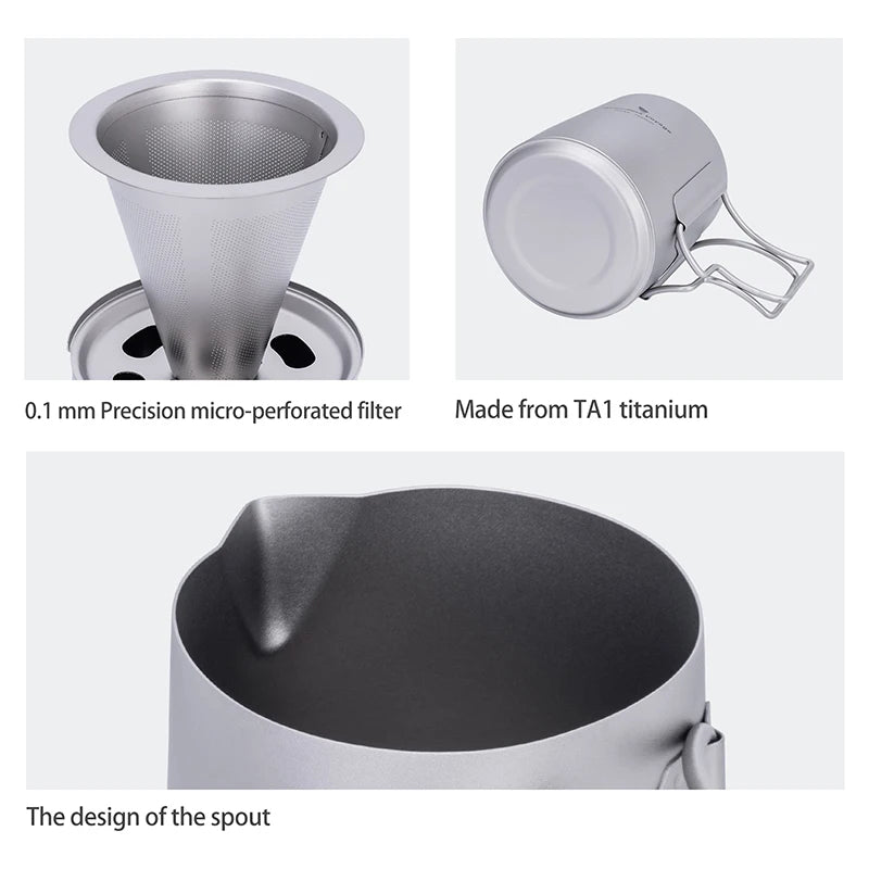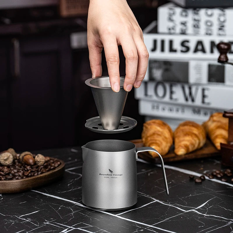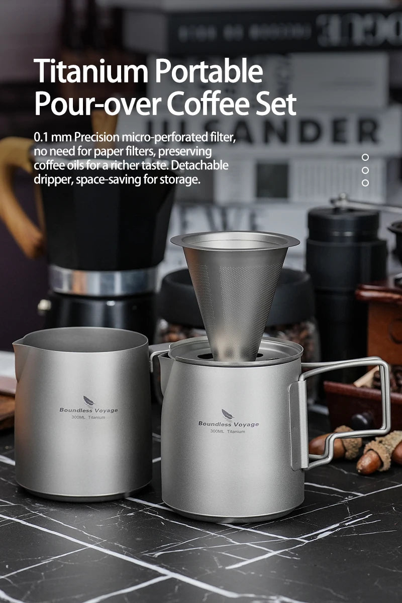 Boundless Voyage Titanium draagbare pour-over koffieset 300ml koffiemok met a...