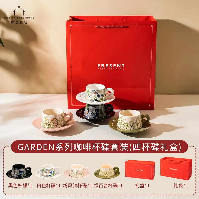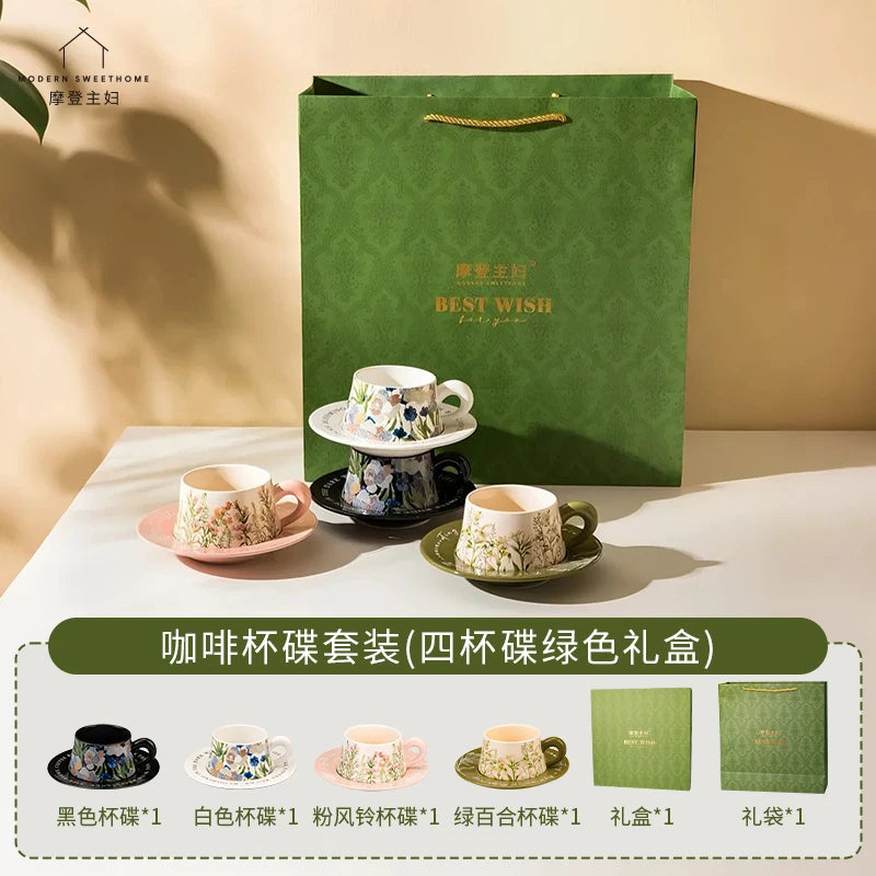 Moderne huisvrouw koffiekopjesset, hoogwaardig, exclusief huwelijks- en verja...
