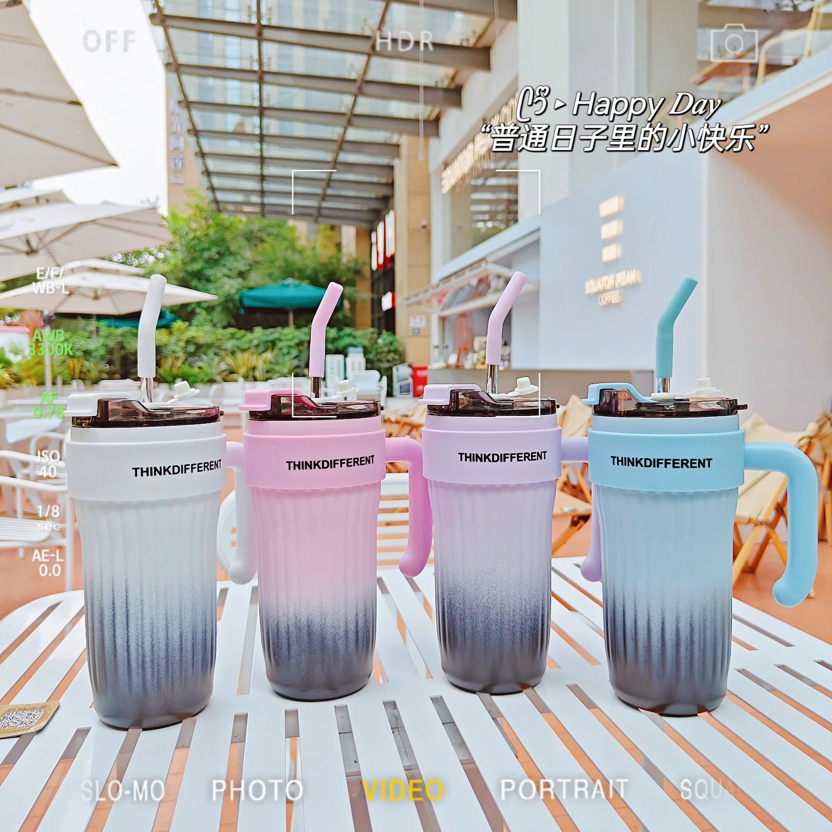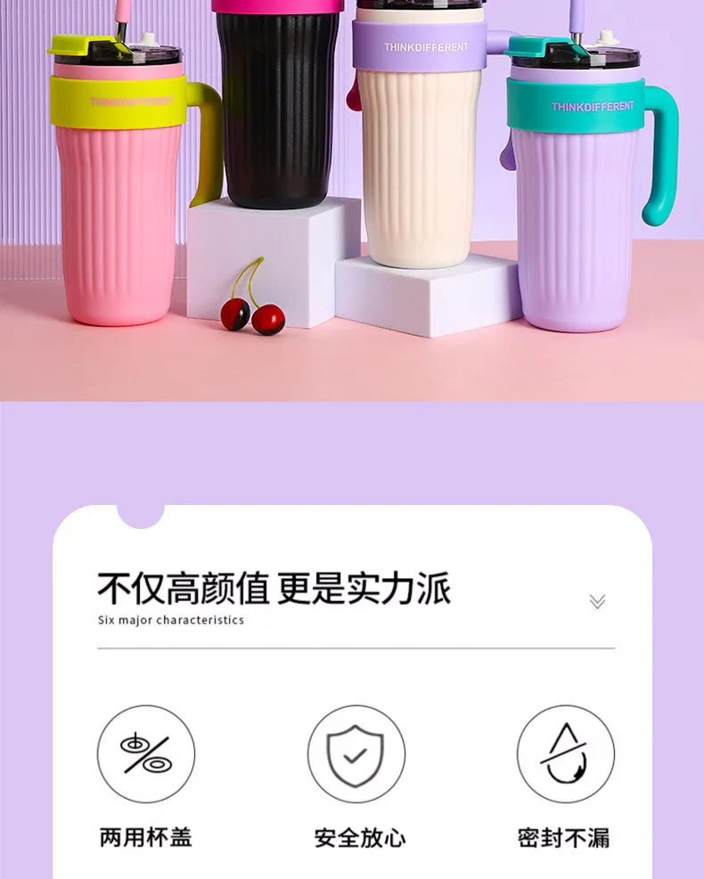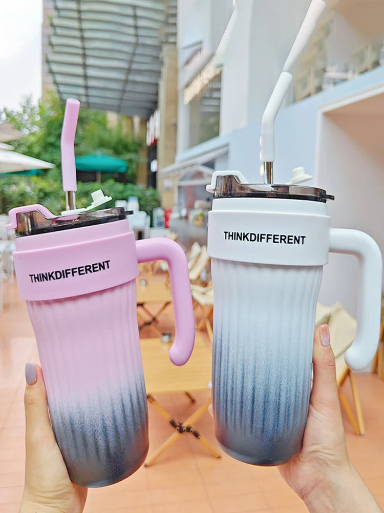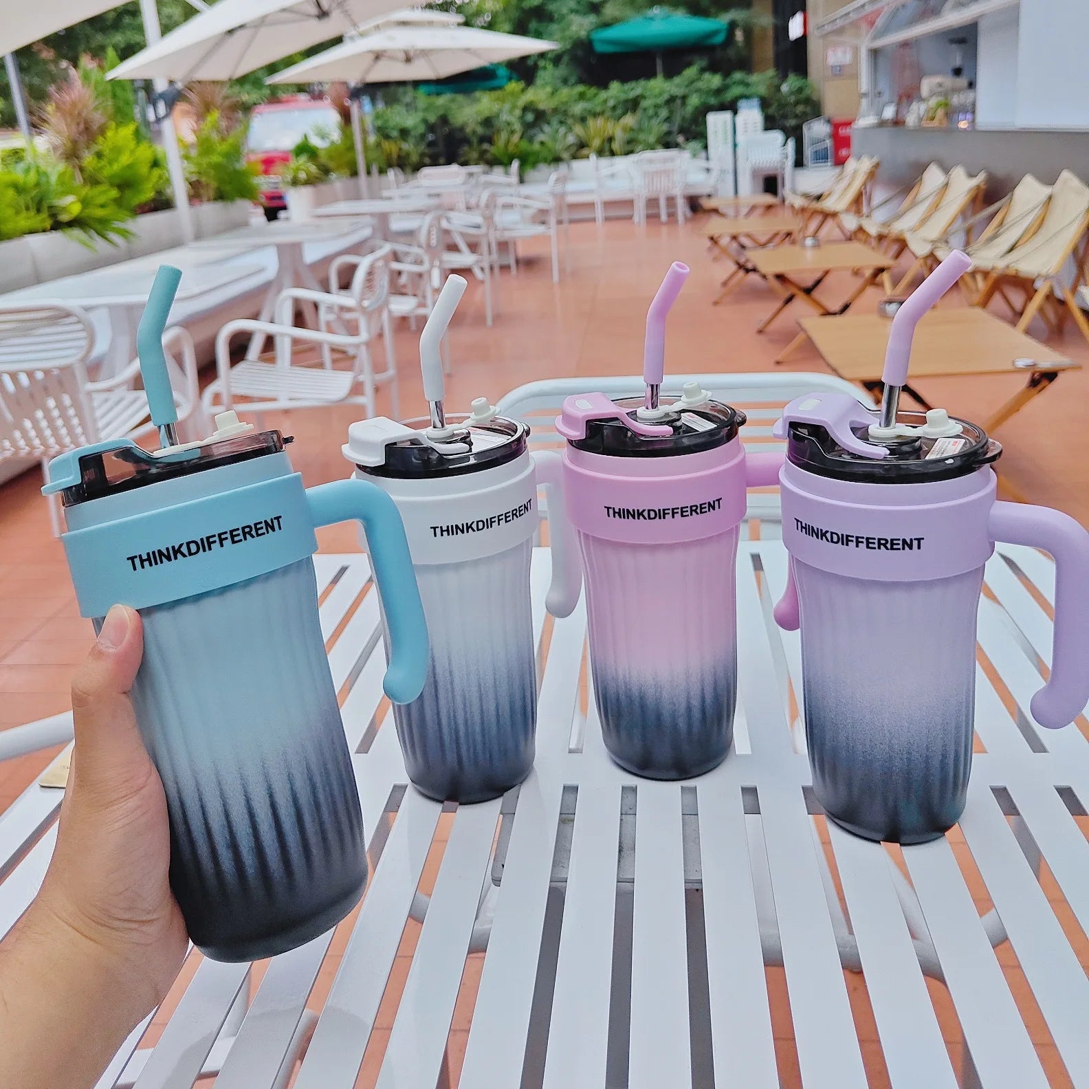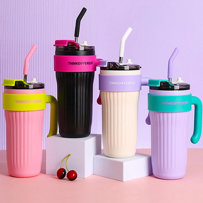 Thermosbeker met rietje, geïsoleerde beker, koffie, melk