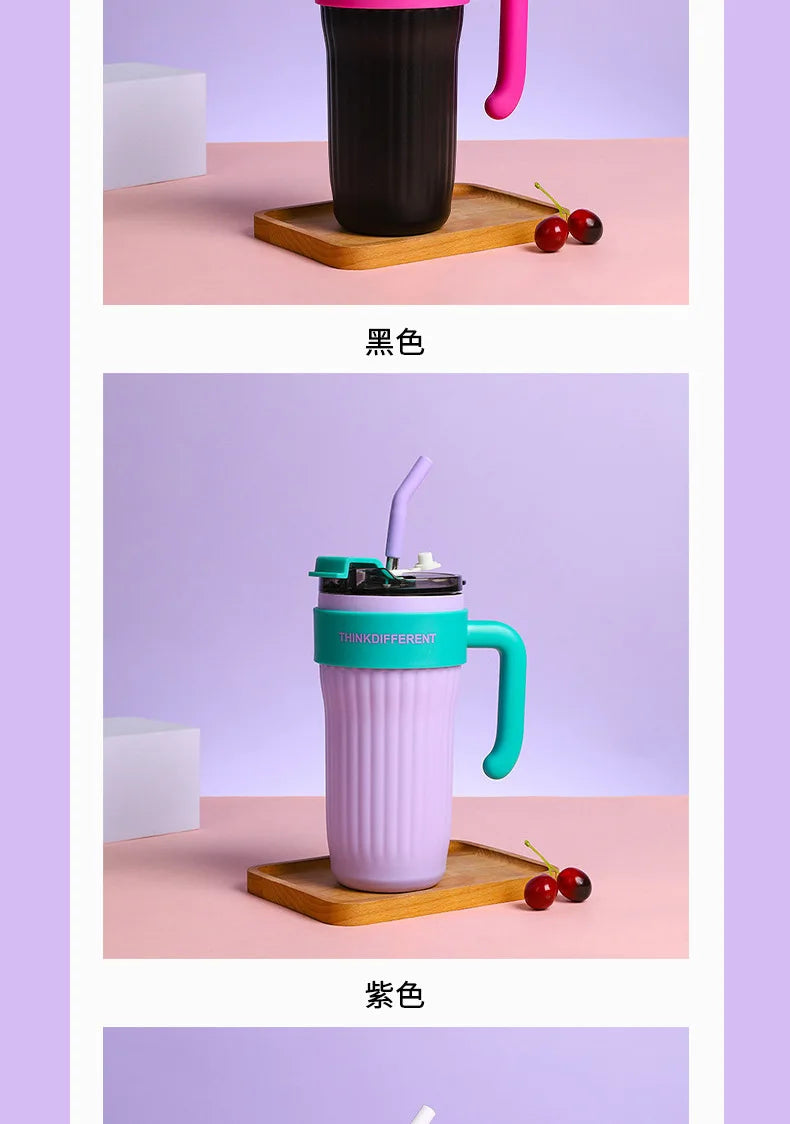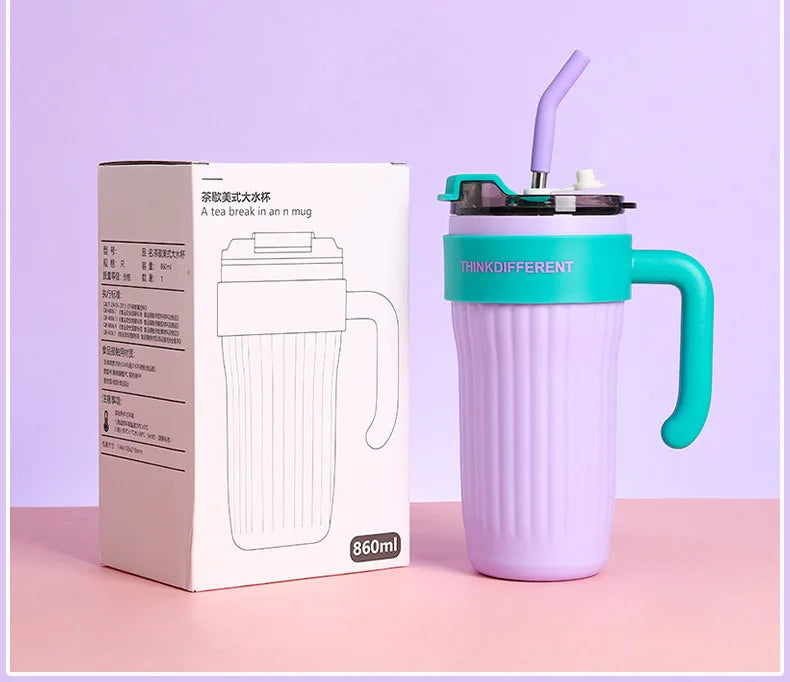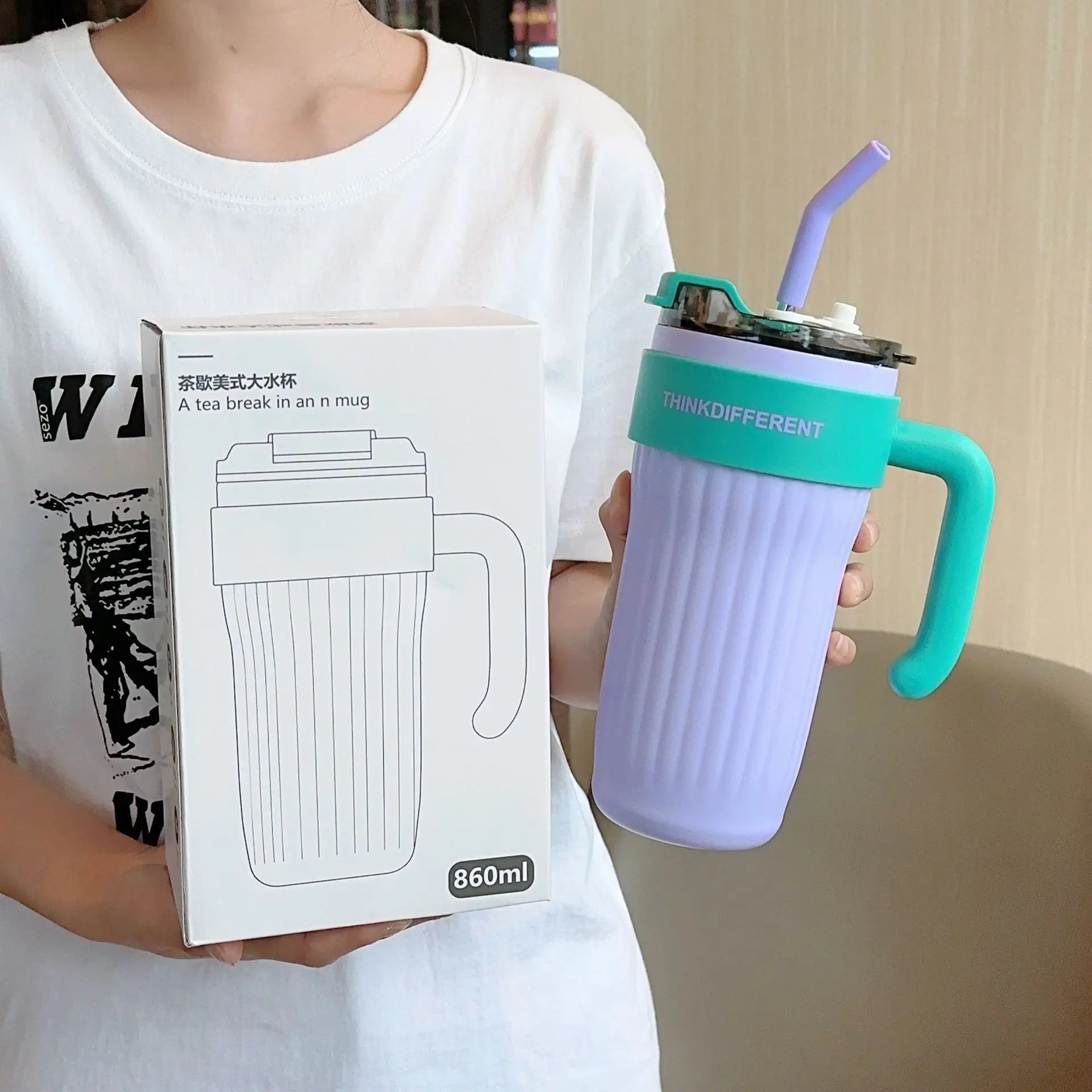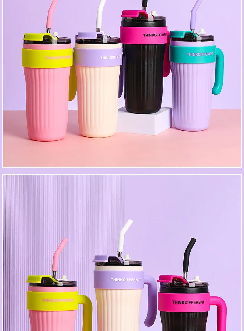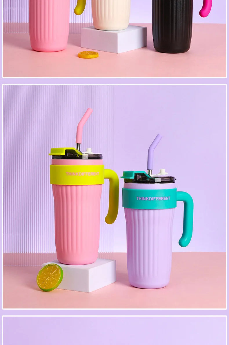 Thermosbeker met rietje, geïsoleerde beker, koffie, melk