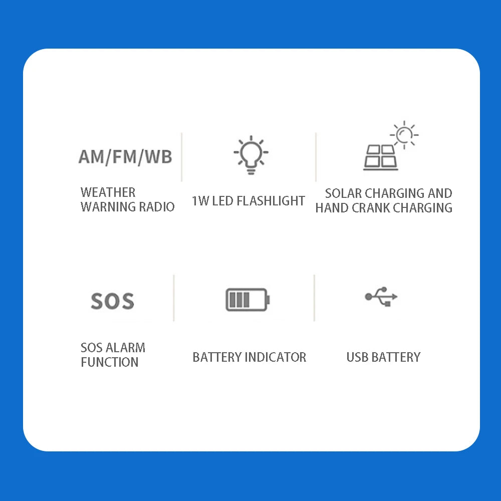 2000 mAh noodradio met led-verlichting, USB-oplaadbare radio, buiten, reisradio, draagbare oplaadbare FM/...