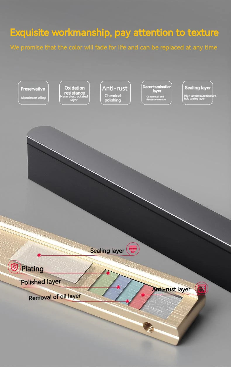 800-1200mm kastdeur afgeronde handgreep, lichte luxe gouden aluminiumlegering ladegreep, garderobedeurgre...