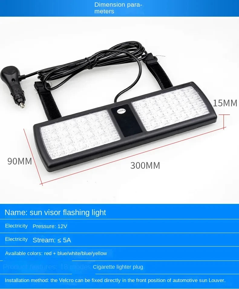 LED 12V Auto Vrachtwagen Stroboscoop Paneellicht Zonneklep Noodbaken Flitssta...