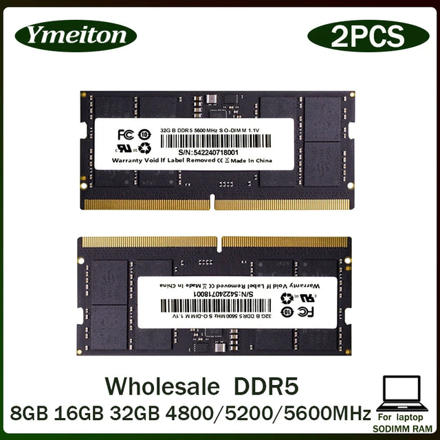 Ymeiton DDR5 2 PCS Notebook General Memory memoriam 4800Mhz 5200Mhz 5600Mhz 8G 16G 32G SO-DIMM 288pin RAM...