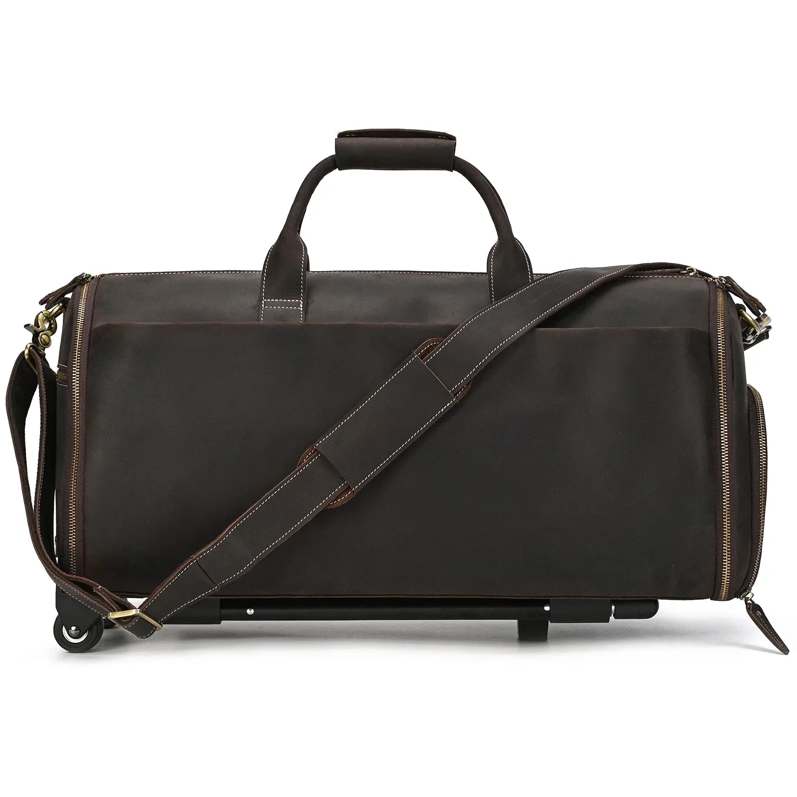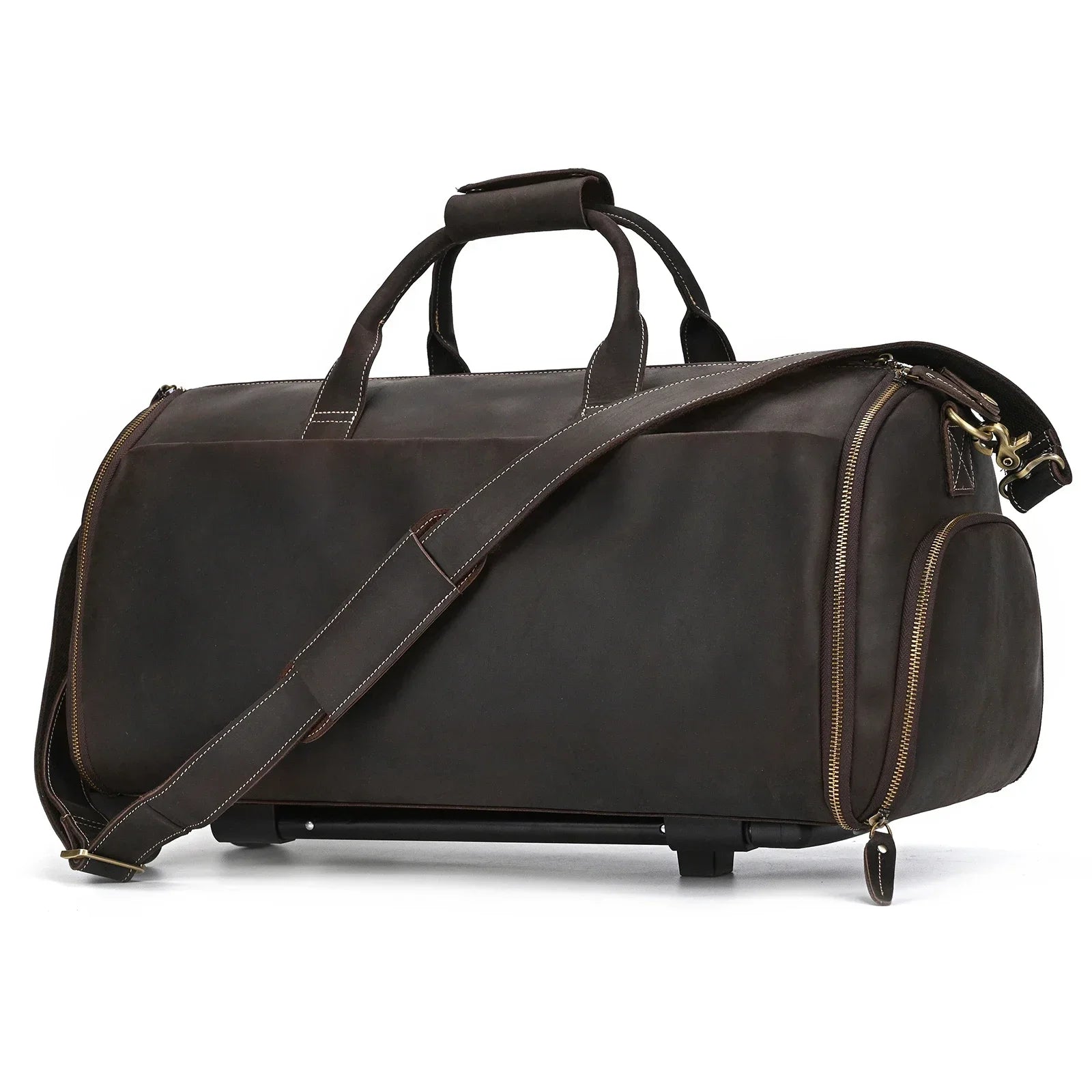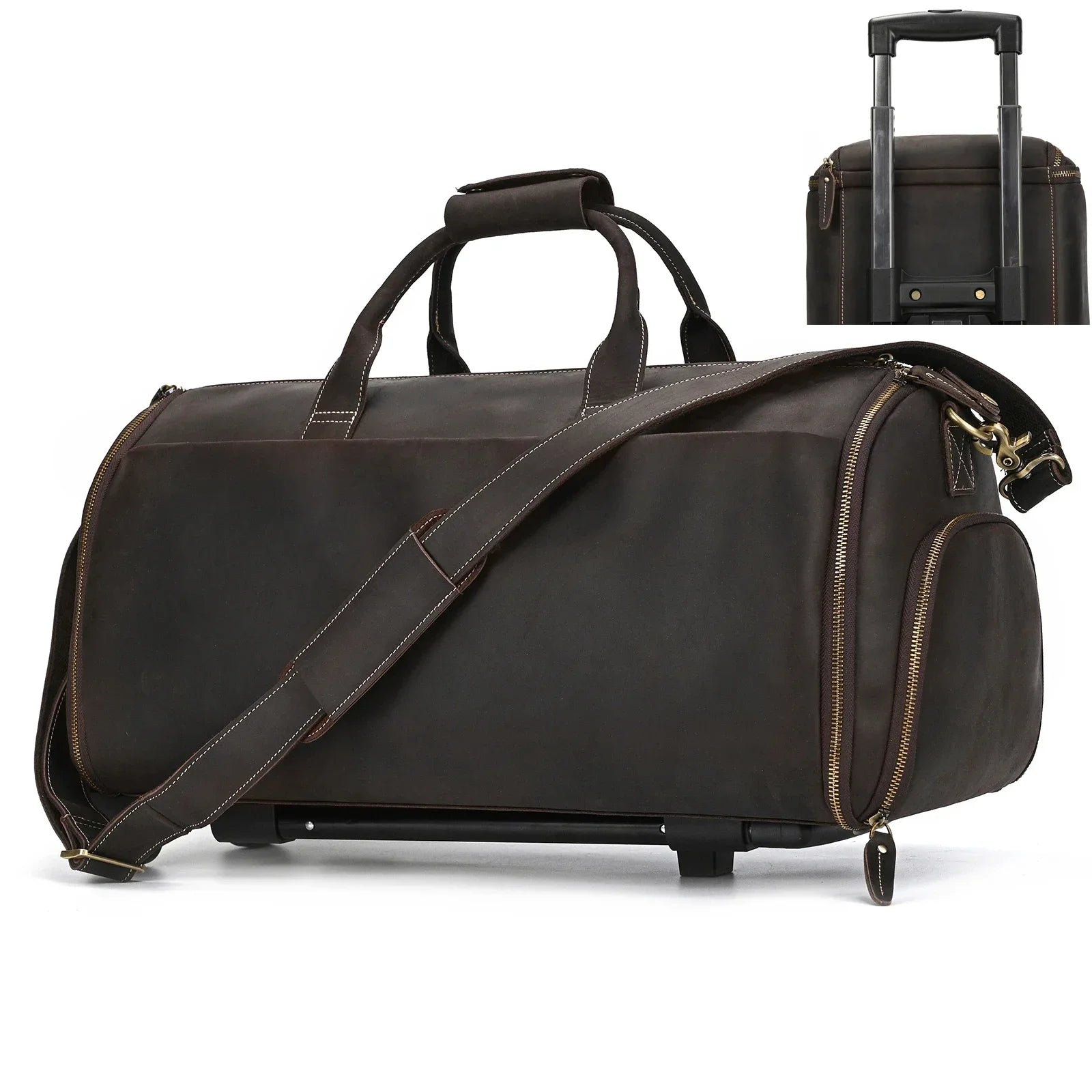 Echte leren bagagetas voor pakken, trolleytas voor op reis, handtas voor heren, weekendtas met wielen, re...
