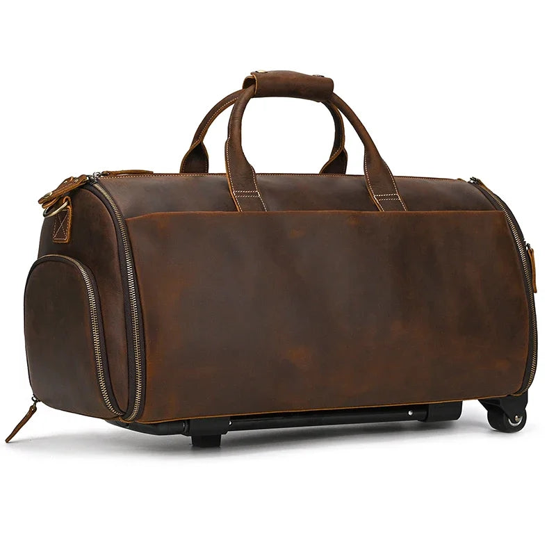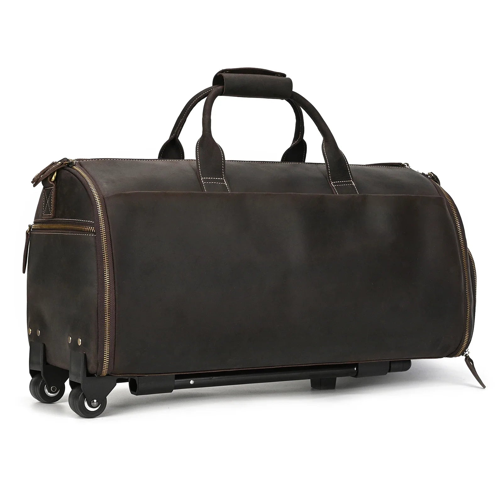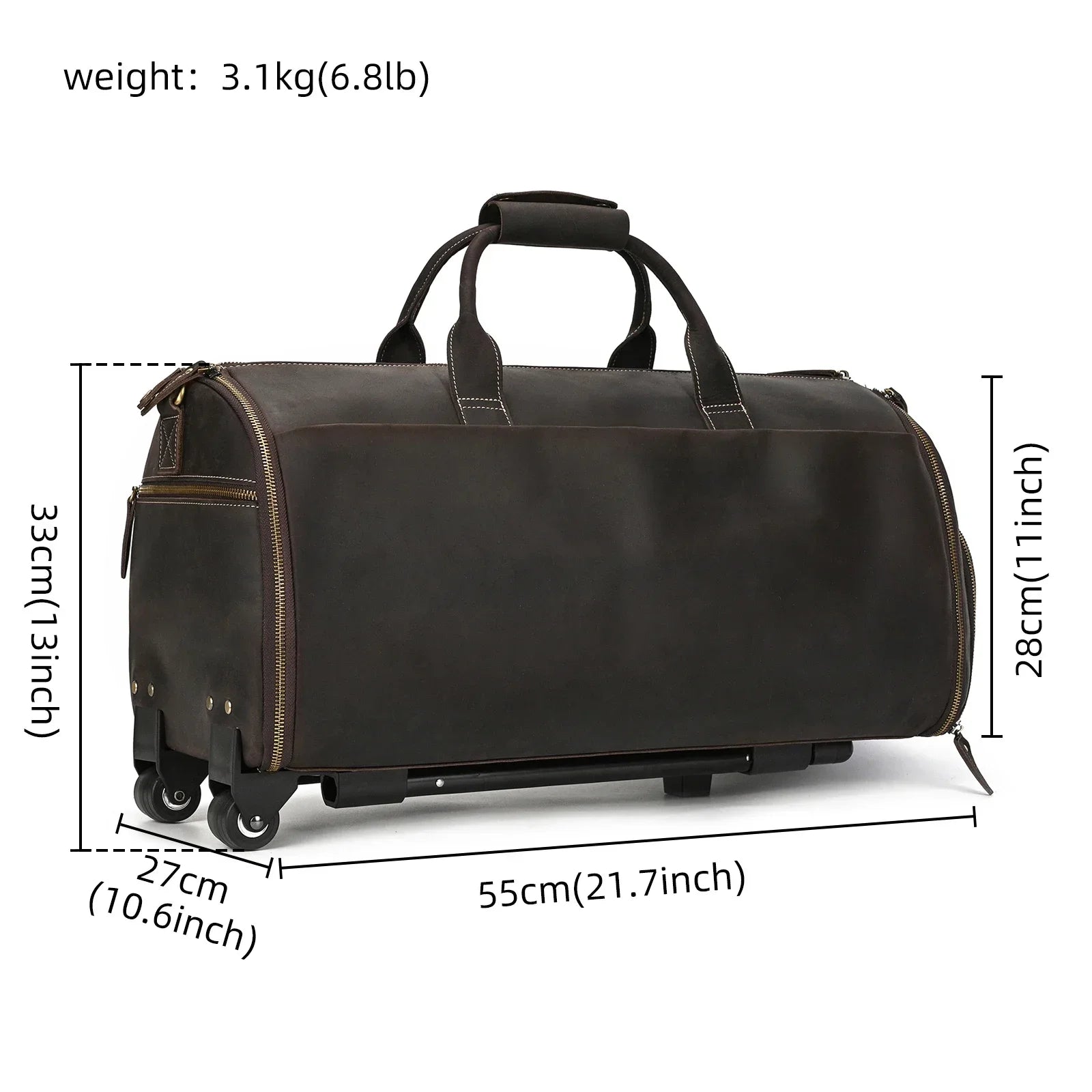 Echte leren bagagetas voor pakken, trolleytas voor op reis, handtas voor heren, weekendtas met wielen, re...