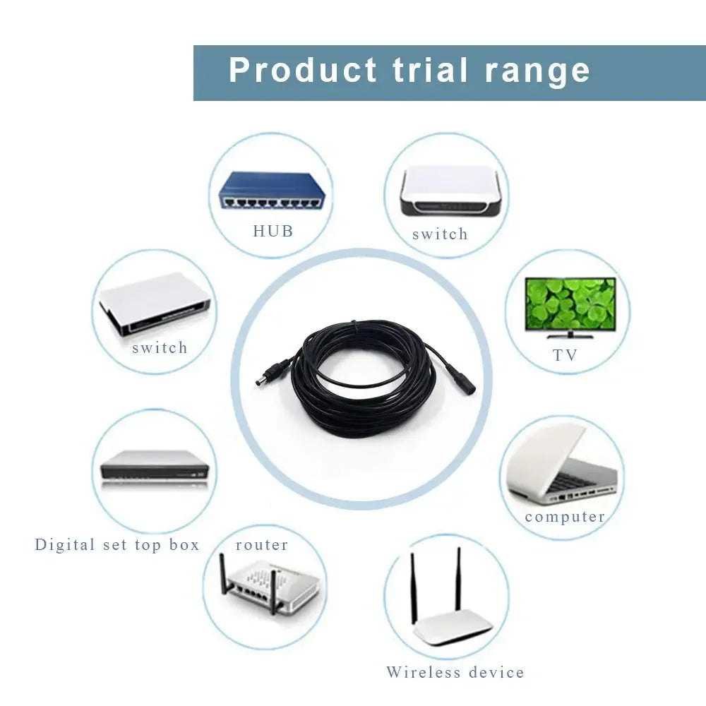 DC-verlengkabel 1M 2M 3M 5M 10M 5,5x2,1mm vrouwelijk naar mannelijk stekker voor 12V 5V 24V stroomadapter...
