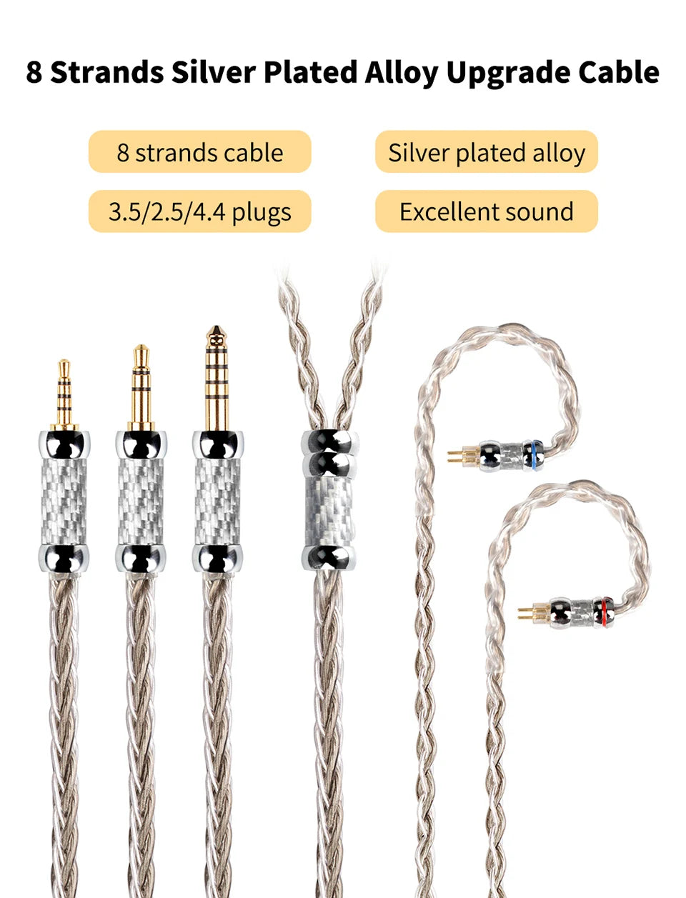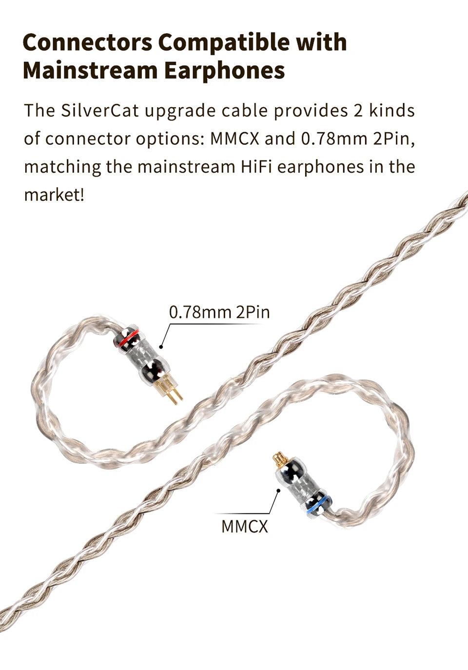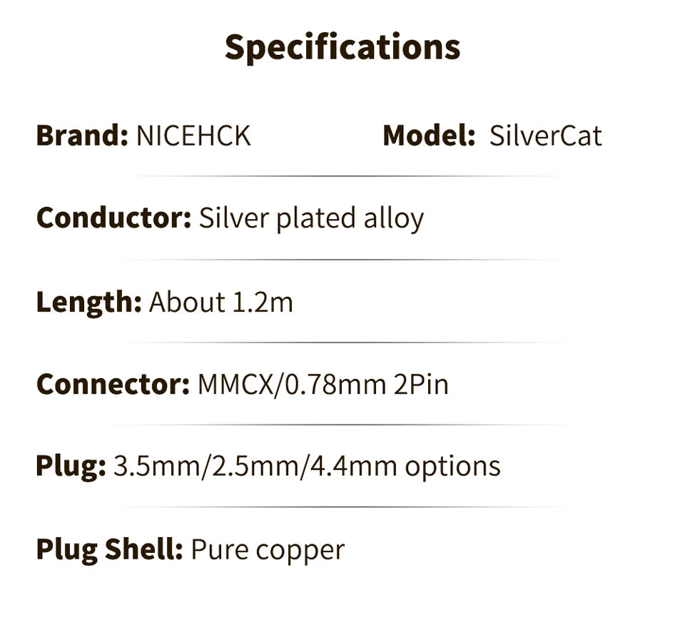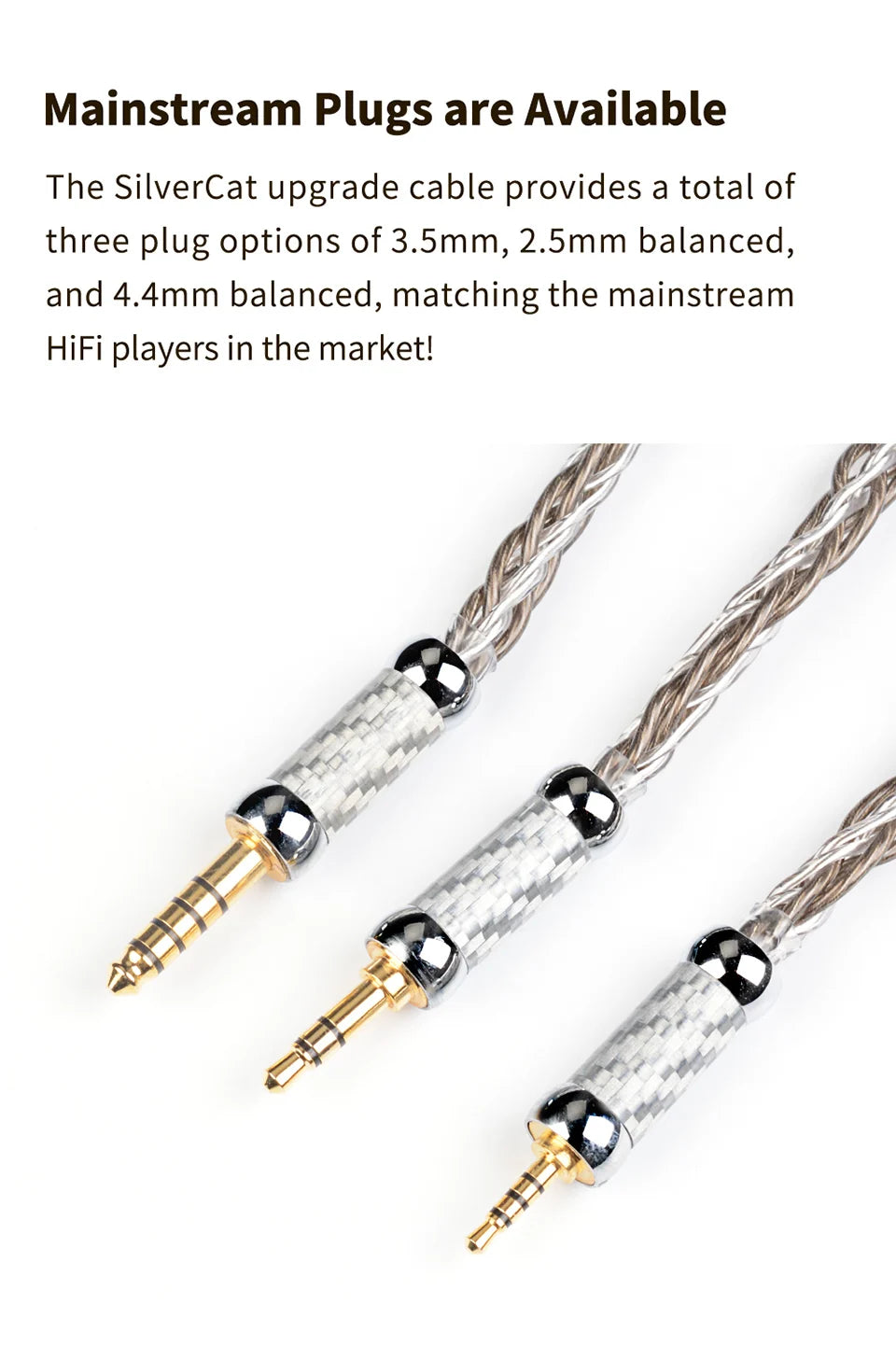 NICEHCK SilverCat 8 Cores Verzilverde Legering Oortelefoon Upgrade Vervang Kabel 3.5/2.5/4.4mm MMCX/0.78m...