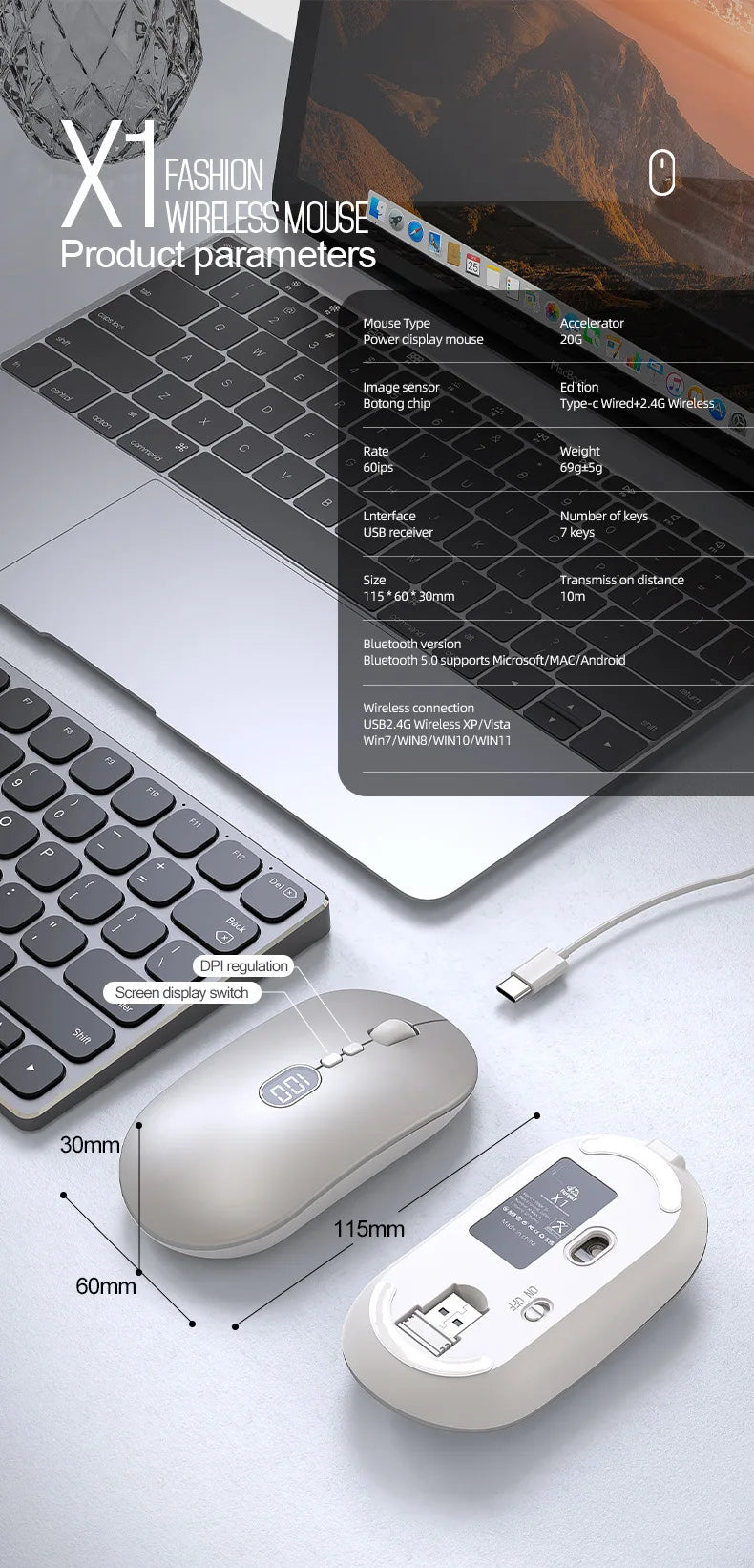 Gratis Wolf X1 Draadloze Schermmuis Laptop Kantoor Desktop Computer Gaming Mode Esports Muis Handig