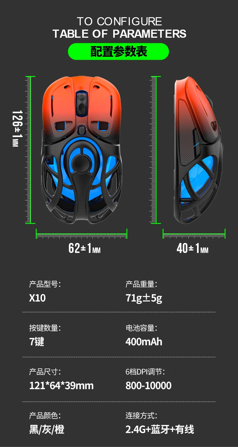 Wolf King X10 Bluetooth draadloze tri-mode muis lichtgewicht skeletontwerp draagbare gamingmuis voor pc A...