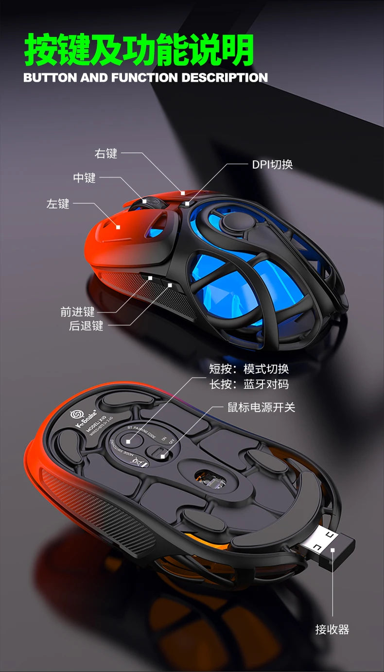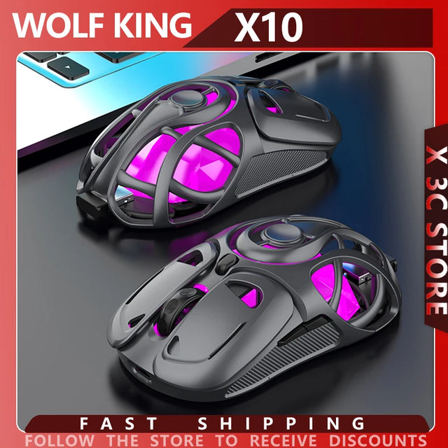 Wolf King X10 Bluetooth draadloze tri-mode muis lichtgewicht skeletontwerp draagbare gamingmuis voor pc Android iOS universeel