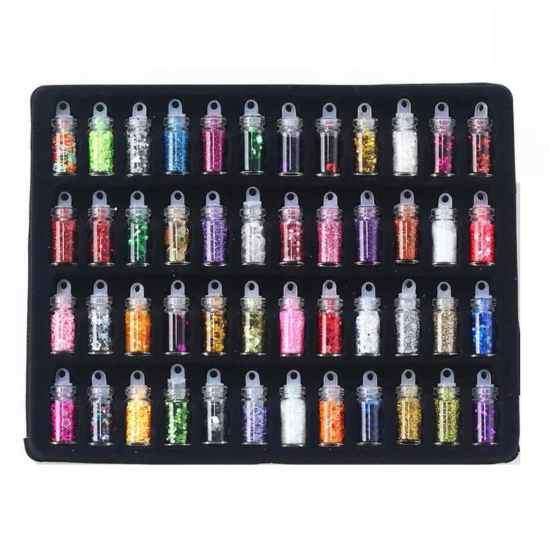 48 Flesdoos Professionele Glinsterende Hars Glitter Poeder Hart Ster Micro Kr...