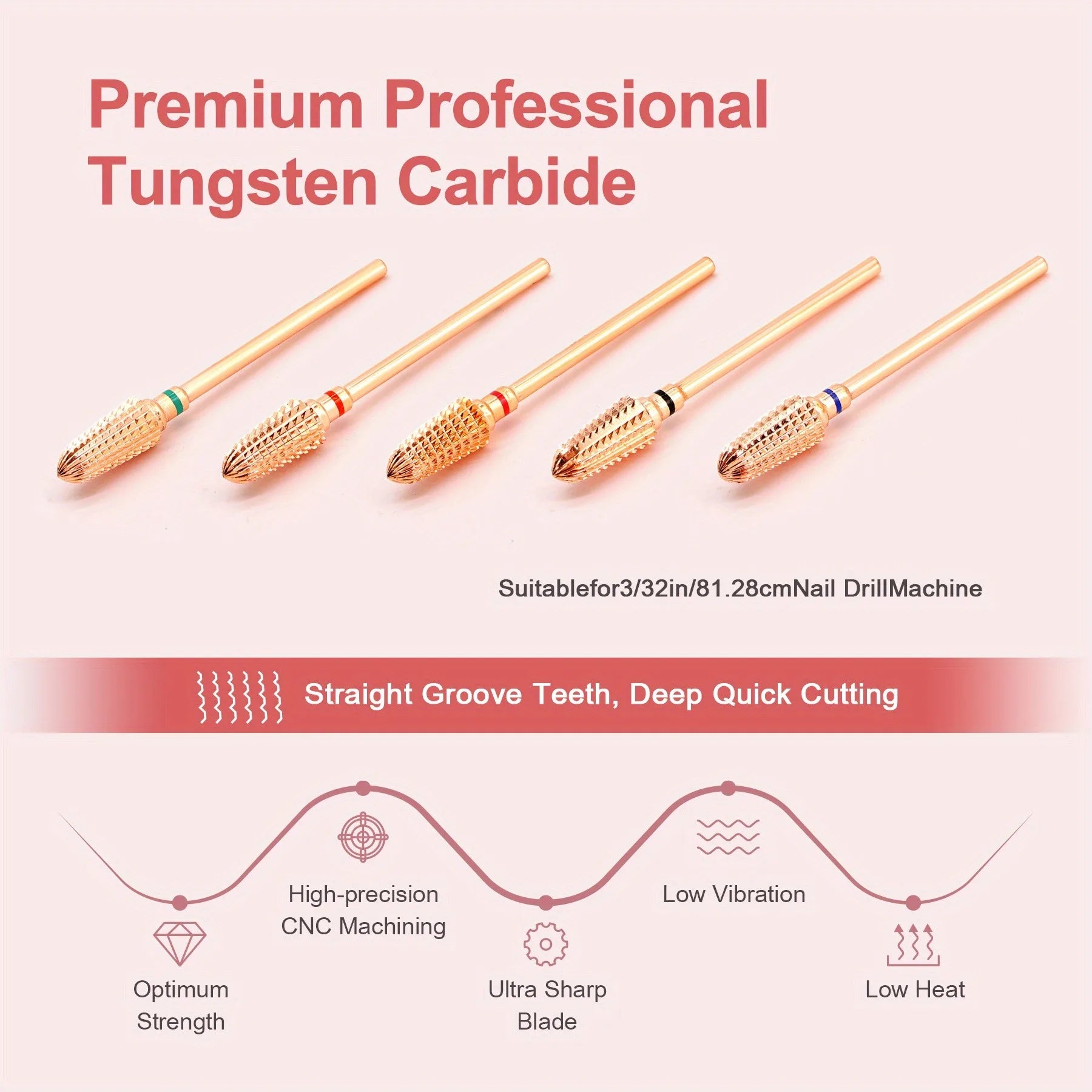5 stijlen Rose Golde Tungsten Carbide Acryl Nagelboor Professionele Elektrisc...