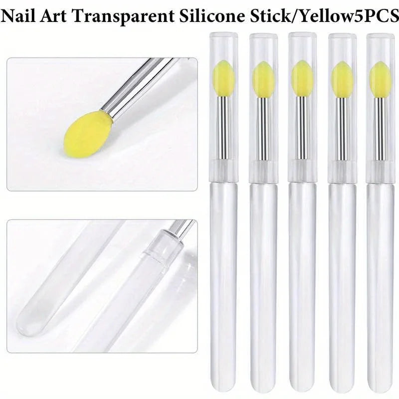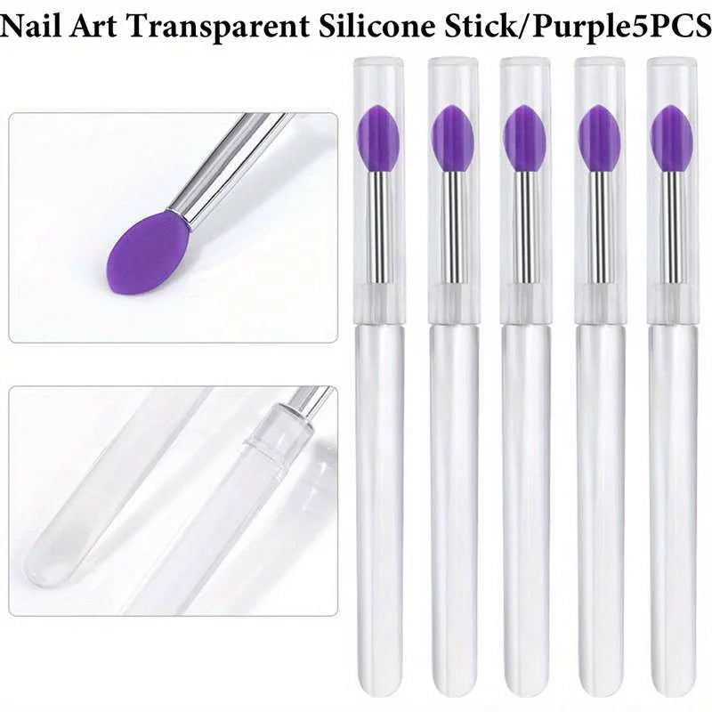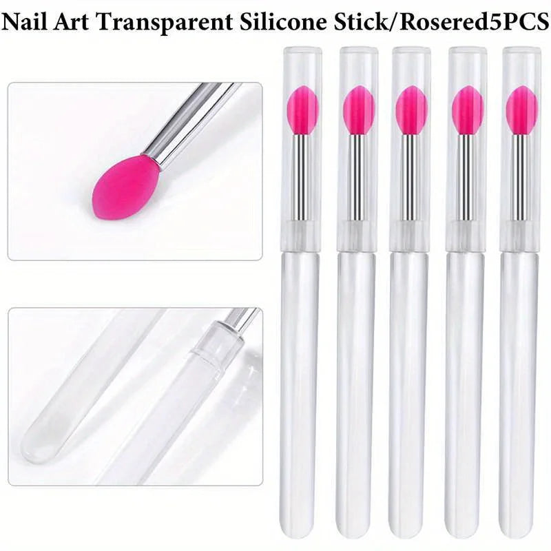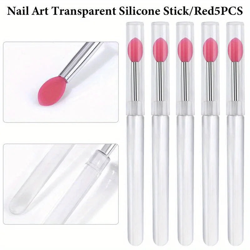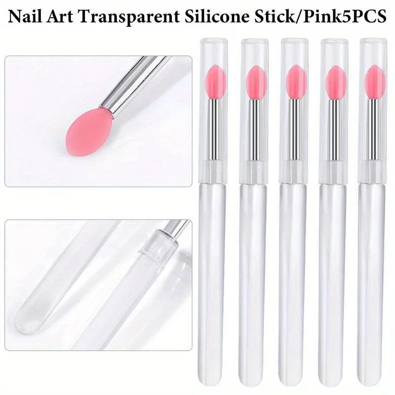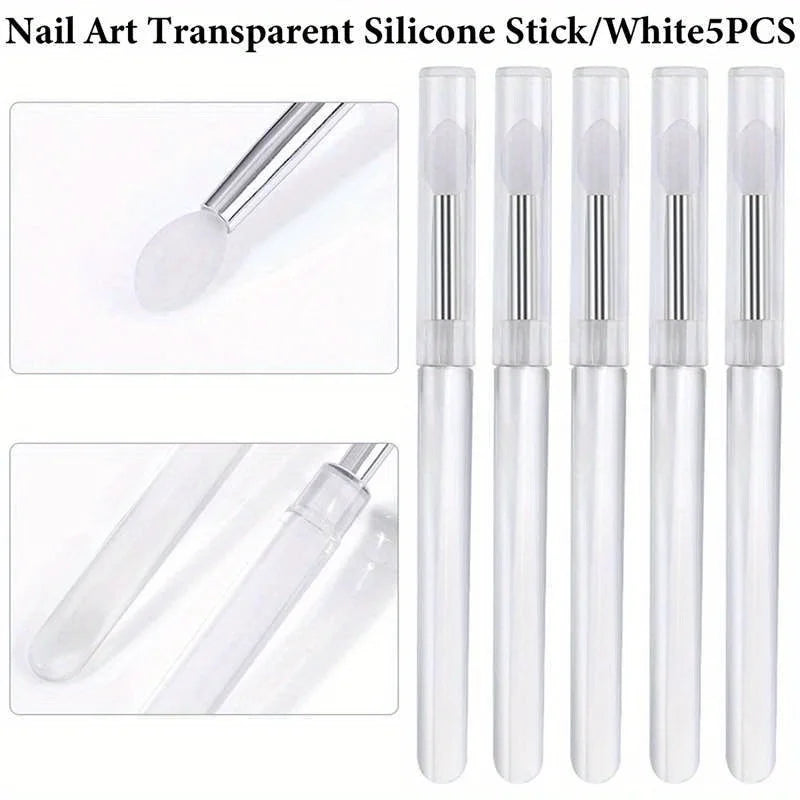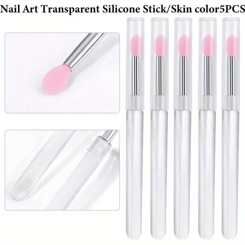 5 stuks multifunctionele transparante siliconen nagelkunstkwast, siliconen na...