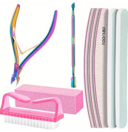 9 stuks Nail Art 100 180 Grit Professionele Vijlen Buffer Spons Blok Borstel ...
