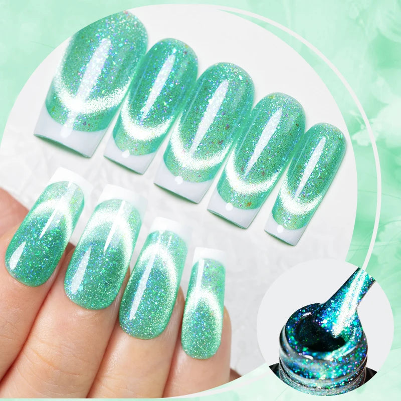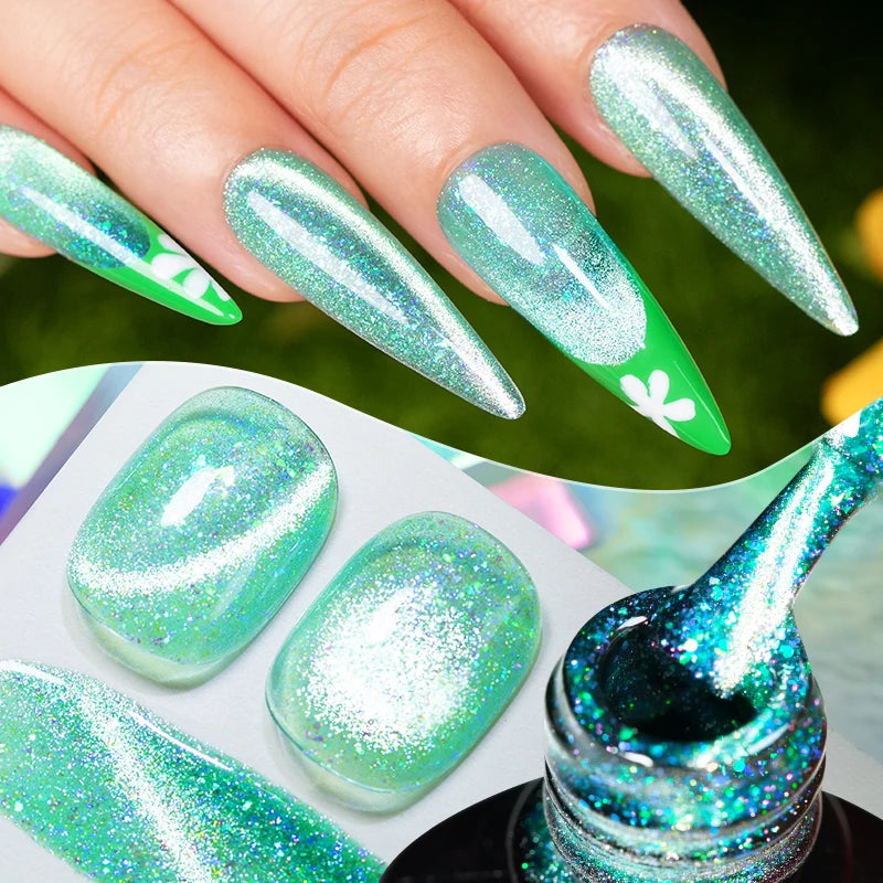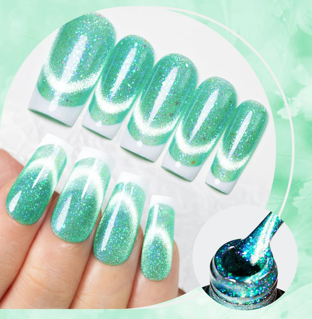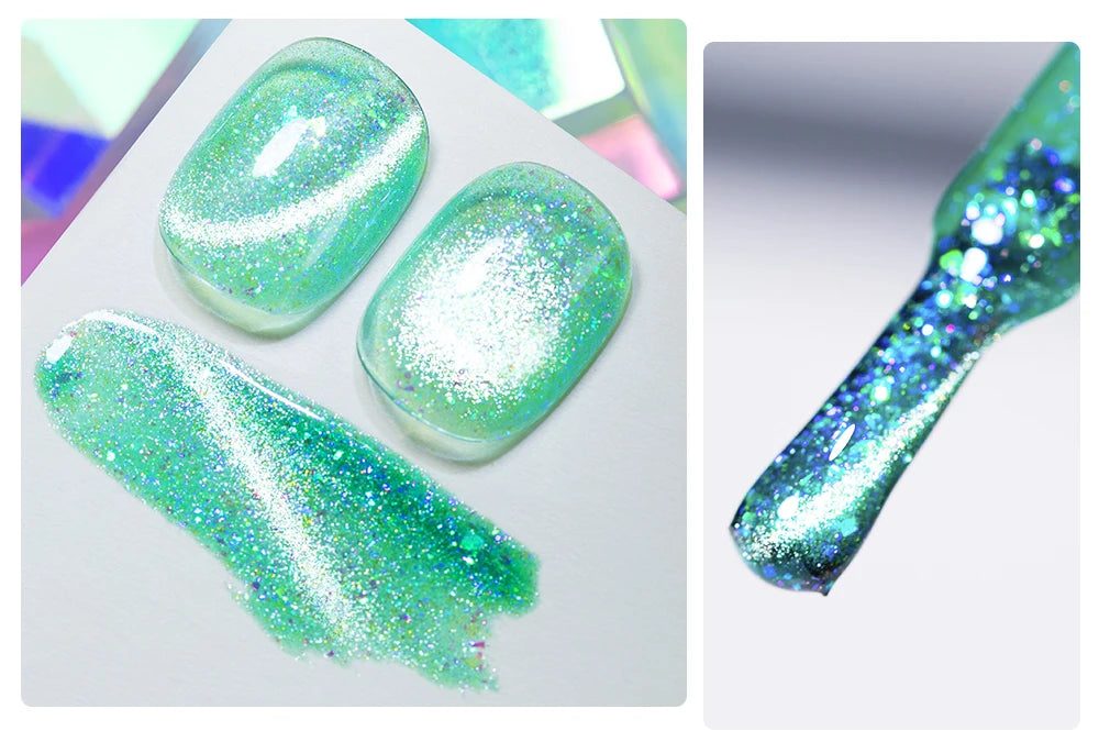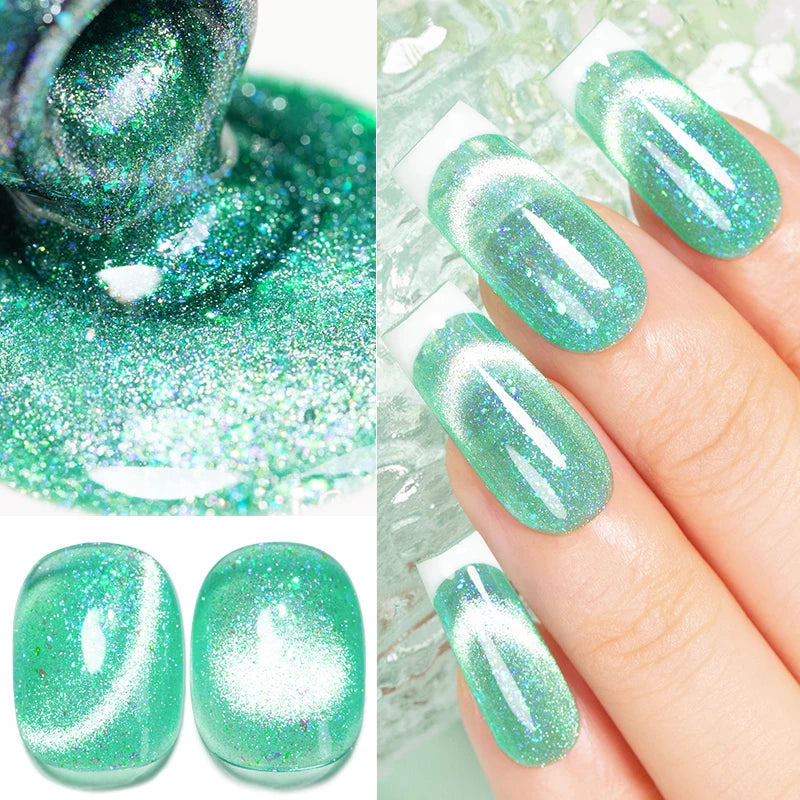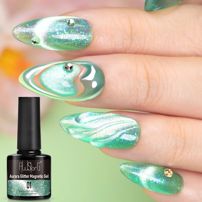 AWStorG 7,5 ml Flakes Cat Magnetic Gel Summer Green Magnetic Gel Nail Art Pol...
