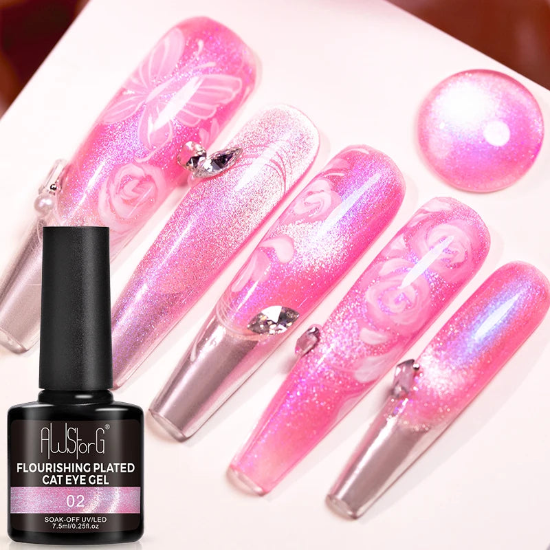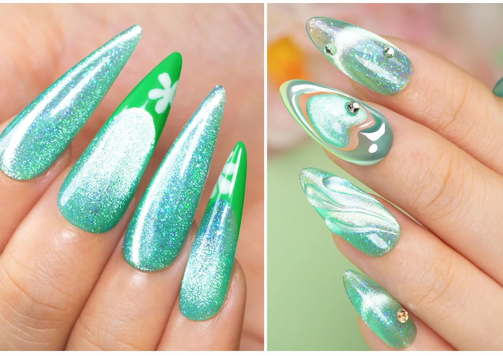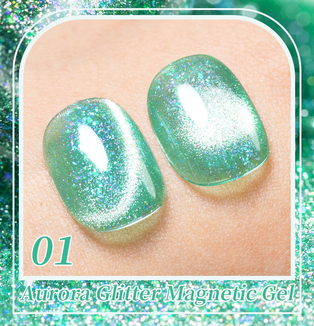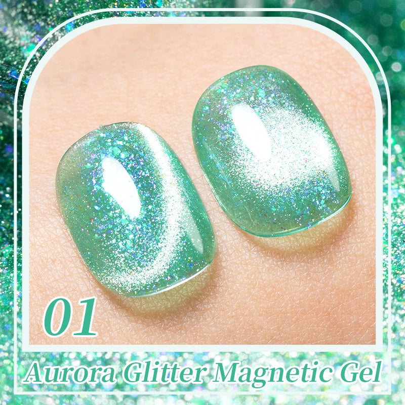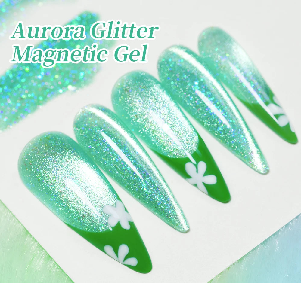 AWStorG 7,5 ml Flakes Cat Magnetic Gel Summer Green Magnetic Gel Nail Art Pol...