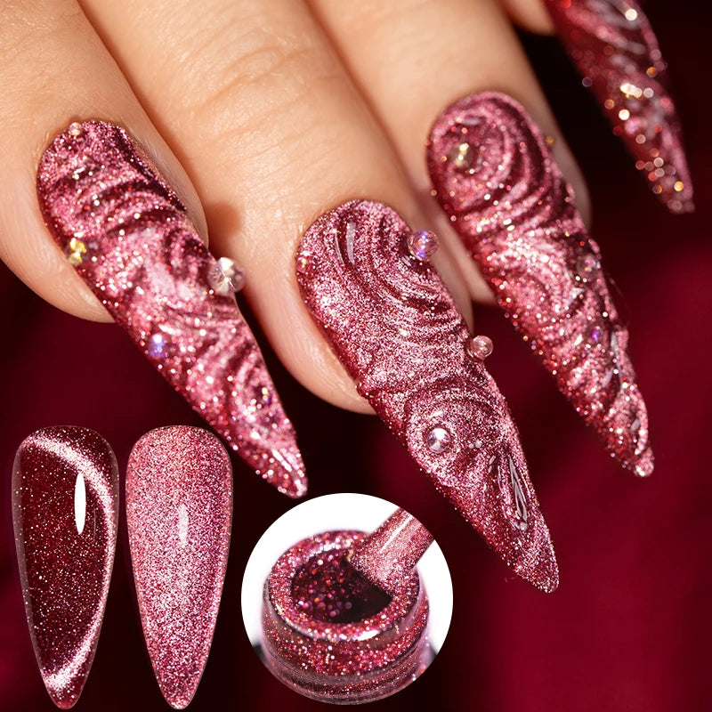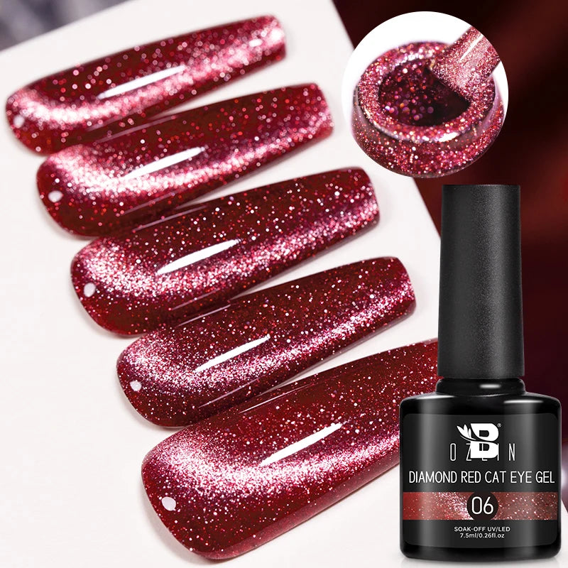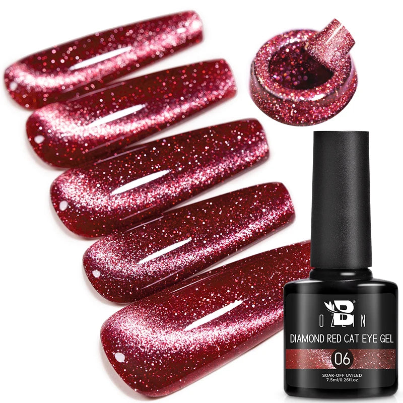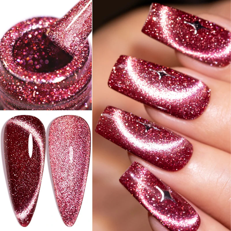 Bozlin 7,5 ml Glitter Rode Kat Magnetische Gel Nagellak Super Glanzende Kerse...
