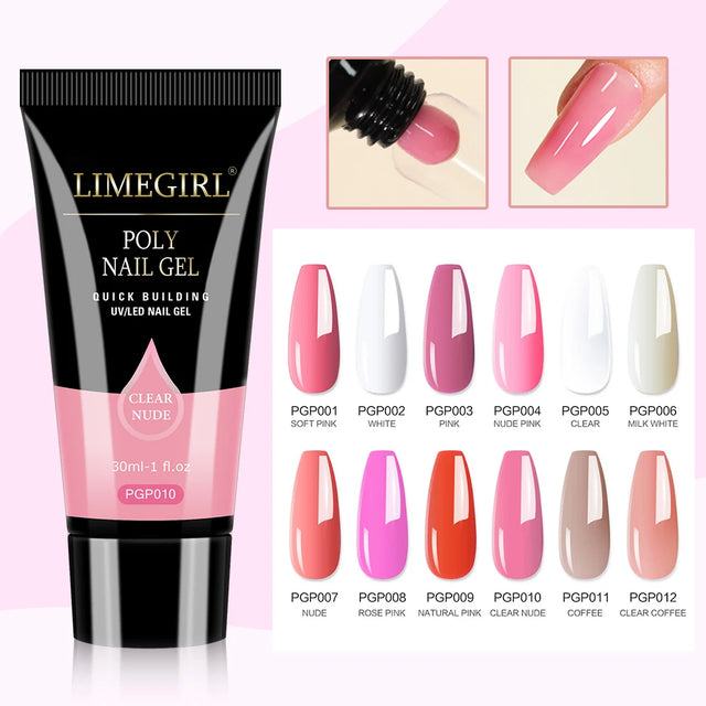 LIMEGIRL 30ml Nagelverlengingsgel Glitter Soak Off Nail Acryl Crystal Build Poly UV Gel voor nagels Snell...