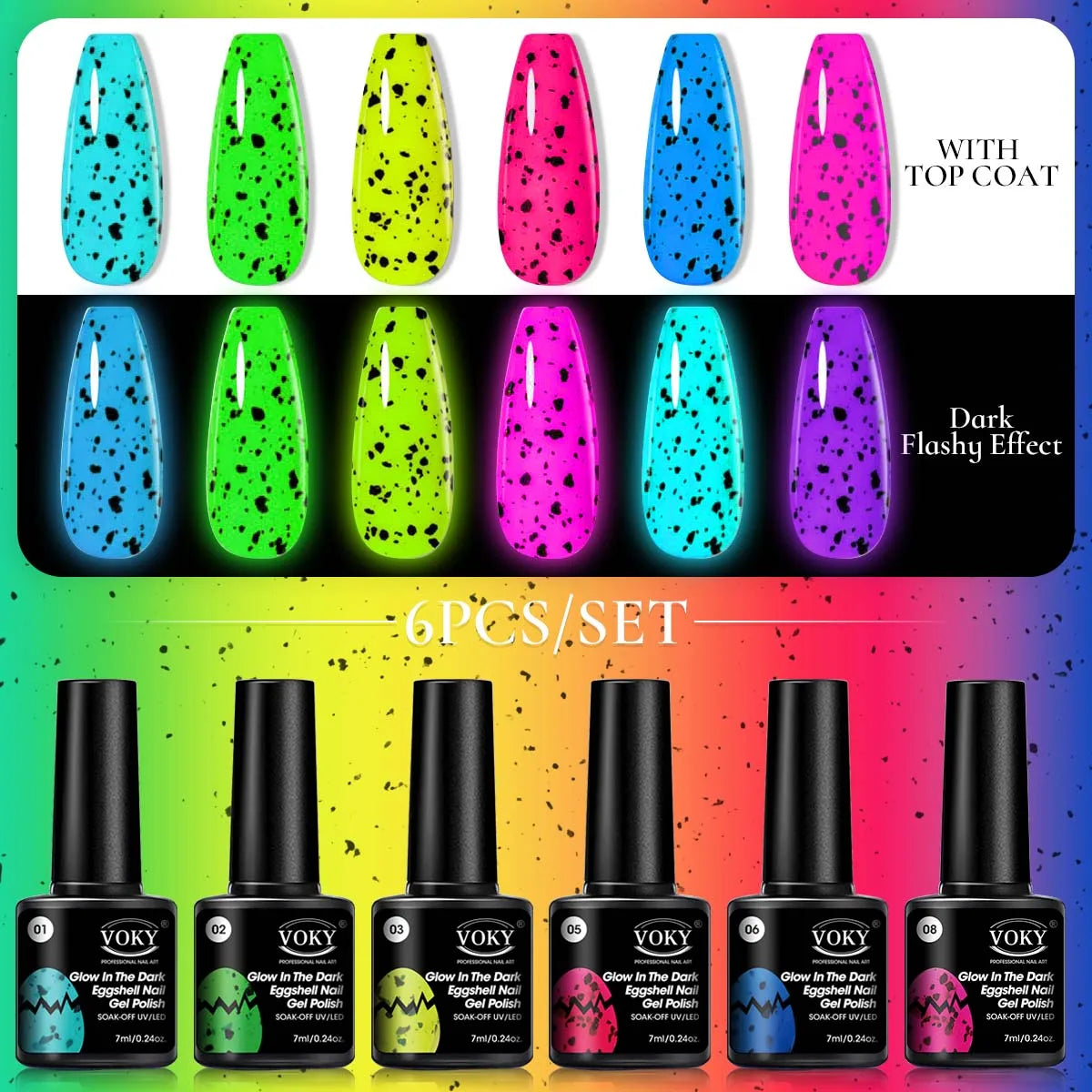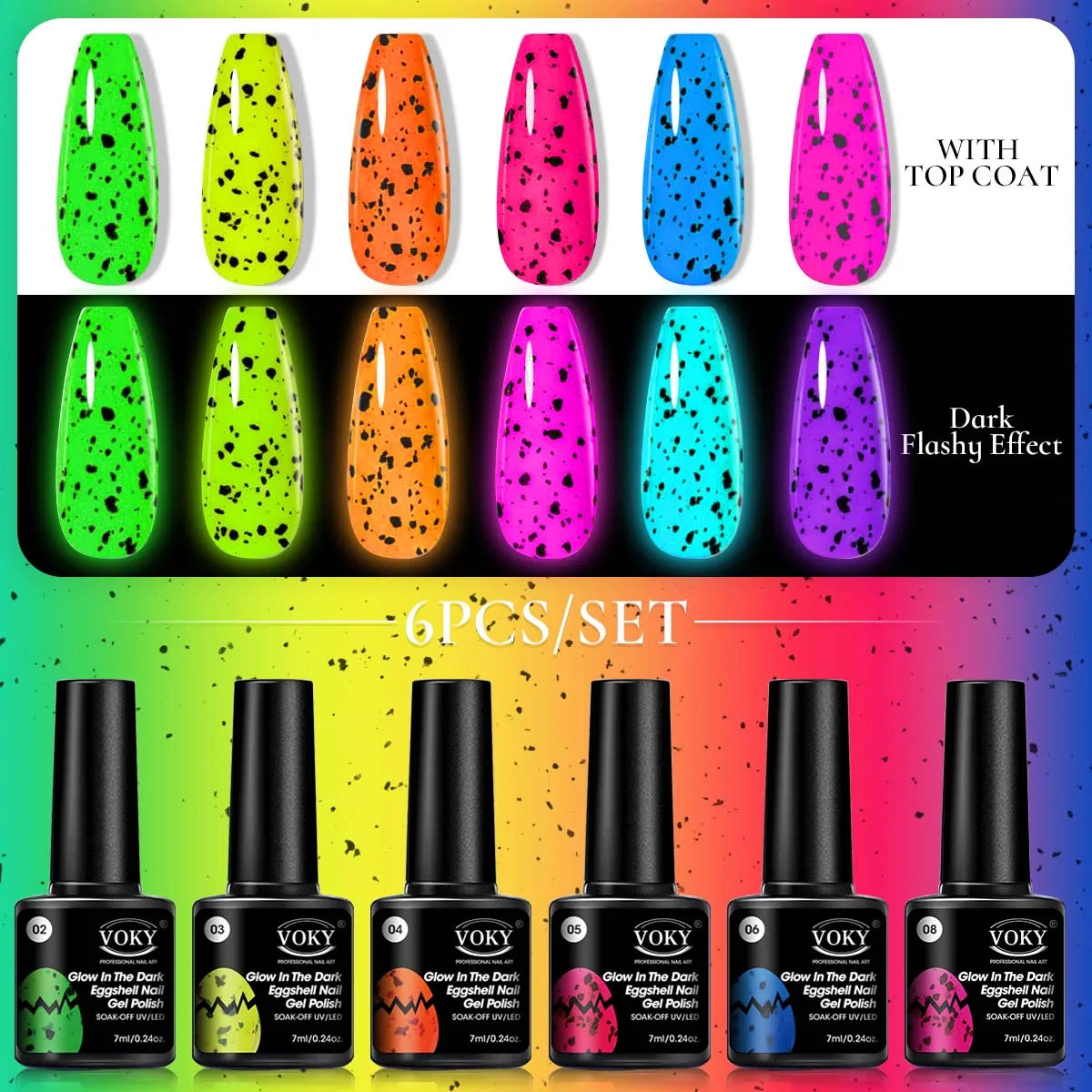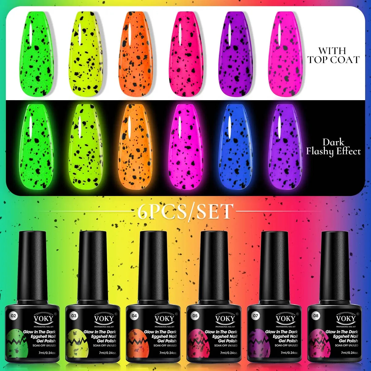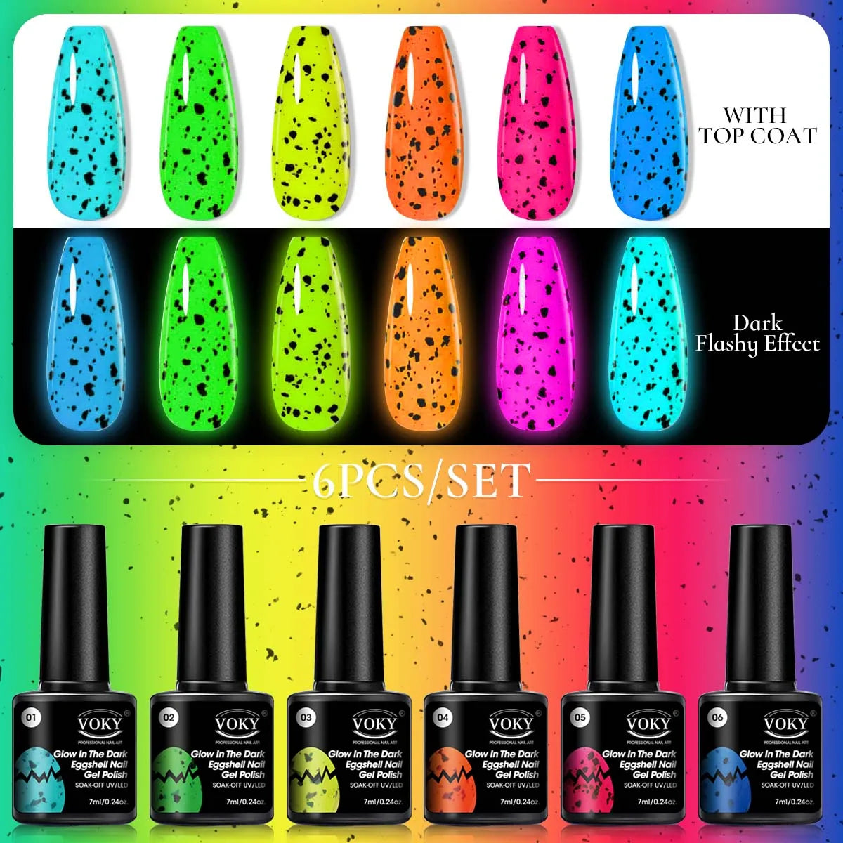 Voky 6-delige set fluorescerende glow in dark gelnagellak zomerse neon semi-p...