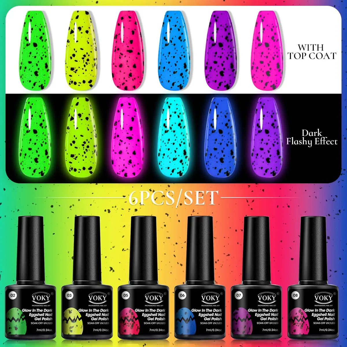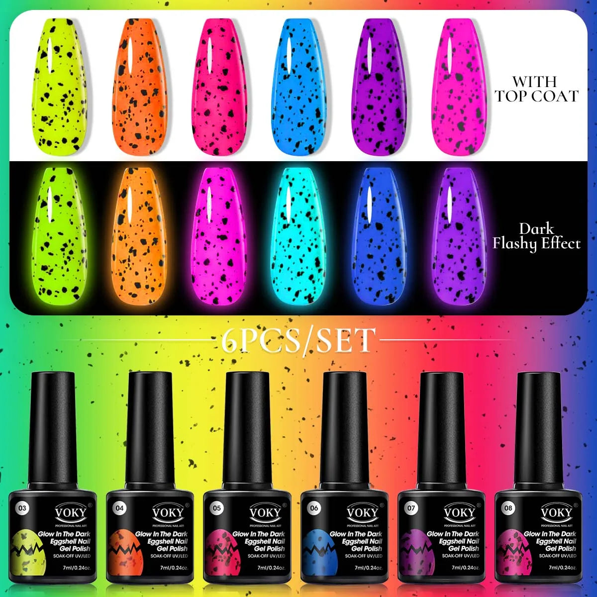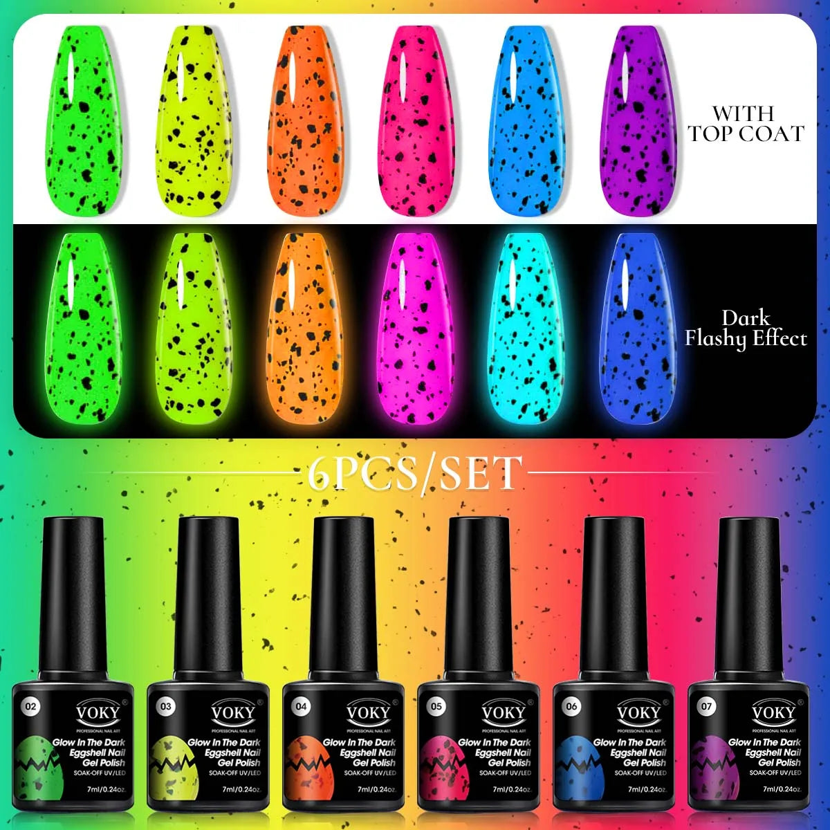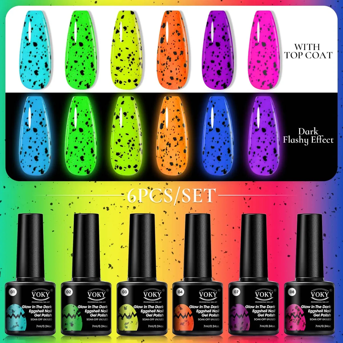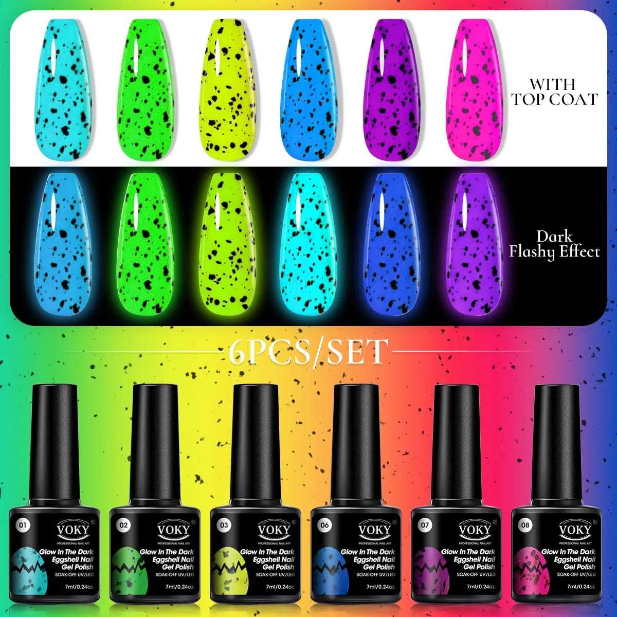 Voky 6-delige set fluorescerende glow in dark gelnagellak zomerse neon semi-p...