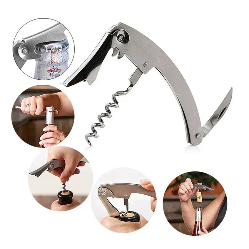 3 5-delige set rode wijnflesopeners van roestvrij staal, multifunctionele rod...