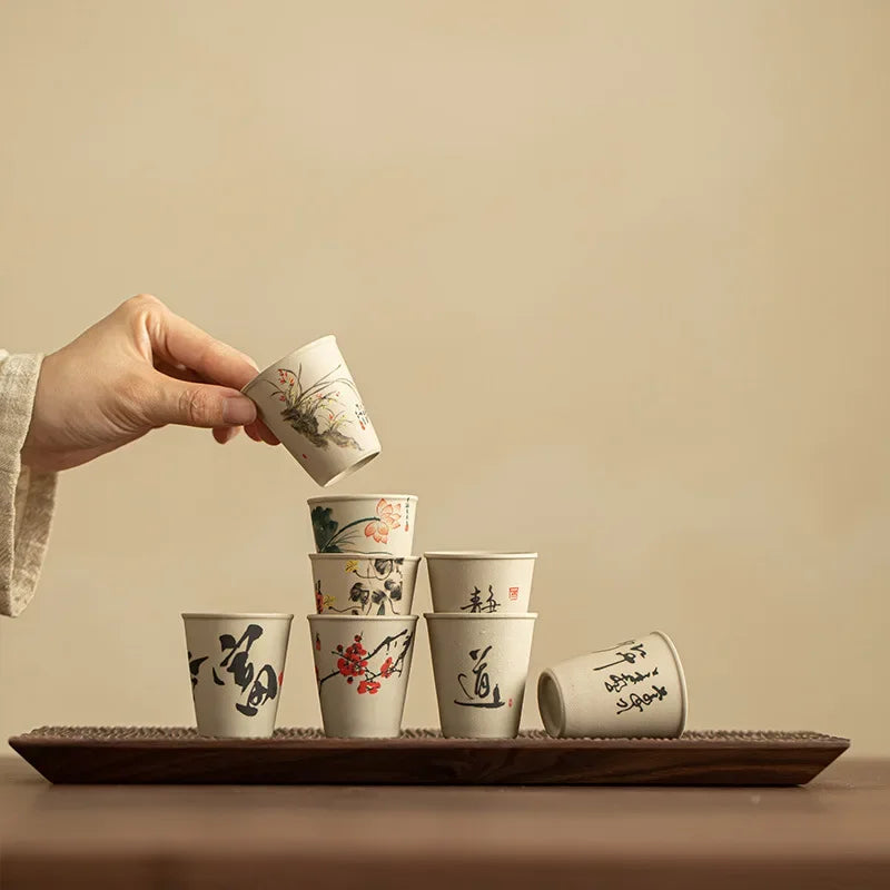Set van 8 keramische theekopjes, creatieve Chinese theecultuur, kantoor, thui...