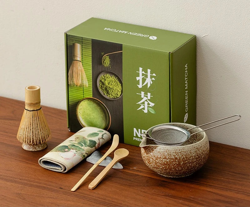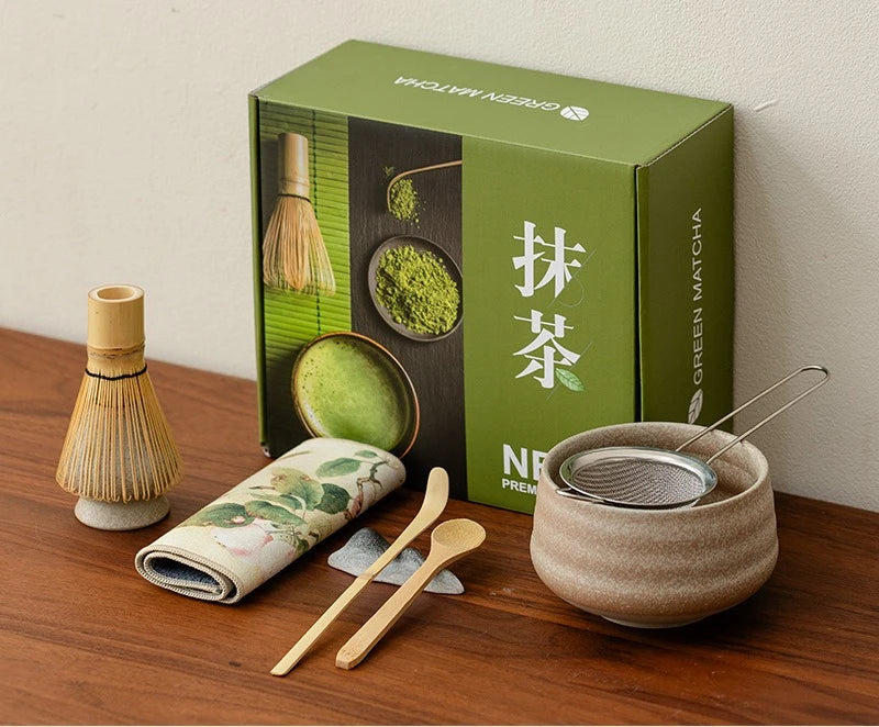 8 stuks Matcha kom keramische Matcha set theewas bamboe Matcha borstel Baiben...