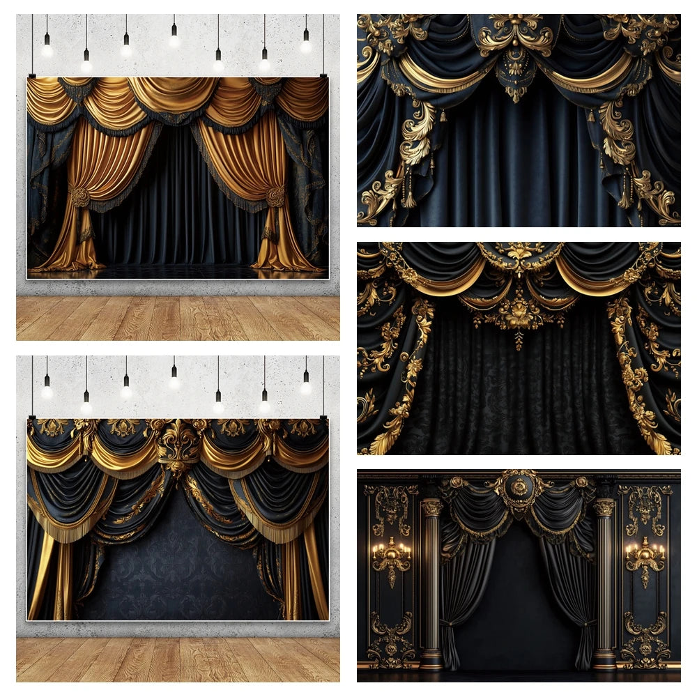 Zwarte vergulde gouden gordijnen Achtergronden voor foto's Bruidsdouche Verja...