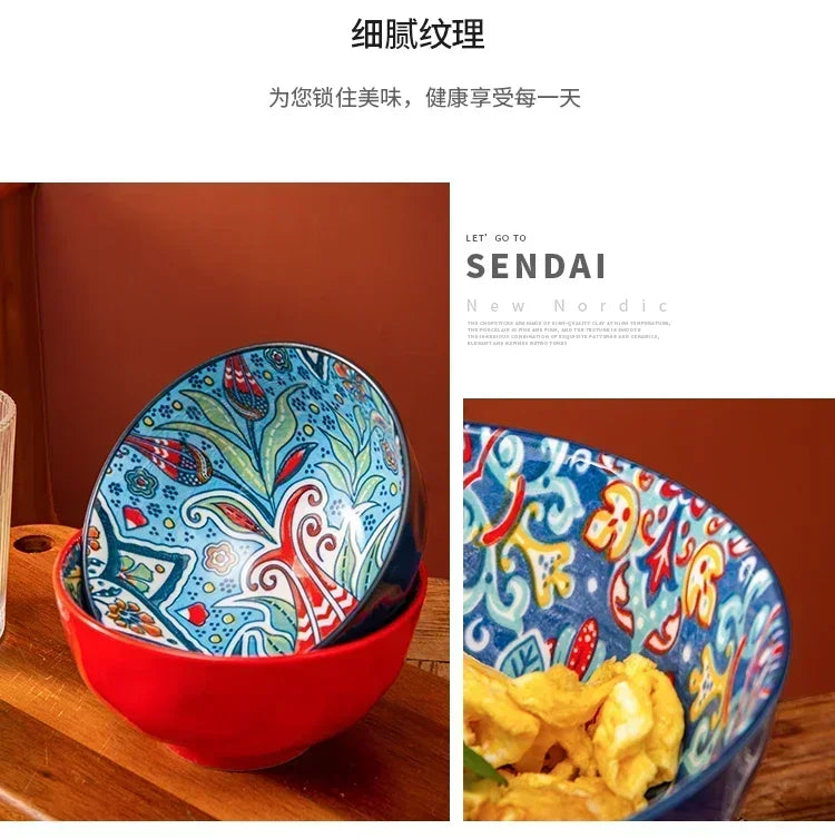 Boheemse rijstkom Home Creatieve persoonlijkheid Keramische kom Hoog uiterlij...