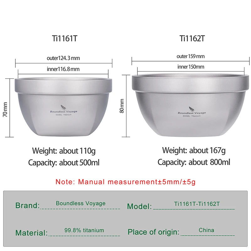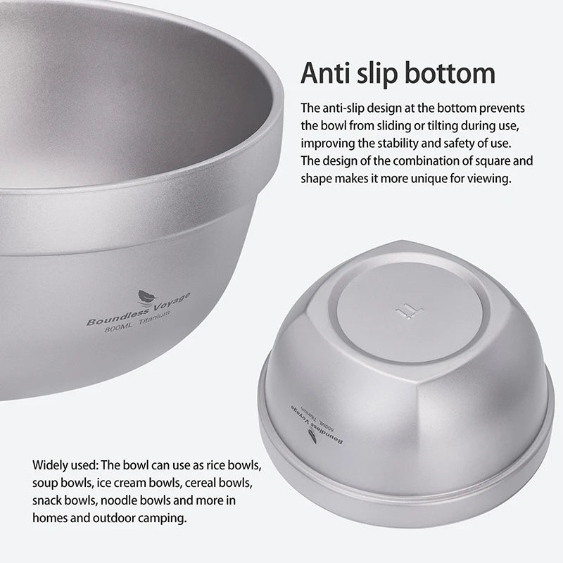Boundless Voyage 500ml 800ml Dubbelwandige Titanium Kom Voedsel Rijst Soepkom...