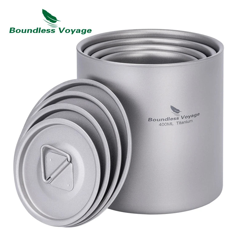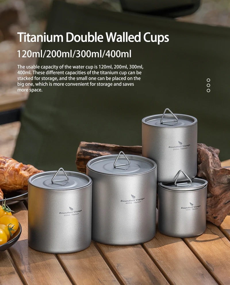 Boundless Voyage Titanium Dubbelwandige Bekers met Deksel Stapelbare Metalen ...