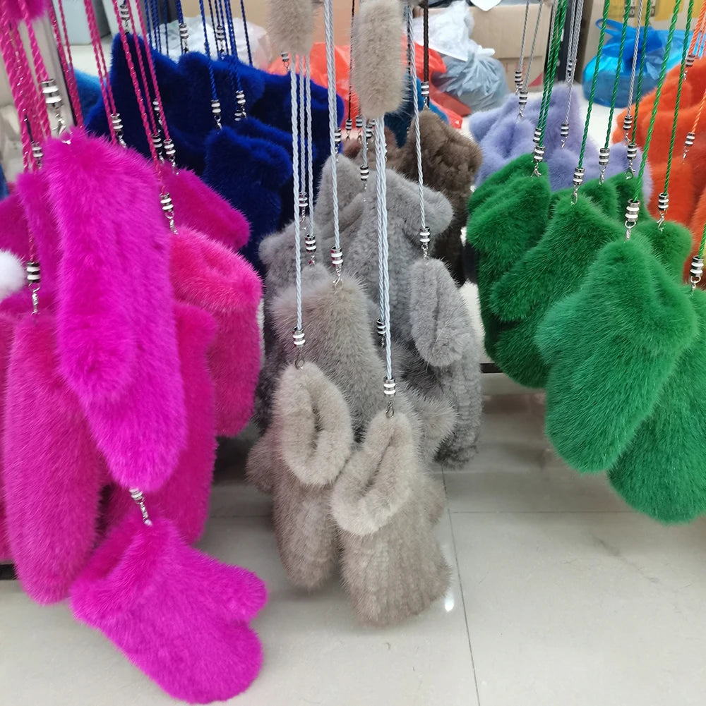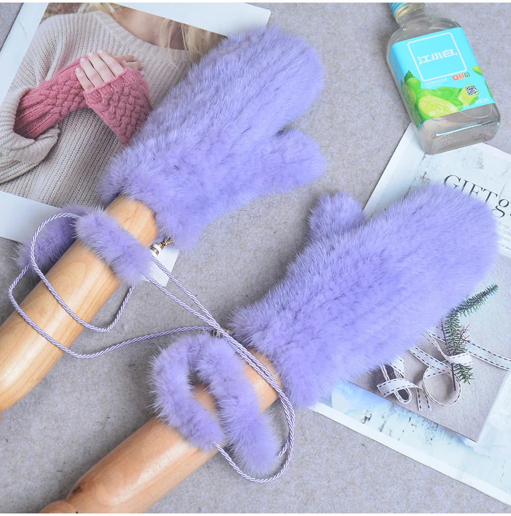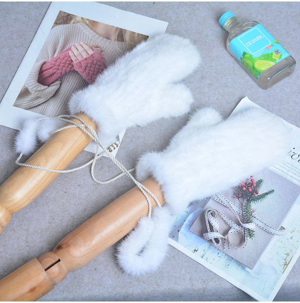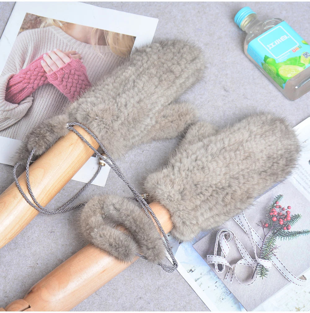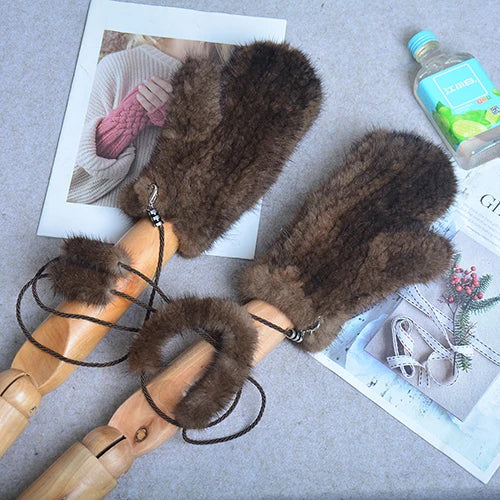 Merkmode Winter dames handschoenen 100% echte nertsbont handschoen gebreide w...