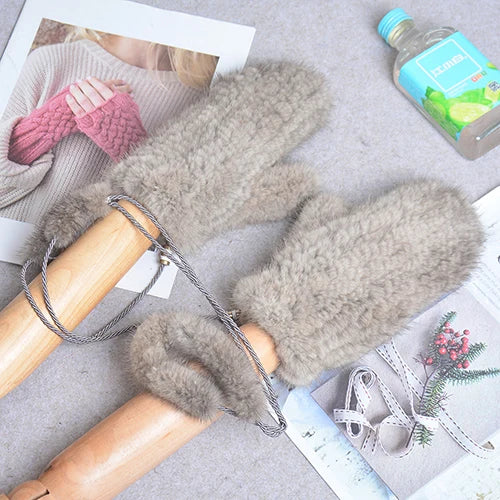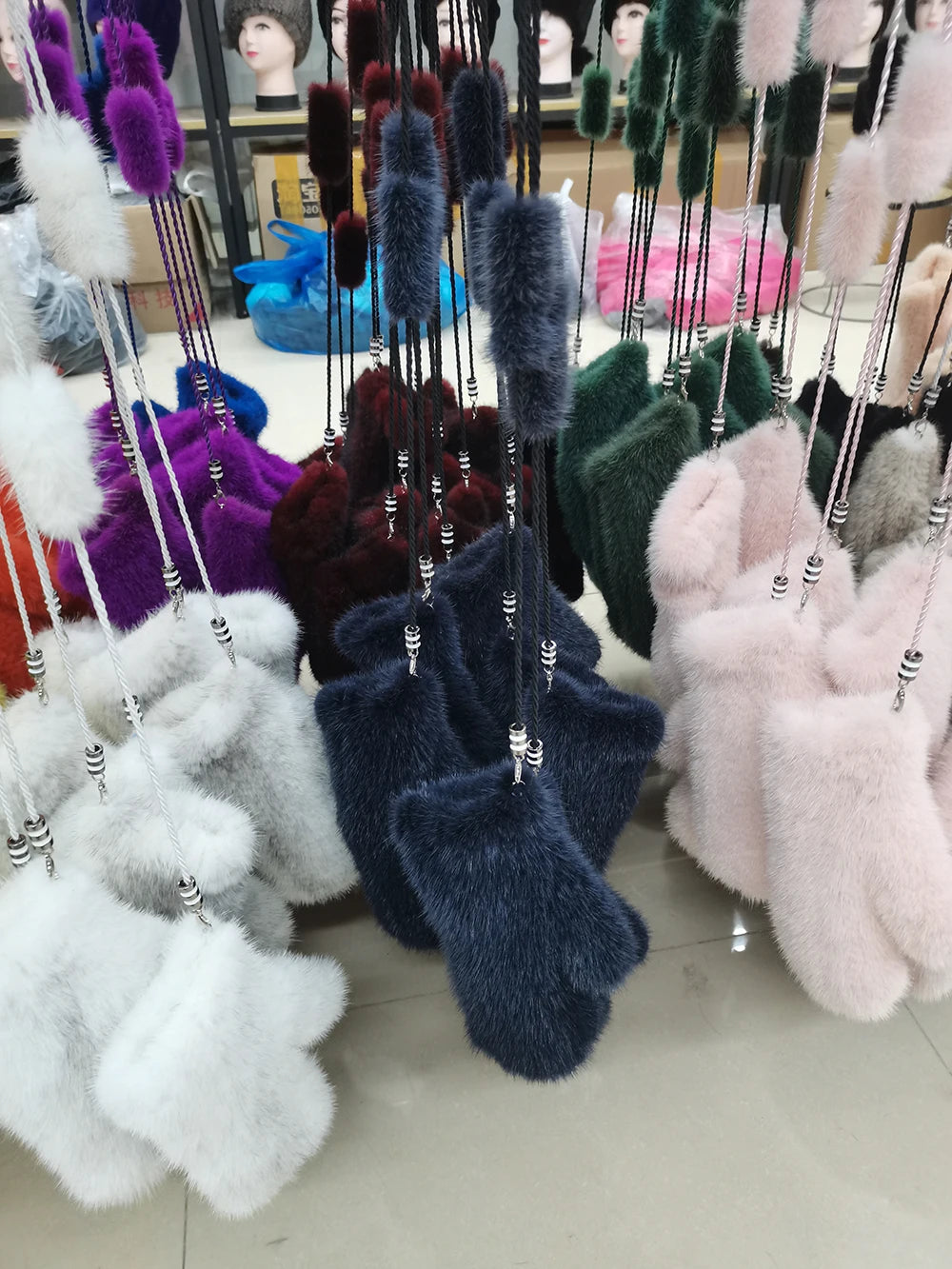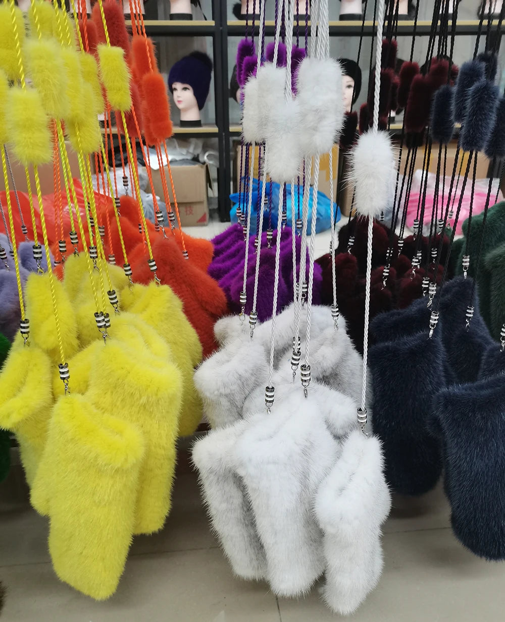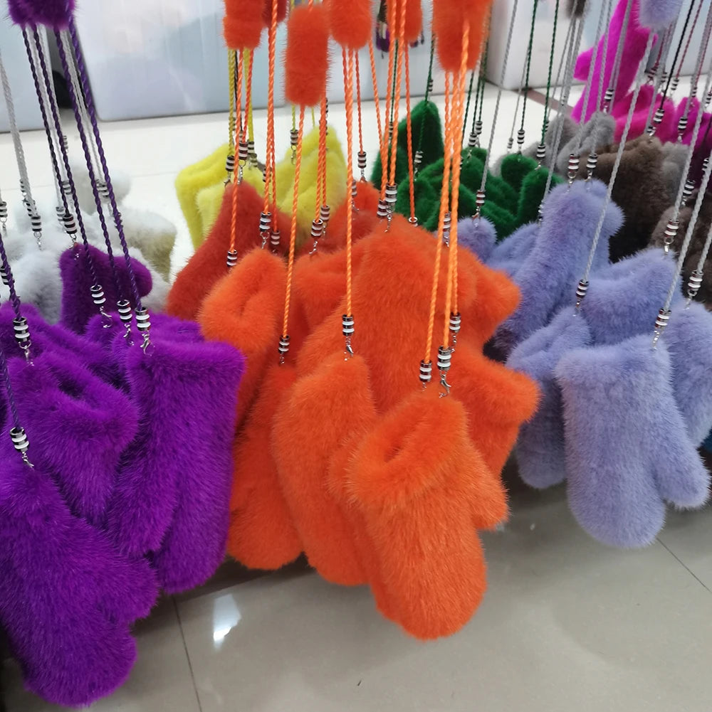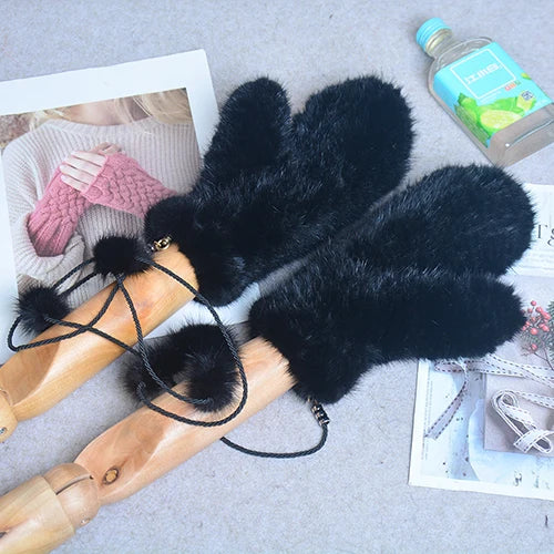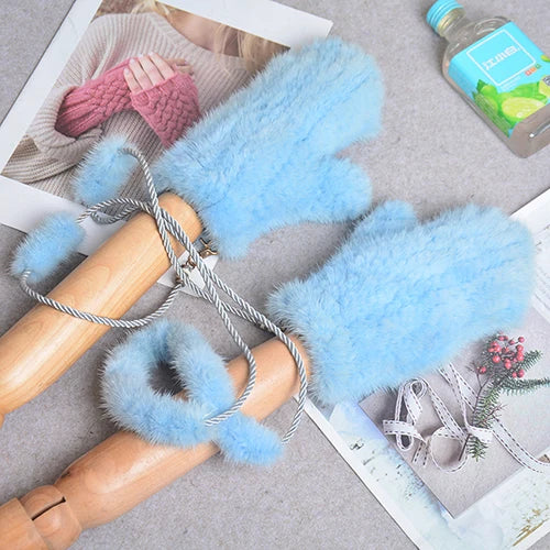 Merkmode Winter dames handschoenen 100% echte nertsbont handschoen gebreide w...