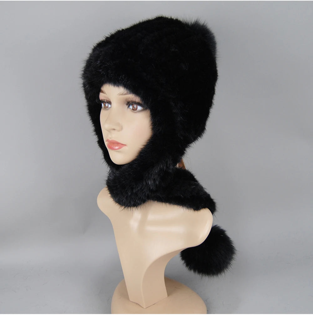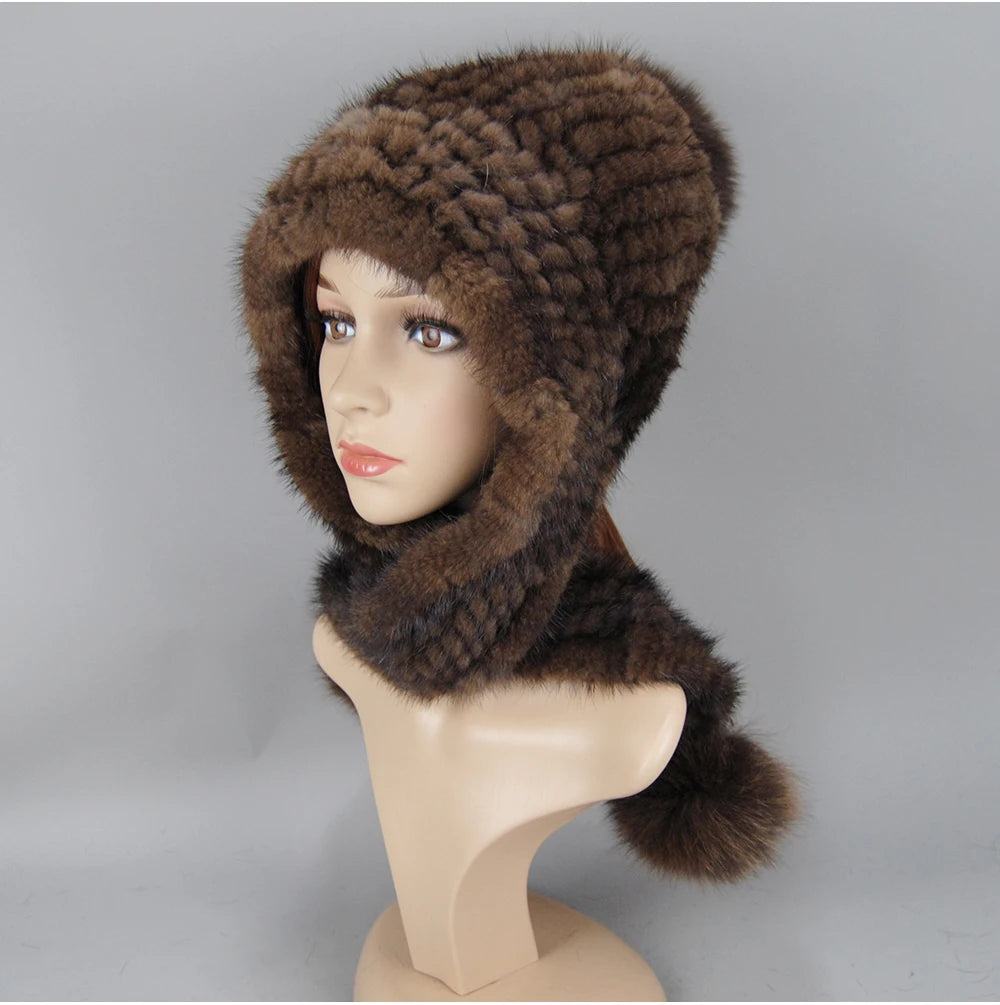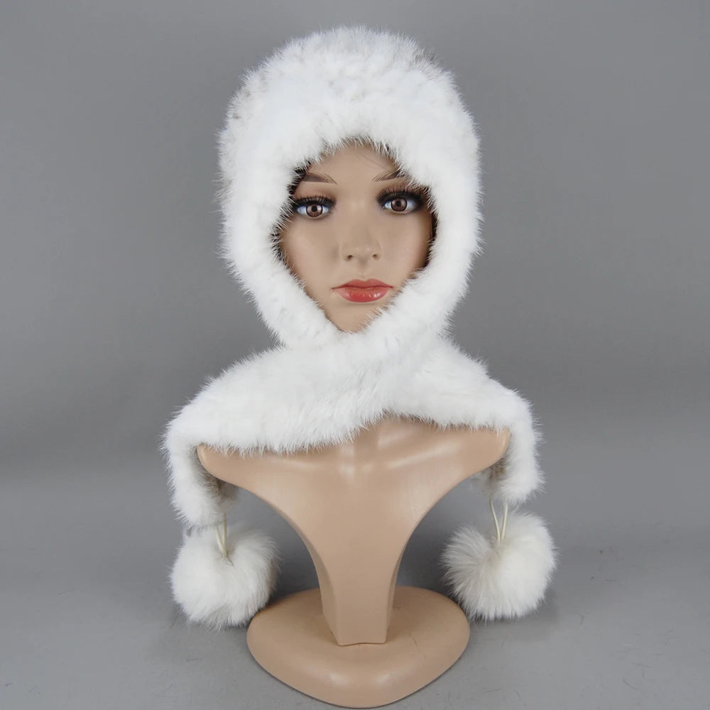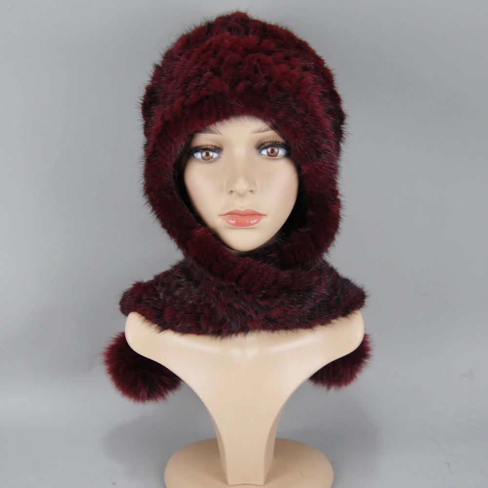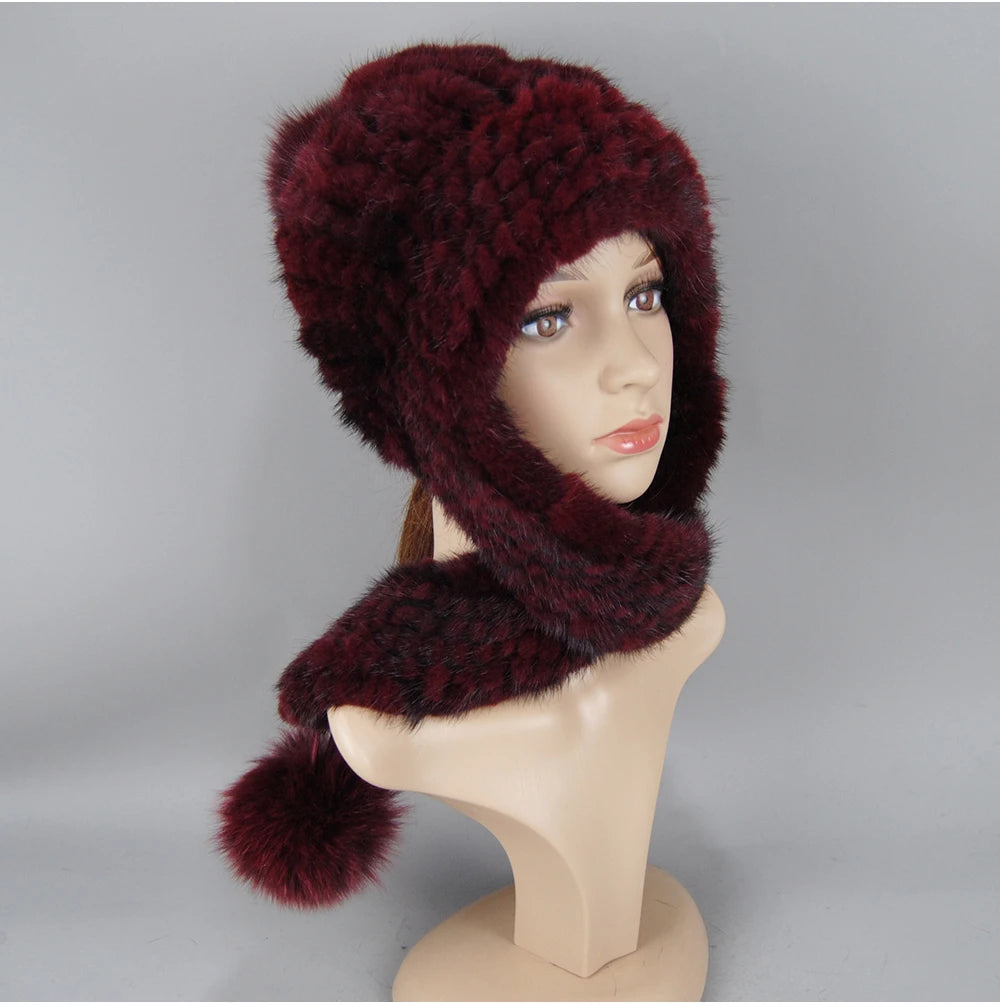 Merk Natuurlijk Gebreide Echte Nertsbont Mutsen Sjaals 2 Stuks 100 Bont Muts ...
