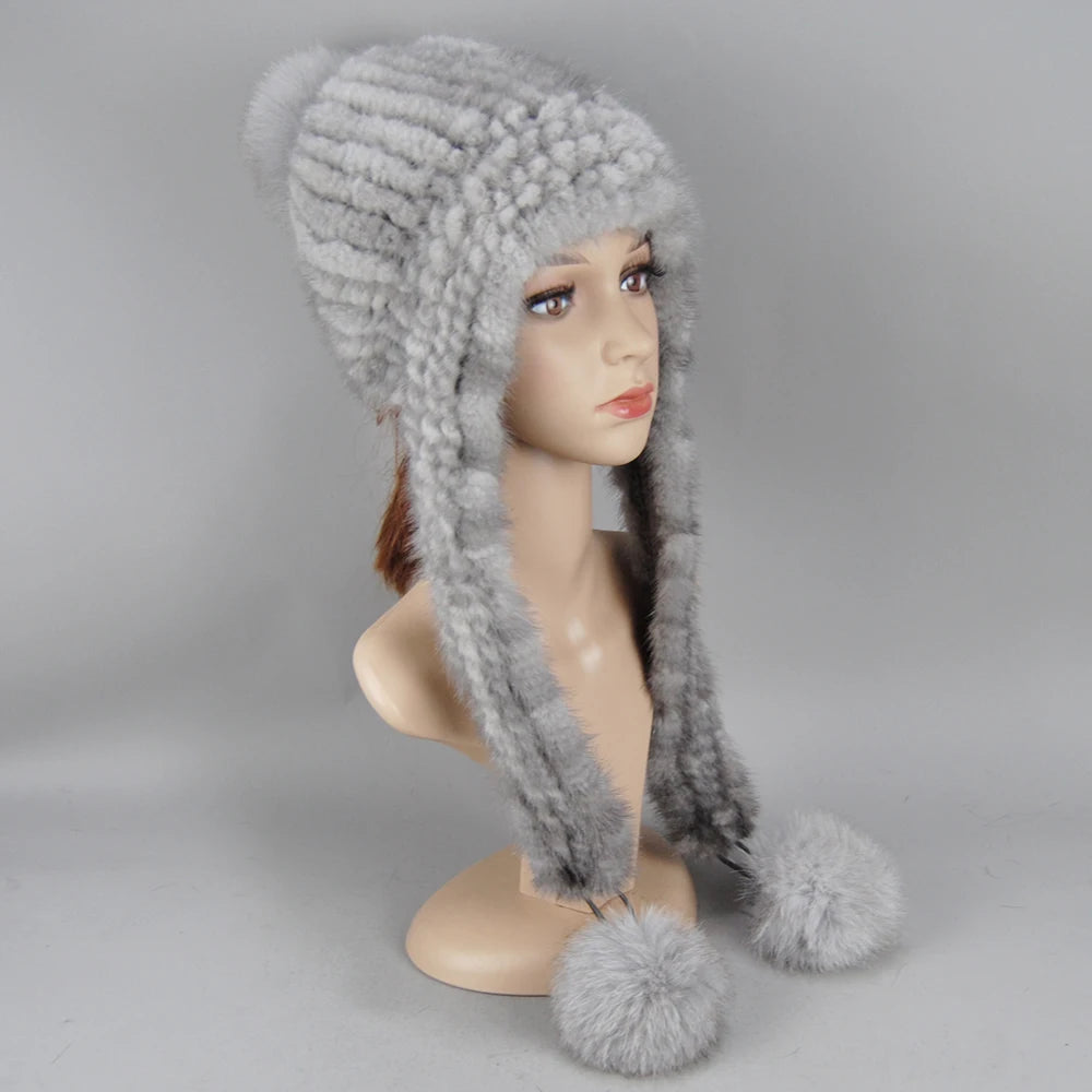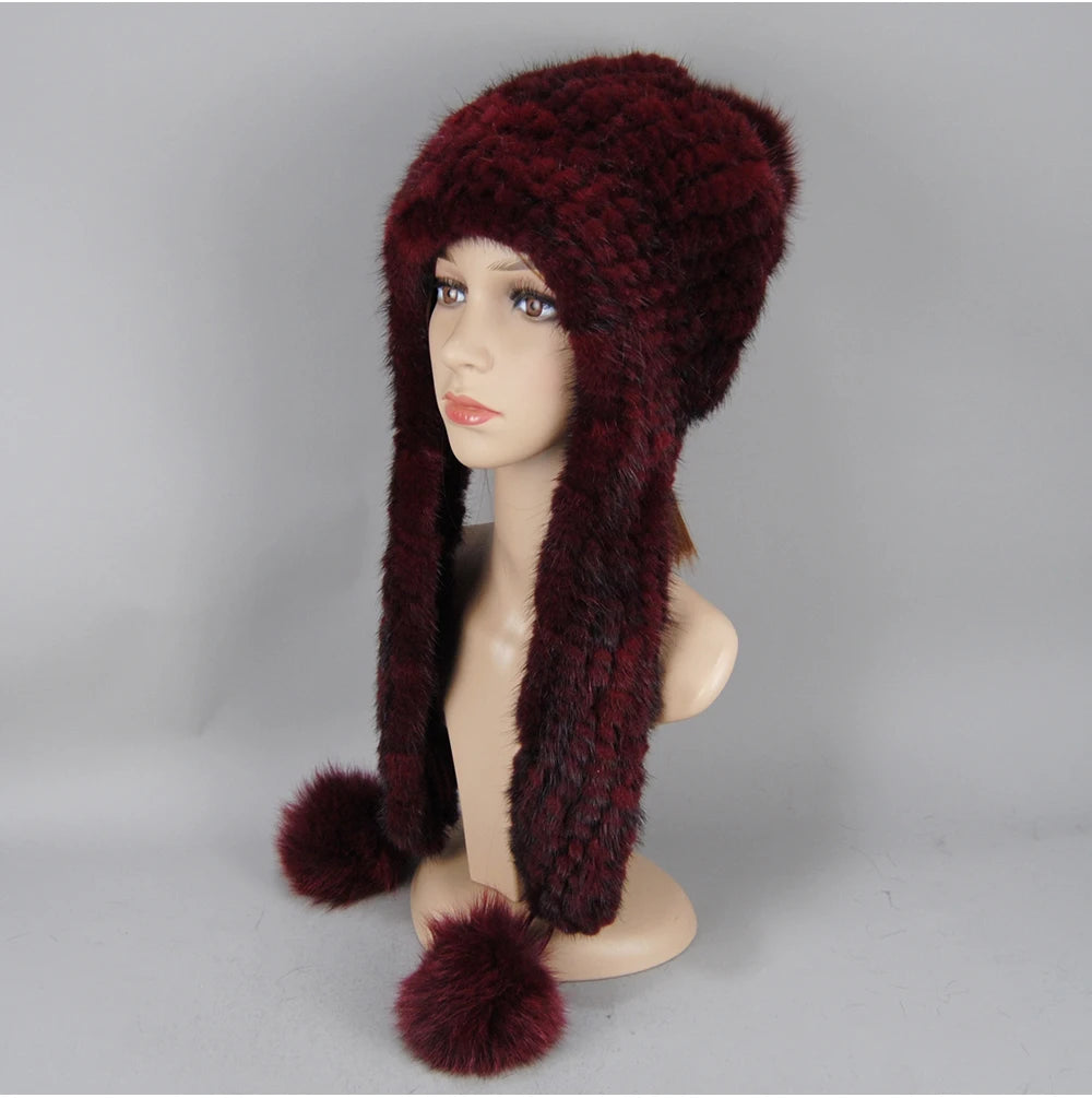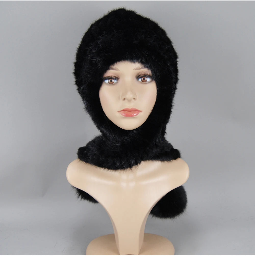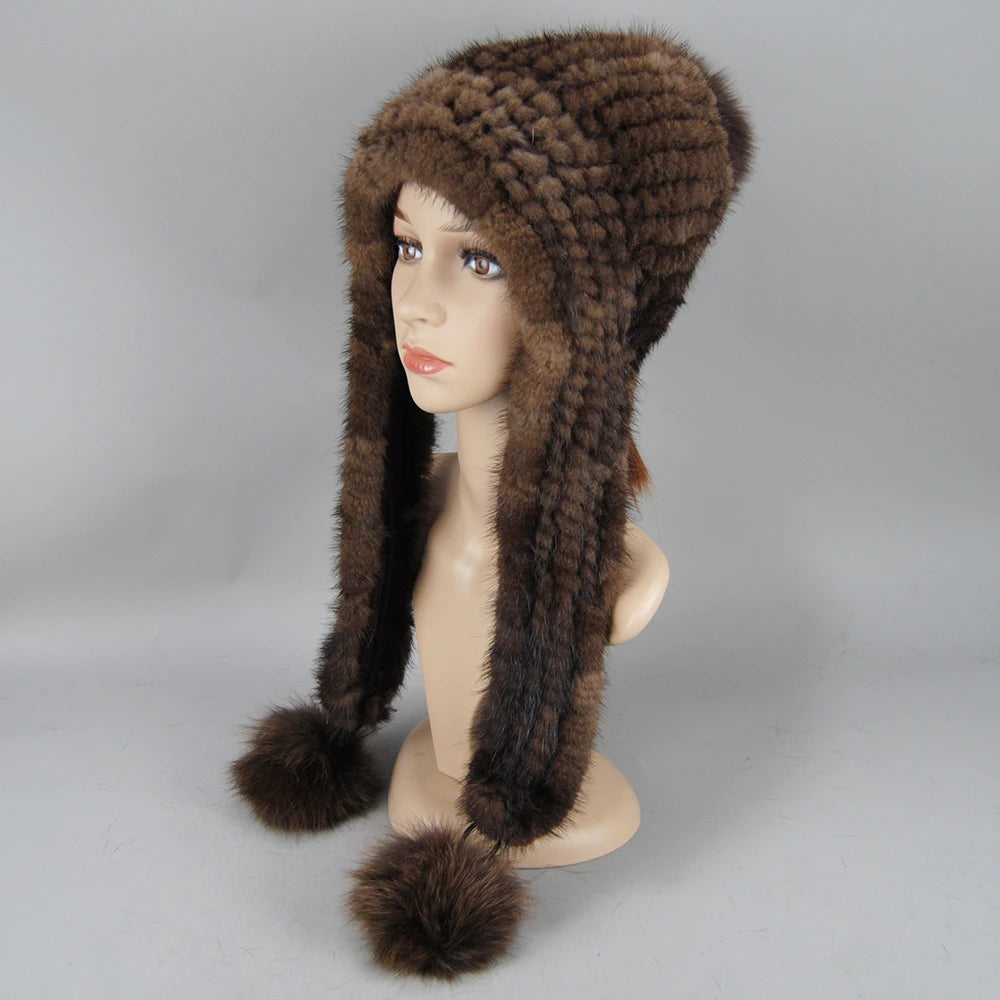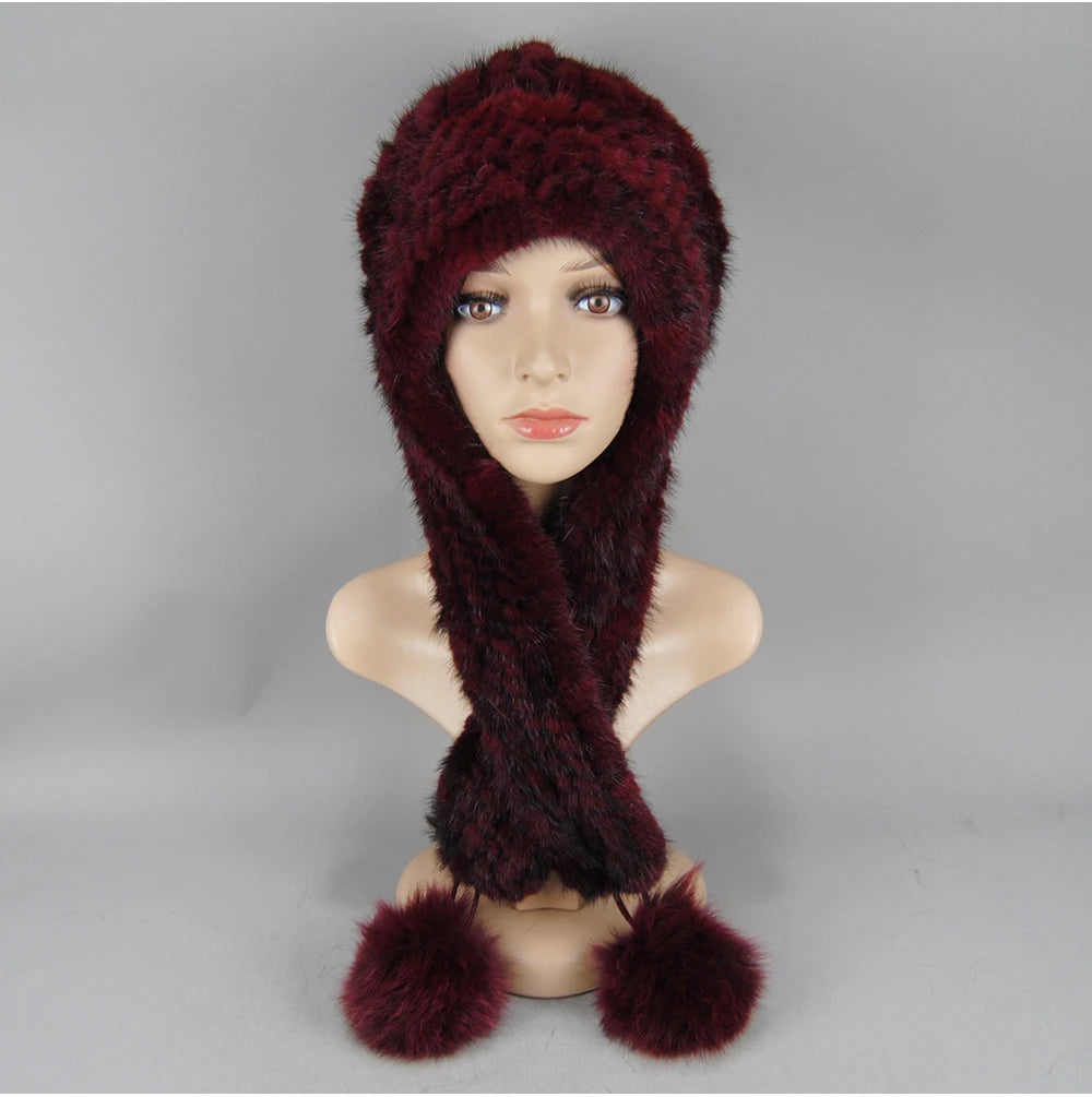 Merk Natuurlijk Gebreide Echte Nertsbont Mutsen Sjaals 2 Stuks 100 Bont Muts ...