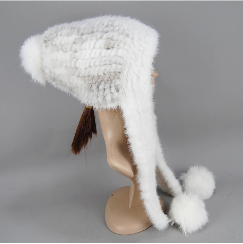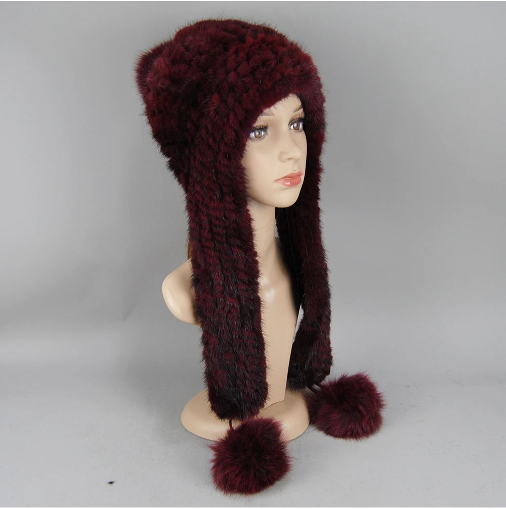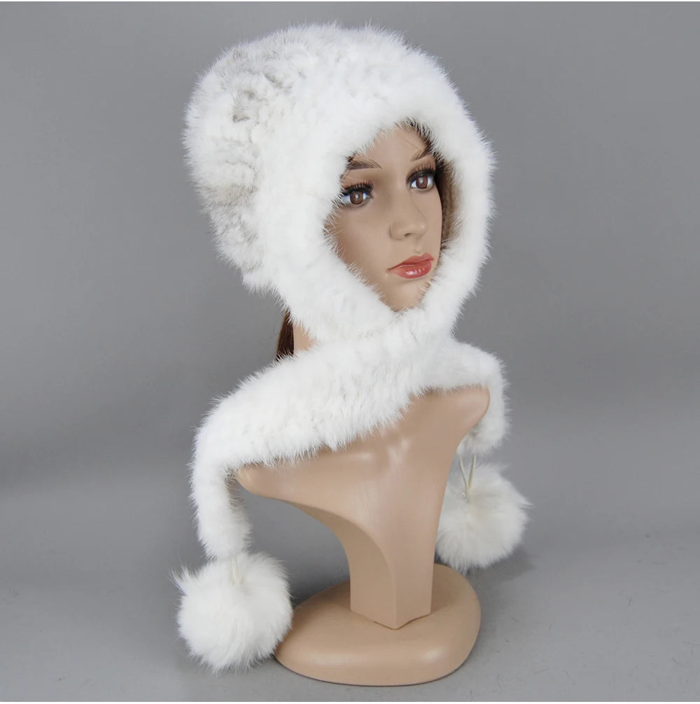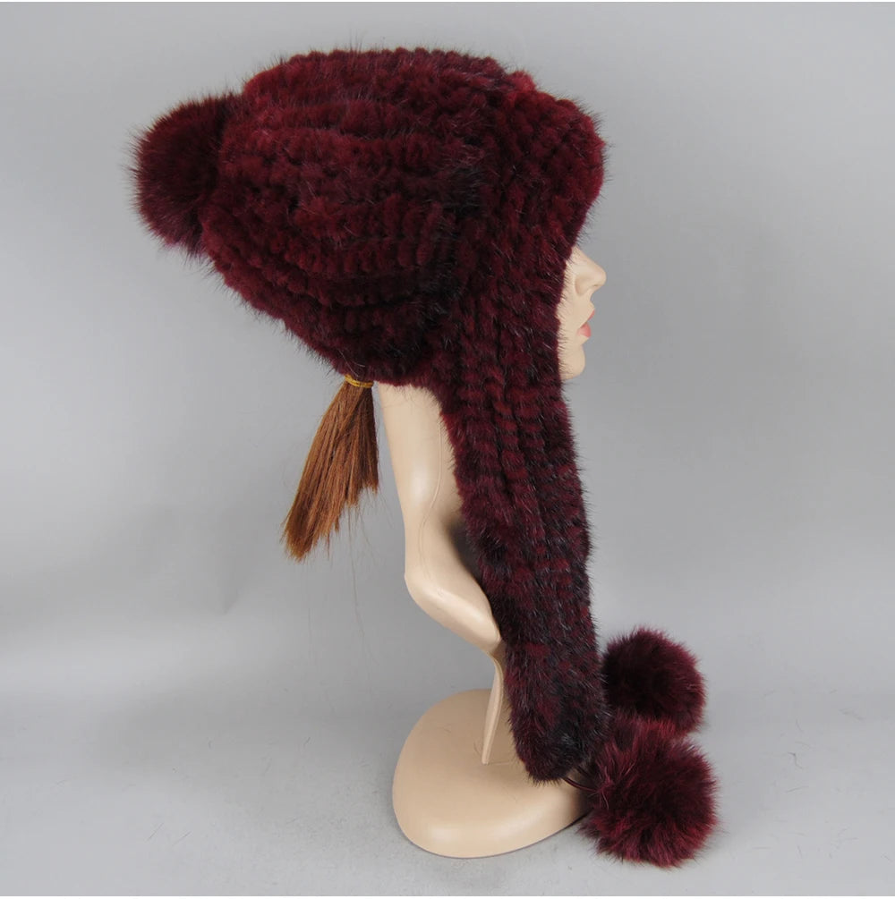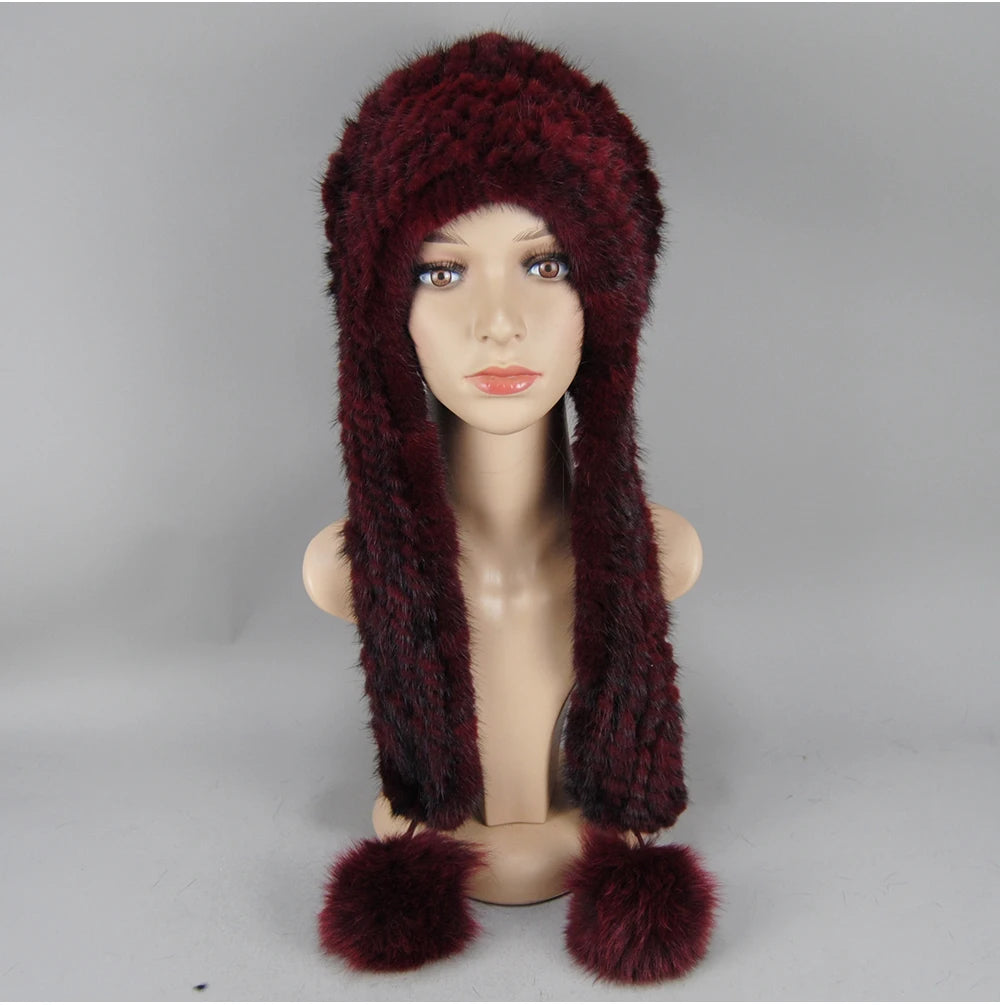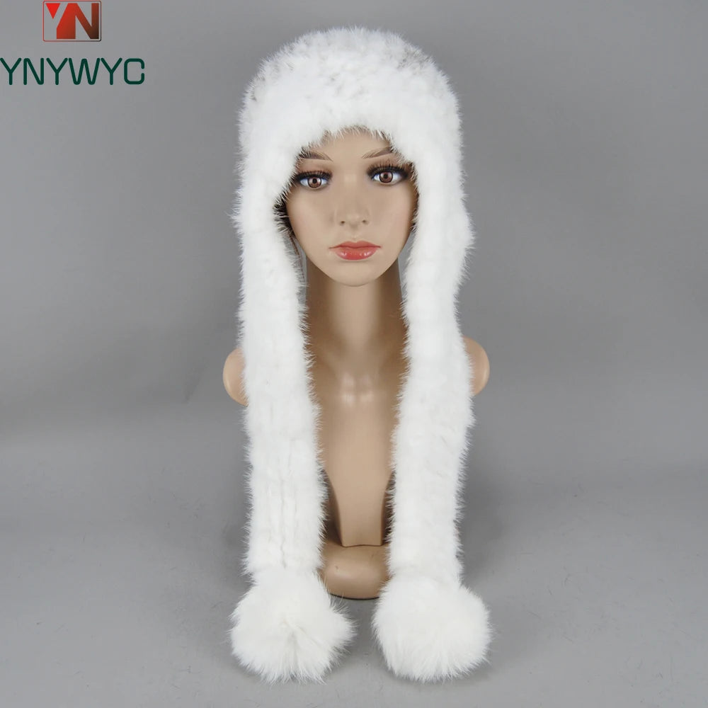 Merk Natuurlijk Gebreide Echte Nertsbont Mutsen Sjaals 2 Stuks 100 Bont Muts ...