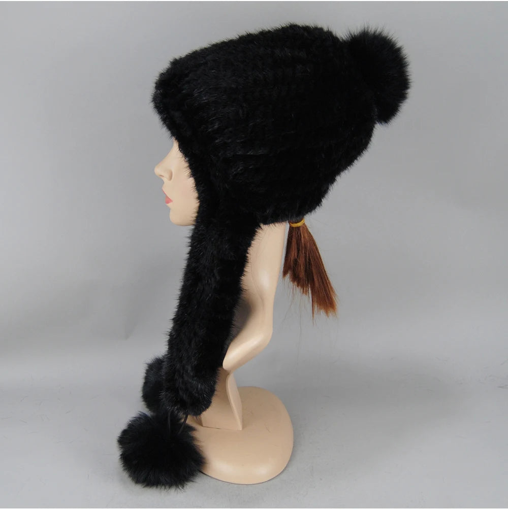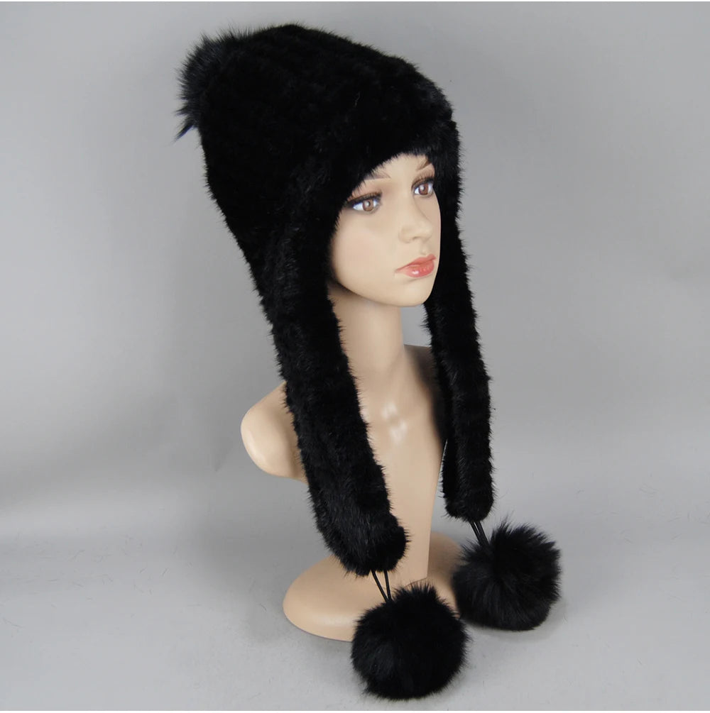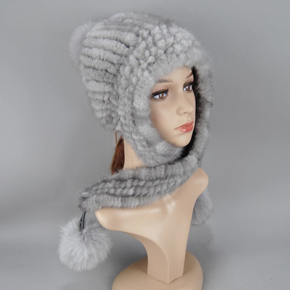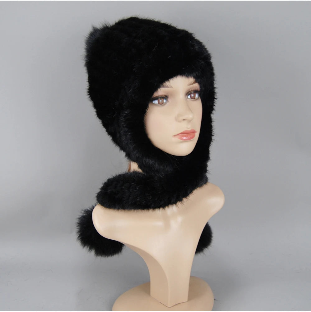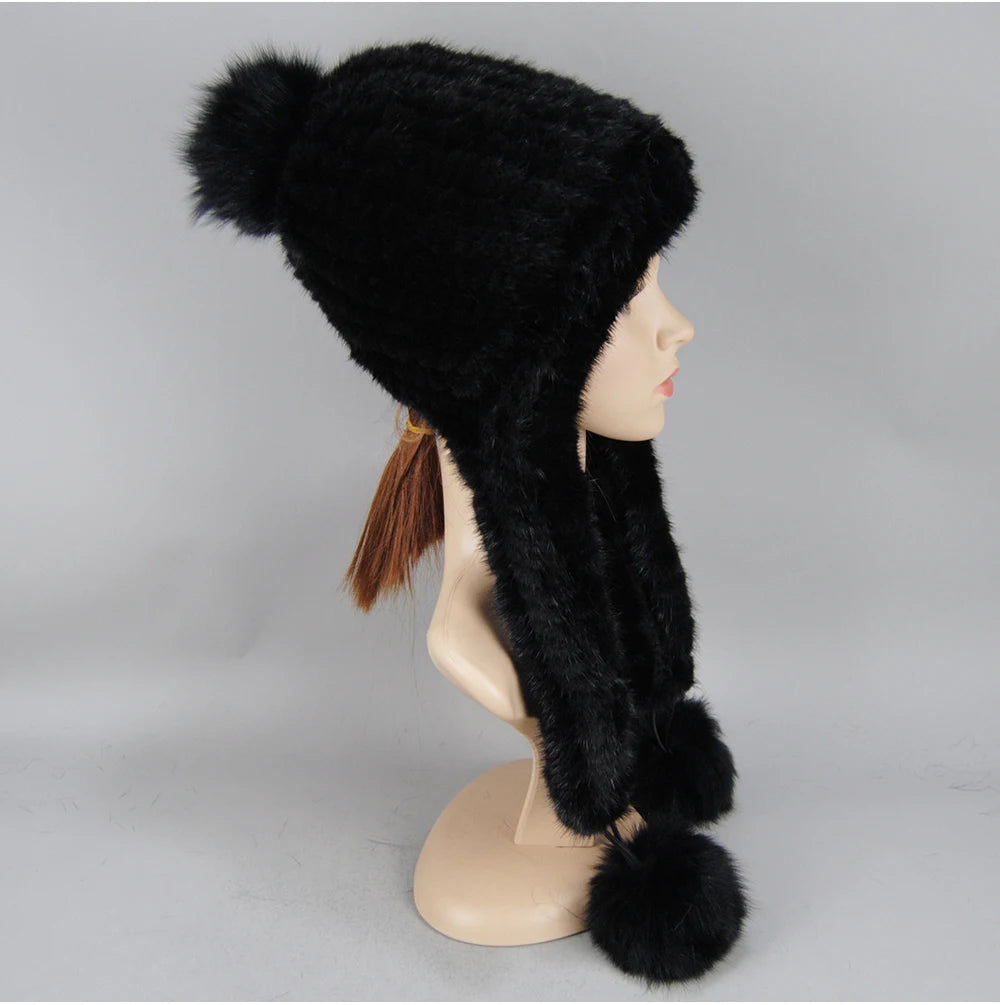 Merk Natuurlijk Gebreide Echte Nertsbont Mutsen Sjaals 2 Stuks 100 Bont Muts ...