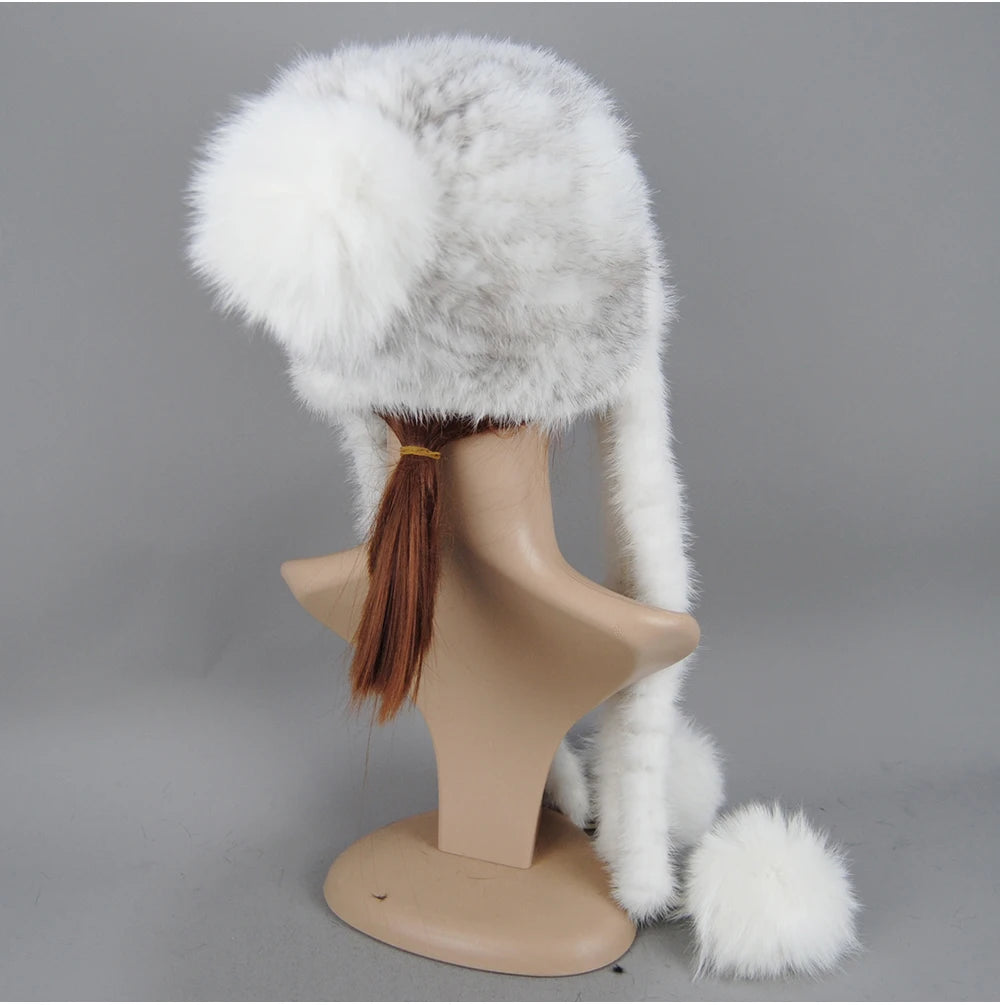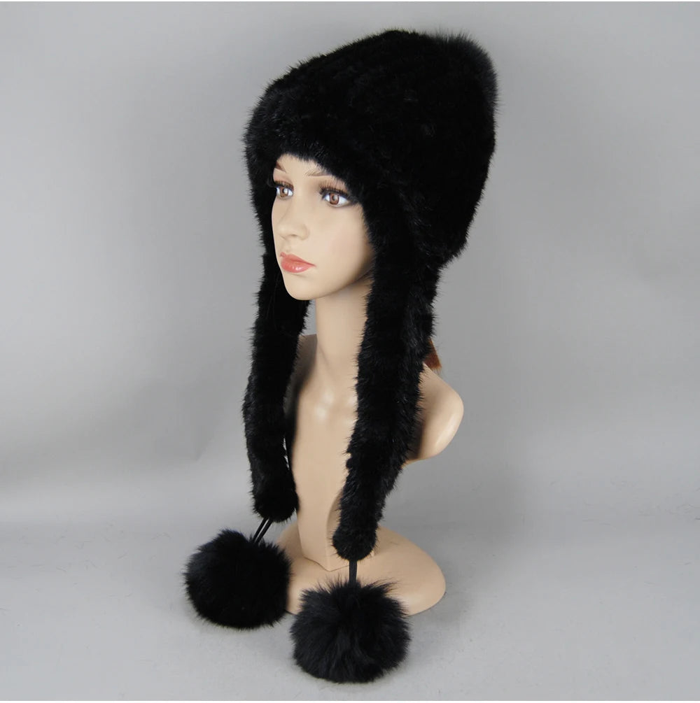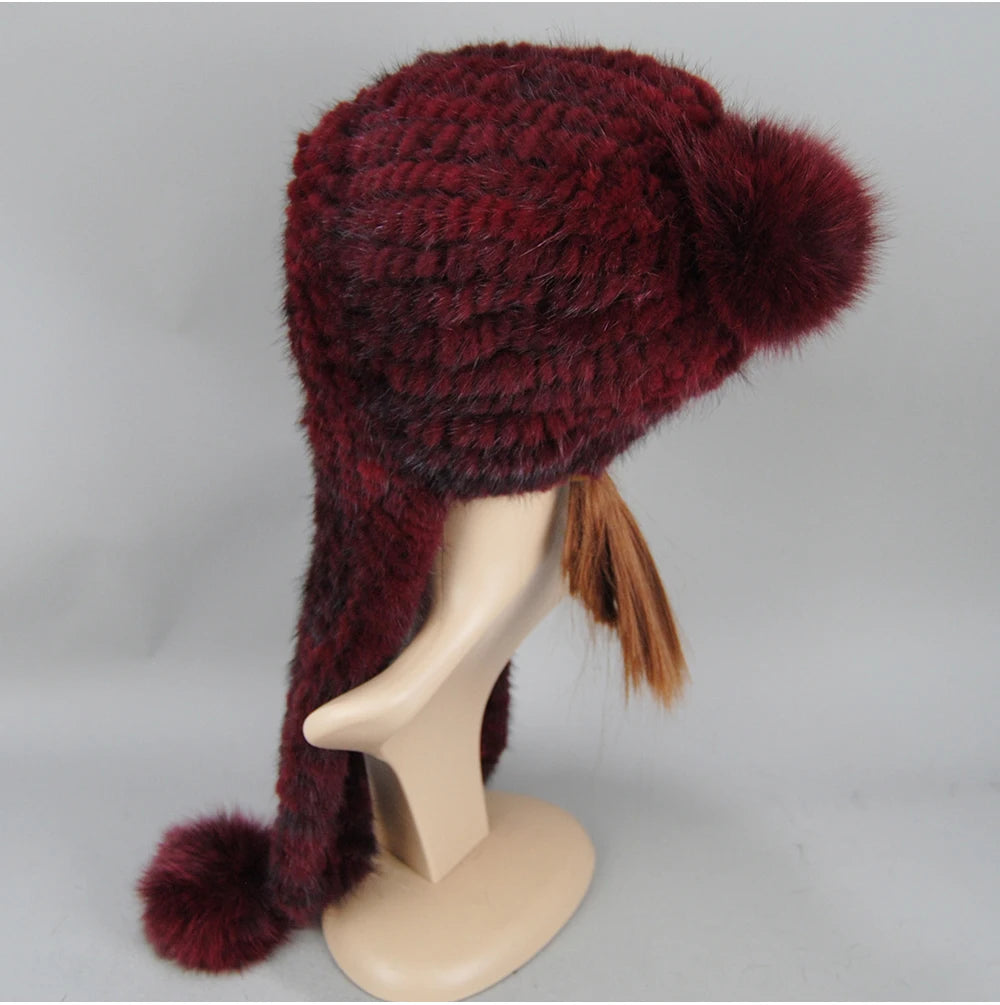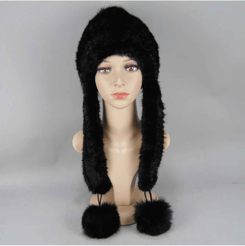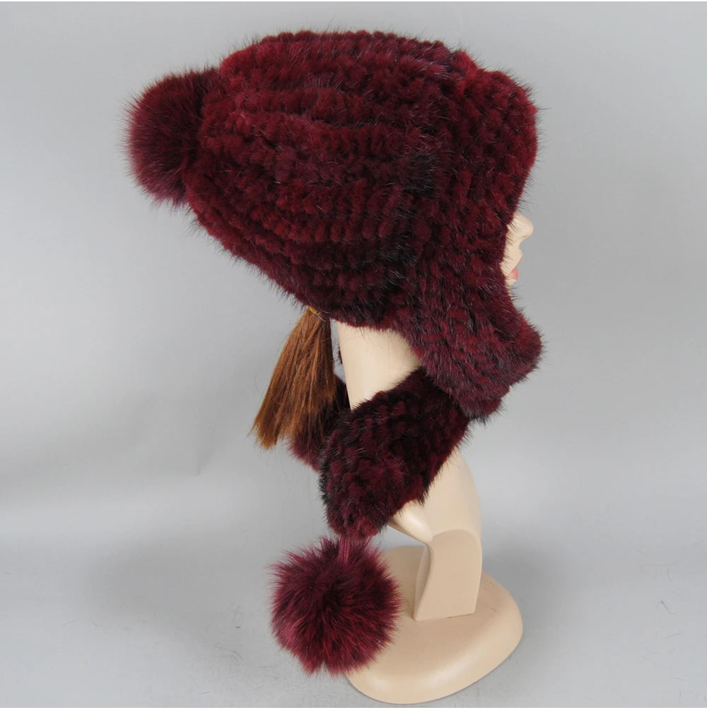 Merk Natuurlijk Gebreide Echte Nertsbont Mutsen Sjaals 2 Stuks 100 Bont Muts ...