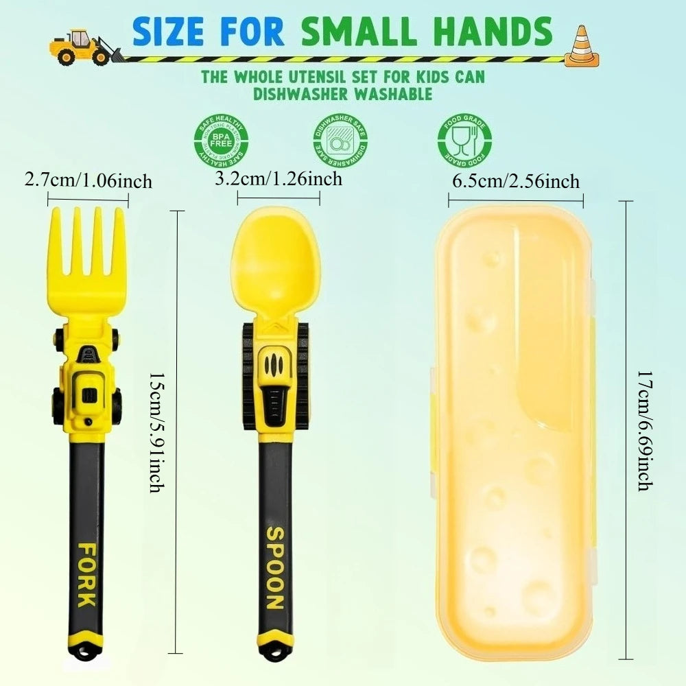 Peuterbestek, herbruikbare plastic peutervork, lepel en opbergdoos