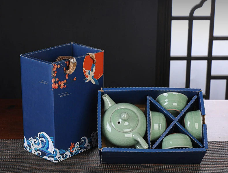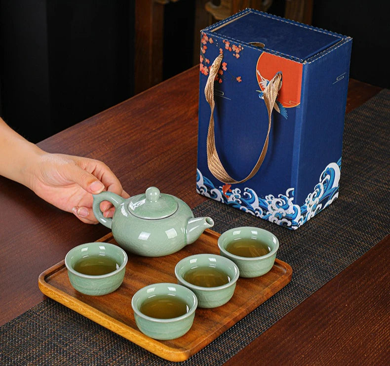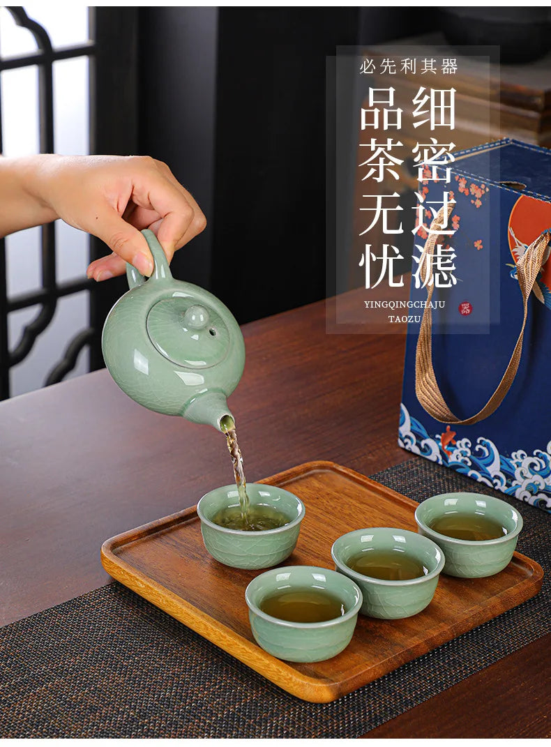 Chinese stijl keramische theeset voor thuisgebruik, één pot, vier kopjes Kung...