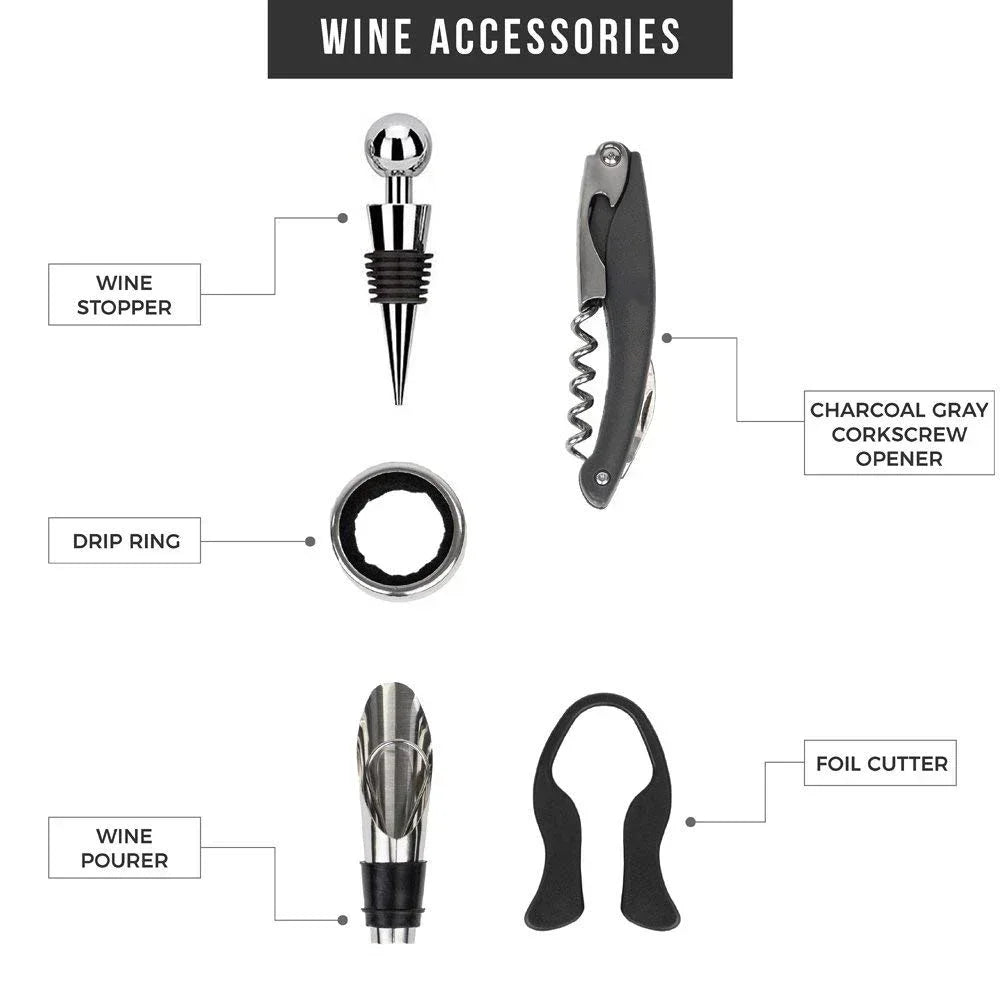 Luxe wijnopener accessoires cadeauset met kelnerskurkentrekker, 5-delige fles...