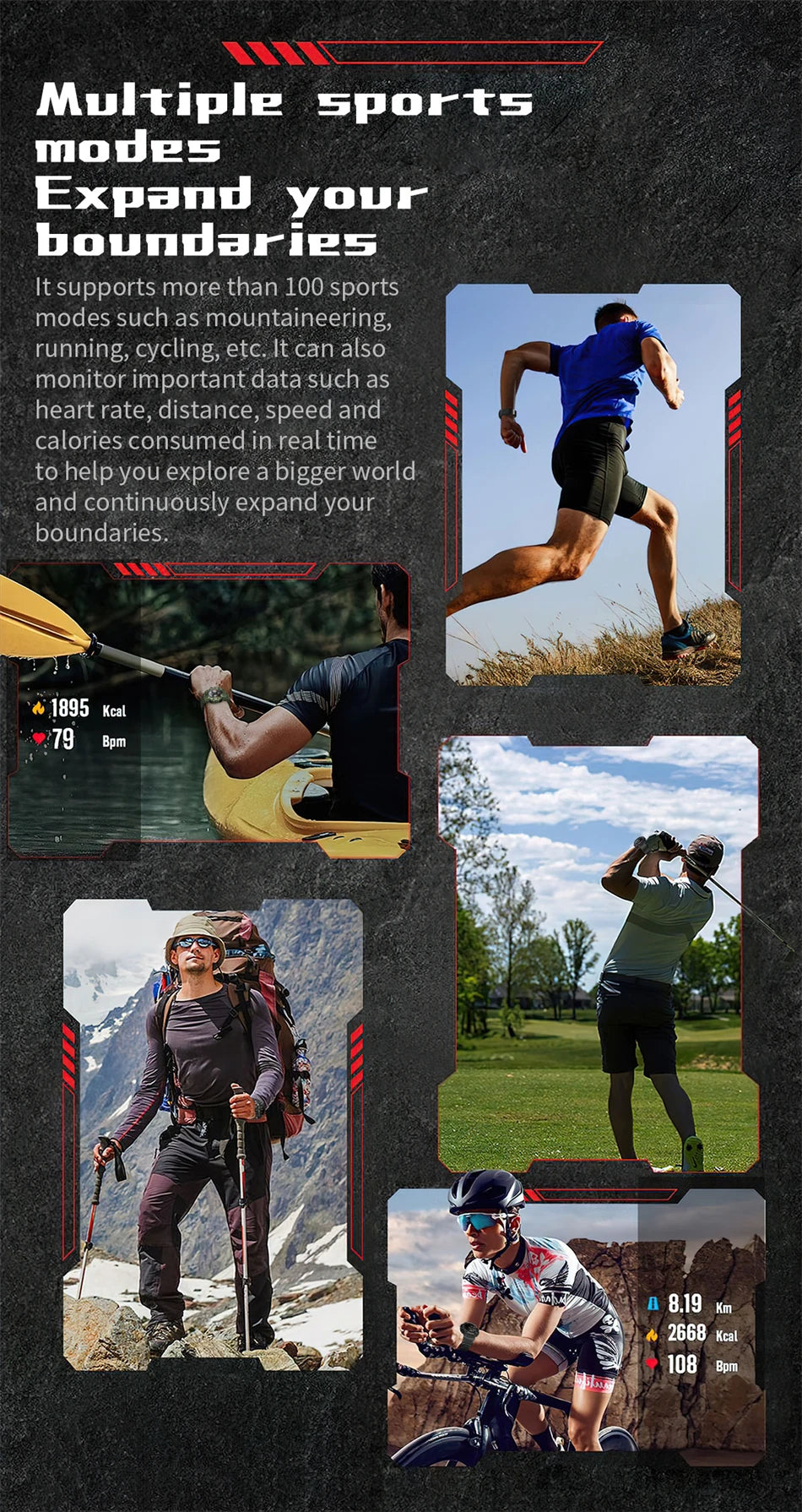 Voor Xiaomi Military Sports Smart Watch Heren 100+ Sport Fitness Zaklamp Komp...