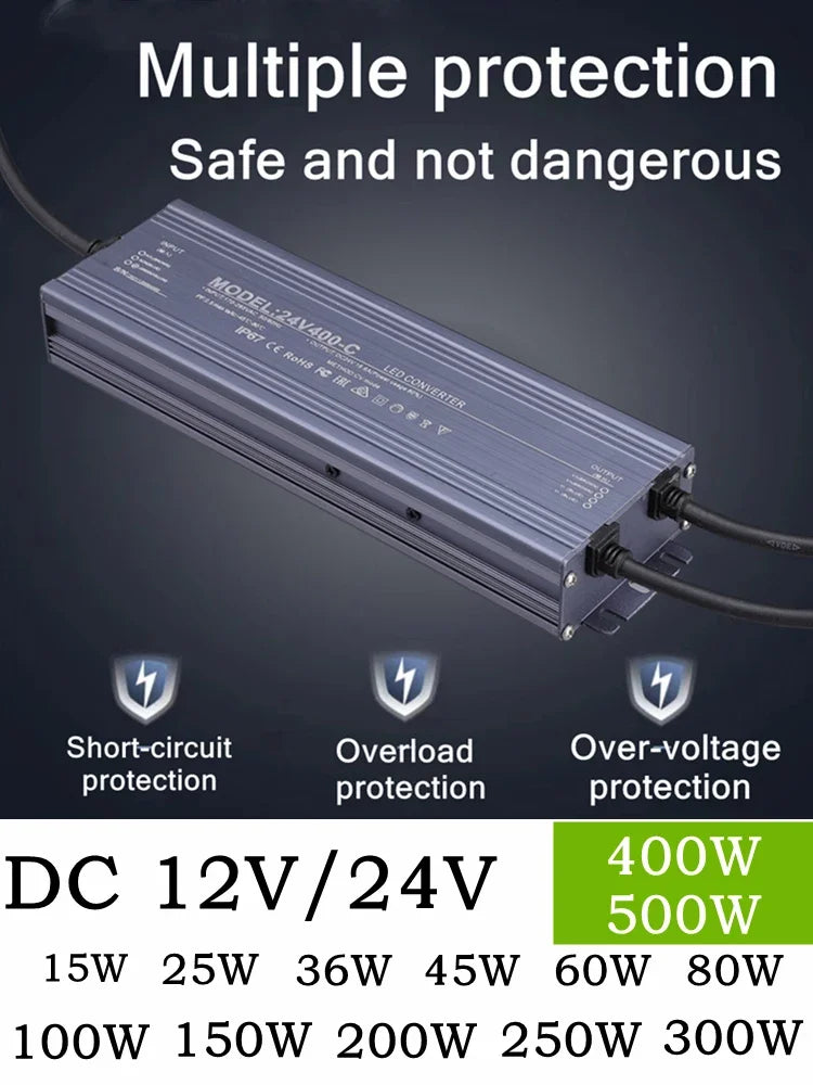 Waterdichte transformatoren met volledig vermogen 220V naar 12V 24V schakelen...