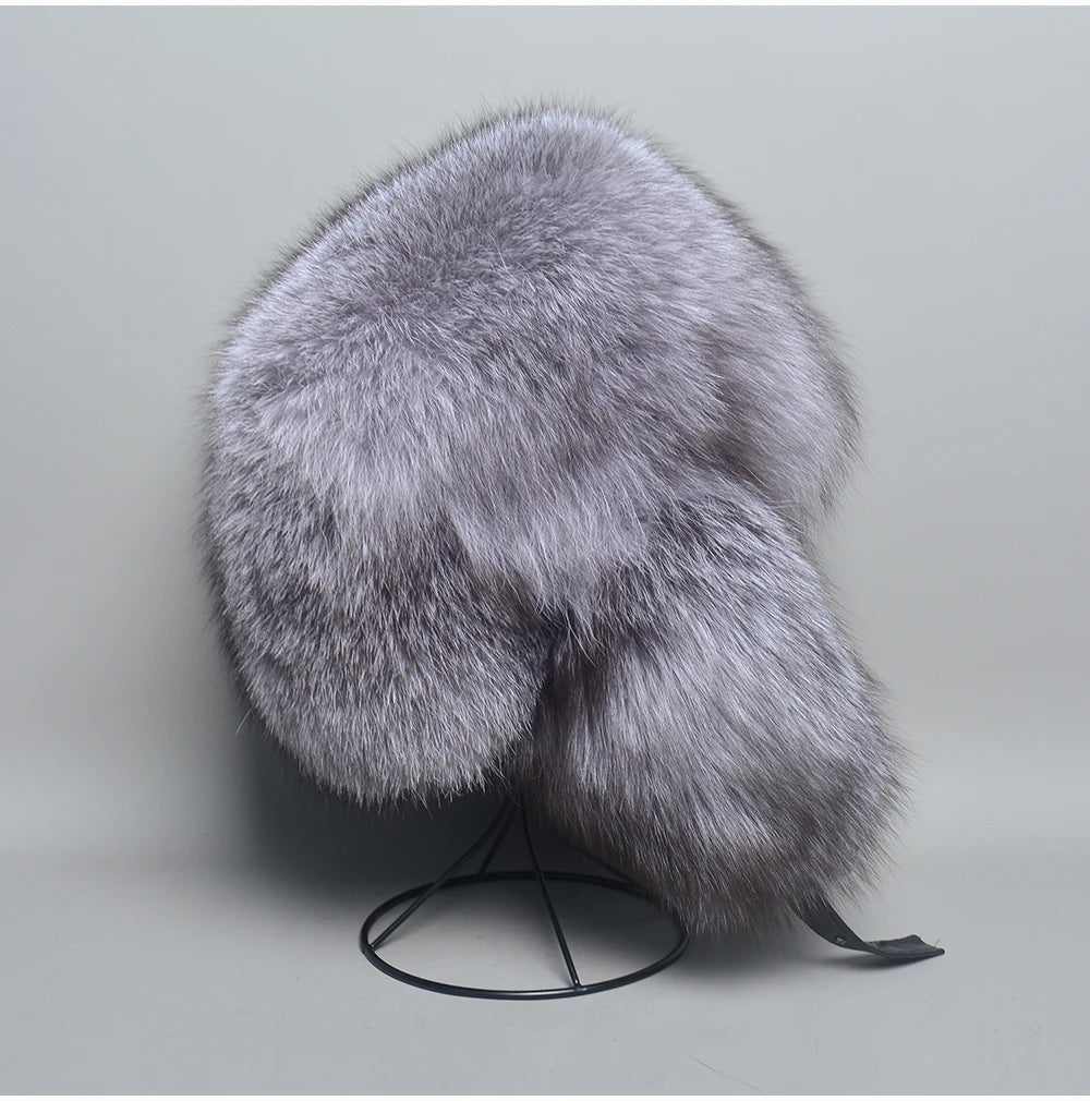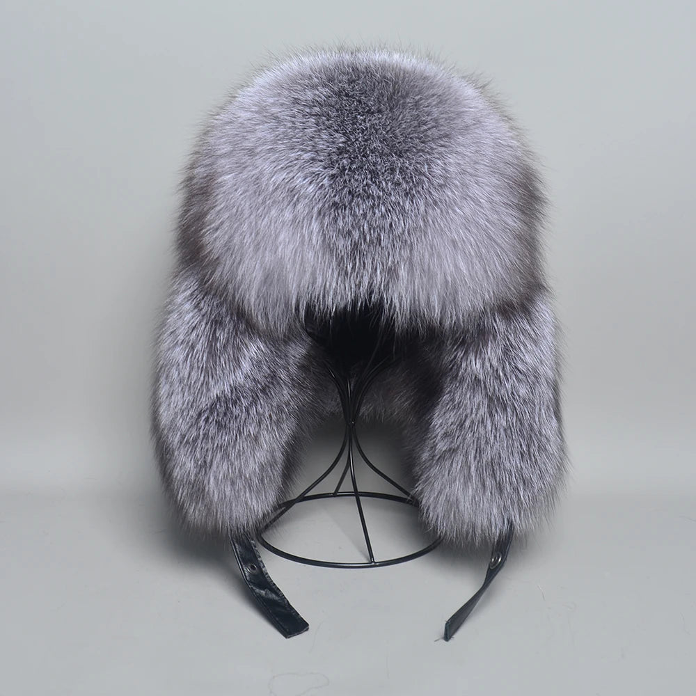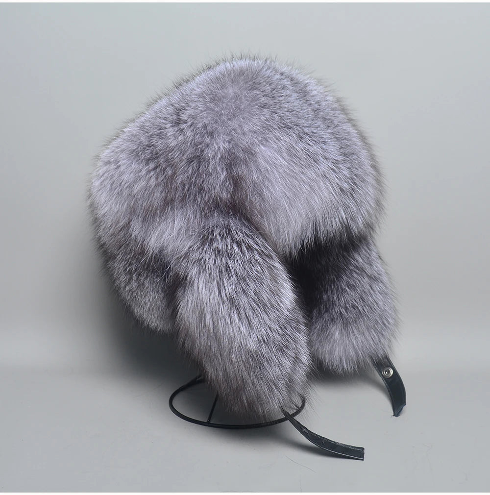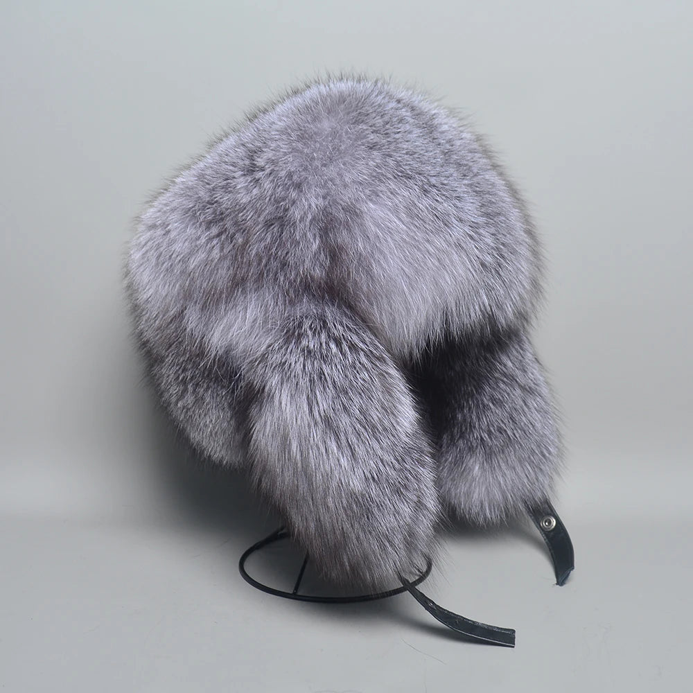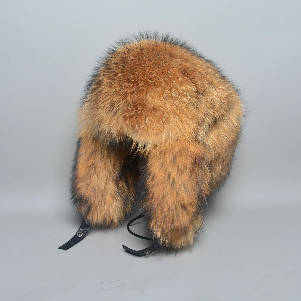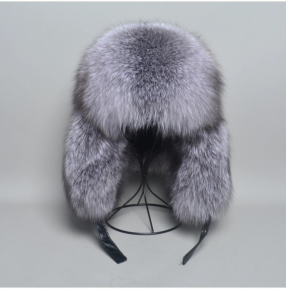 Zilveren vosbont hoeden voor mannen, echte wasbeerbont, Lei Feng pet voor Rus...