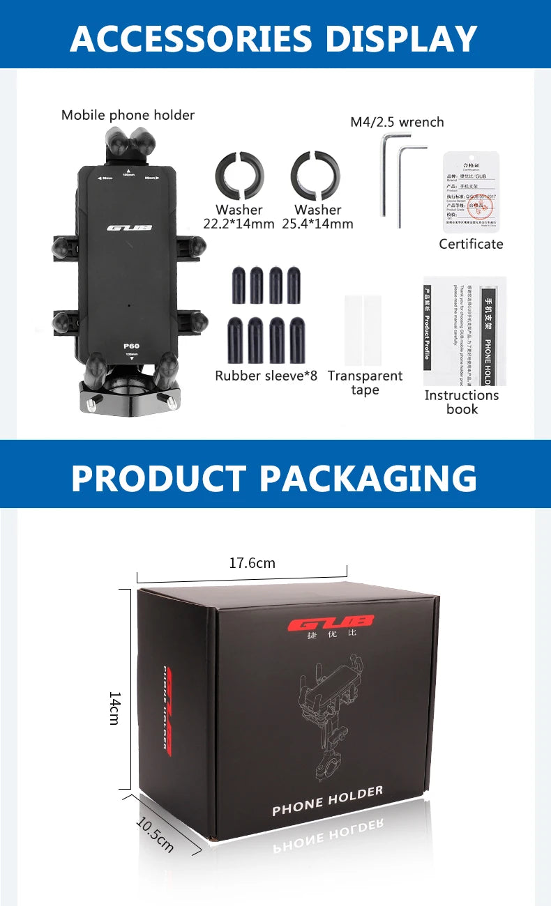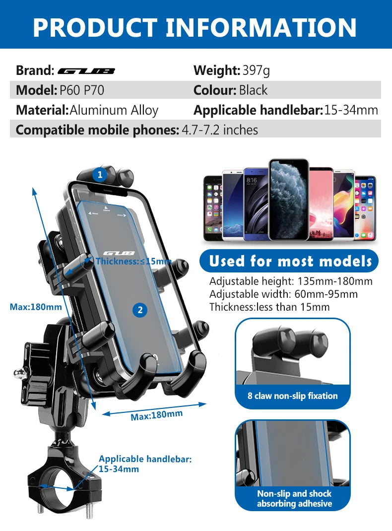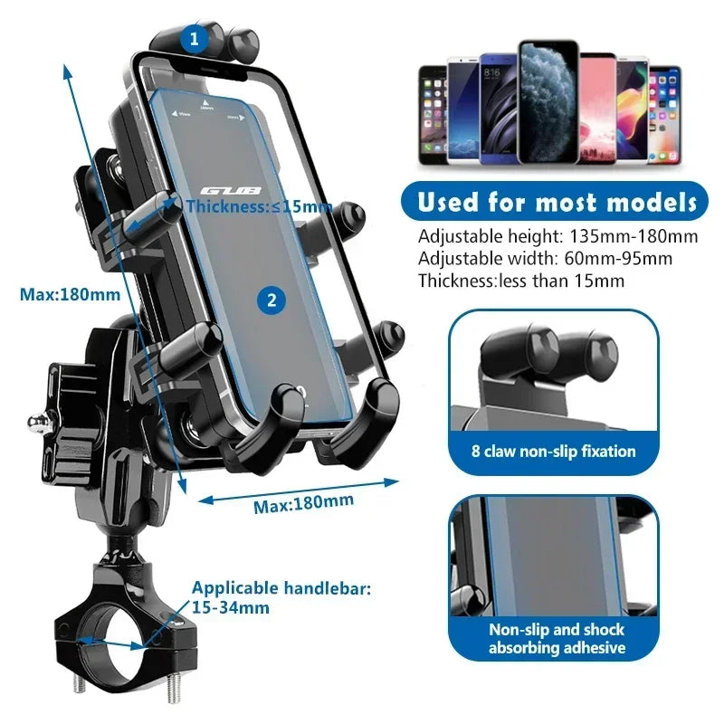 GUB Aluminium Fietstelefoonhouder voor 4,7-7,2 inch iPhone, vrije hoek Motorf...